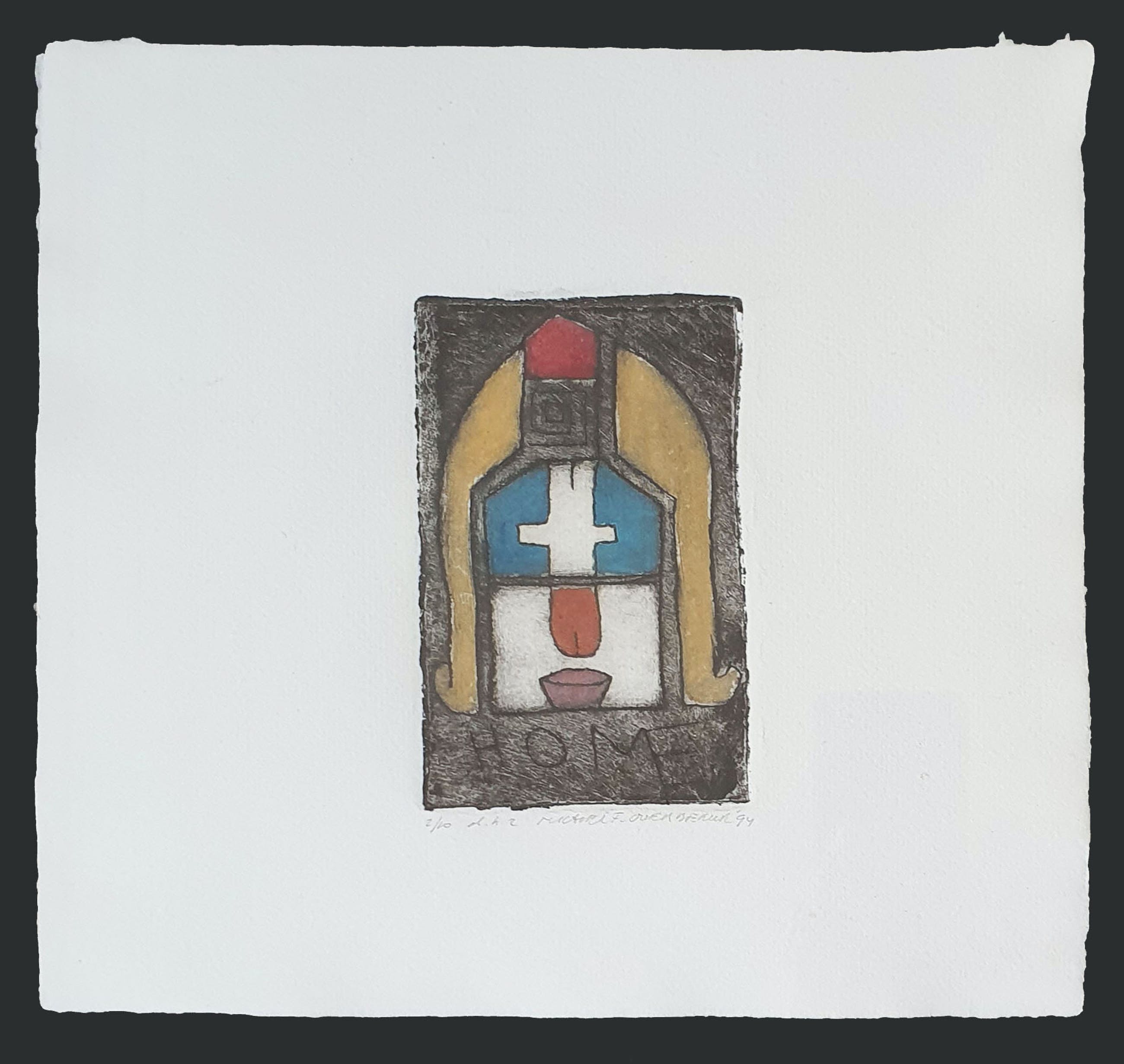 Ets uit 1994 van Michel van Overbeeke. Het werk is middenonder met de hand gesigneerd doorde kunstenaar. Het werk is erg mooi ingelijst.