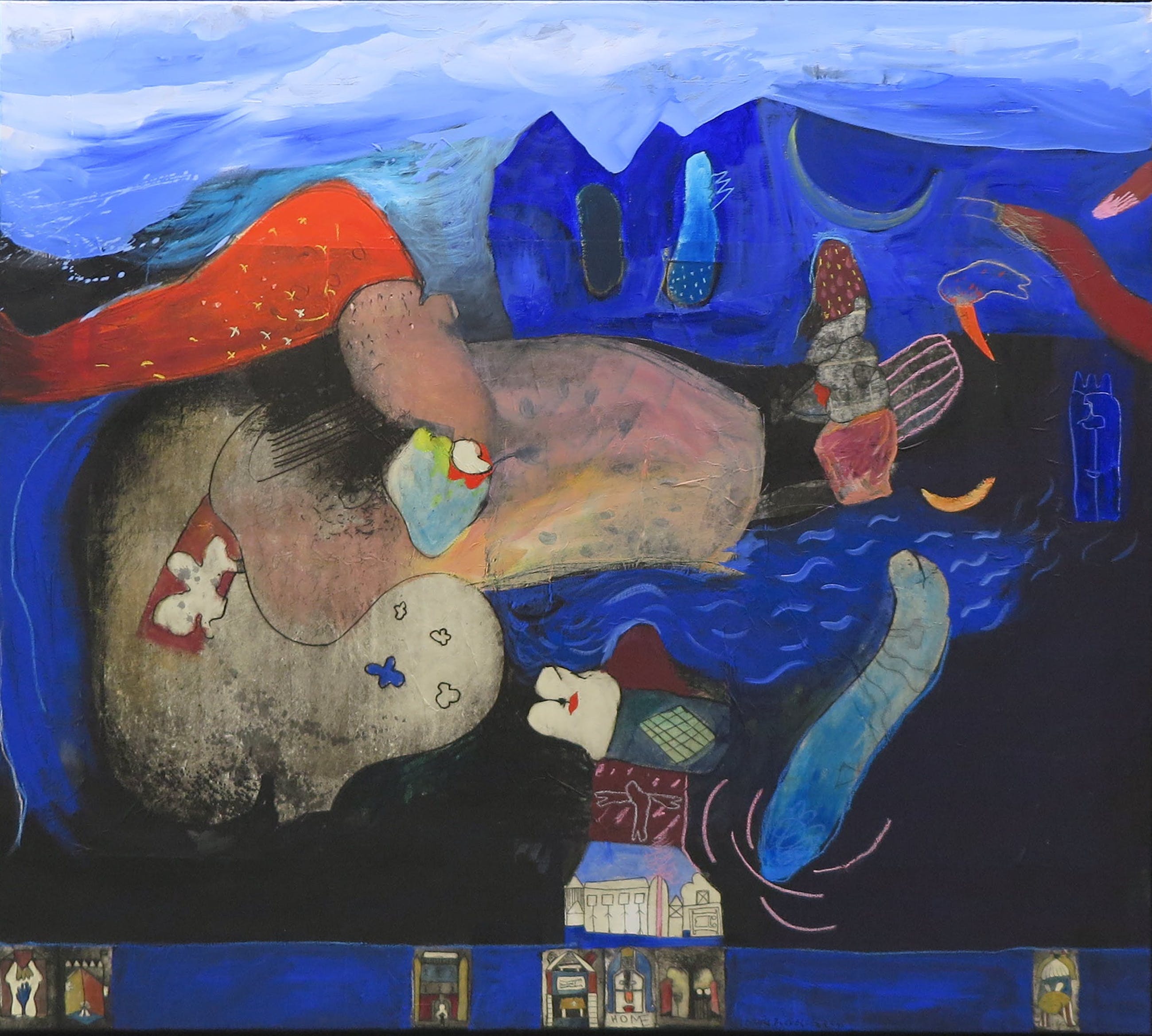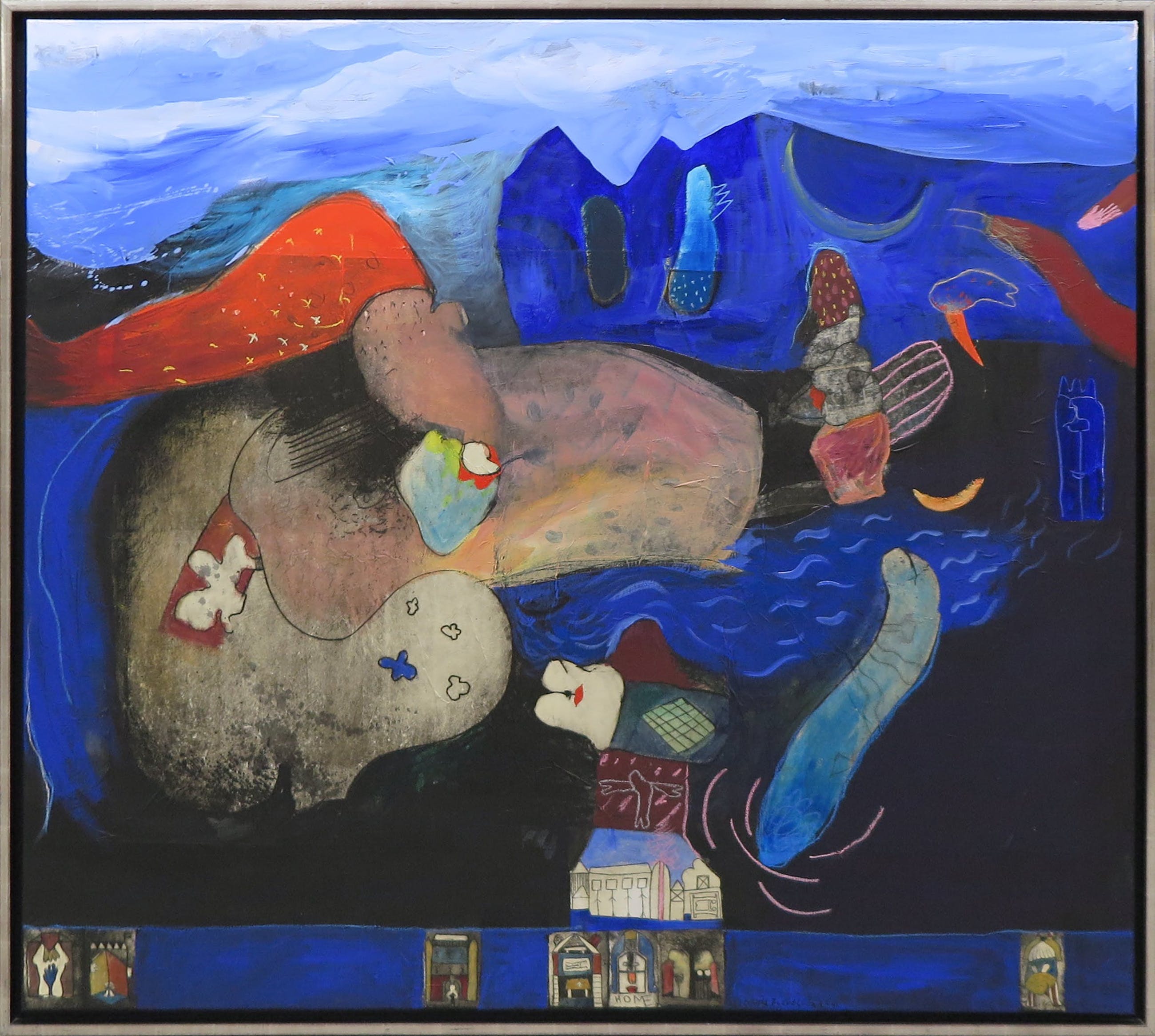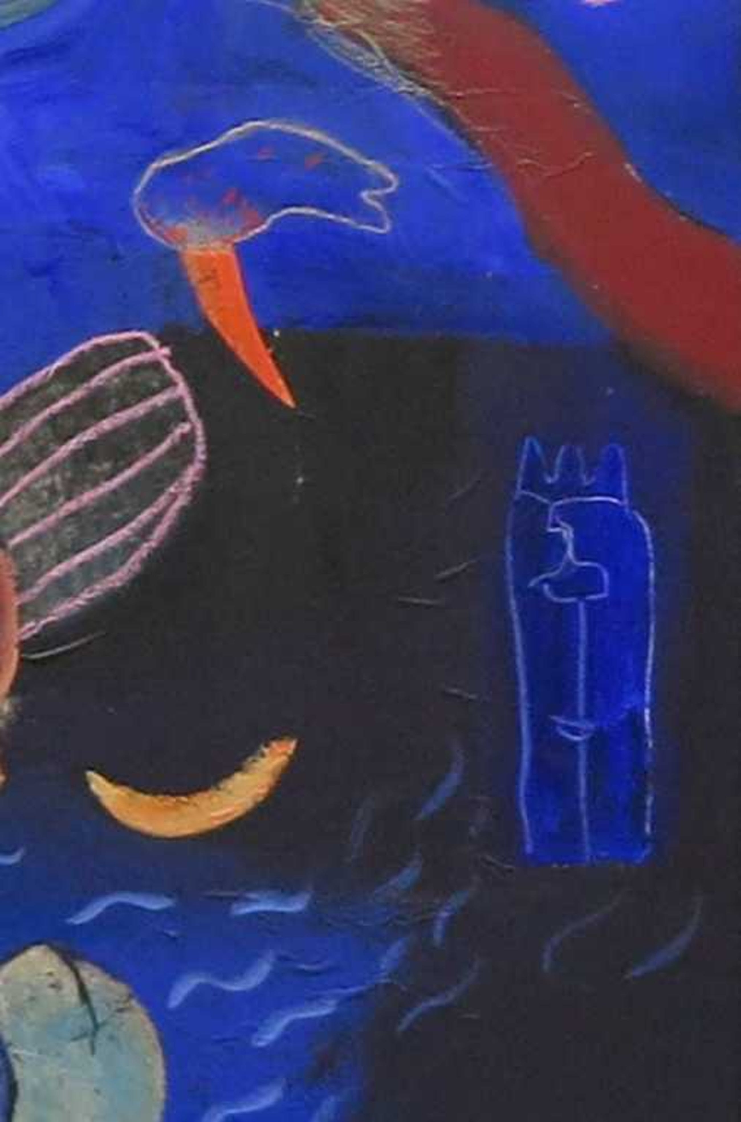 | Het werk is in goede staat, aan de rechterkant bevindt zich een lichte kras op het doek. Zie foto voor detail. | |