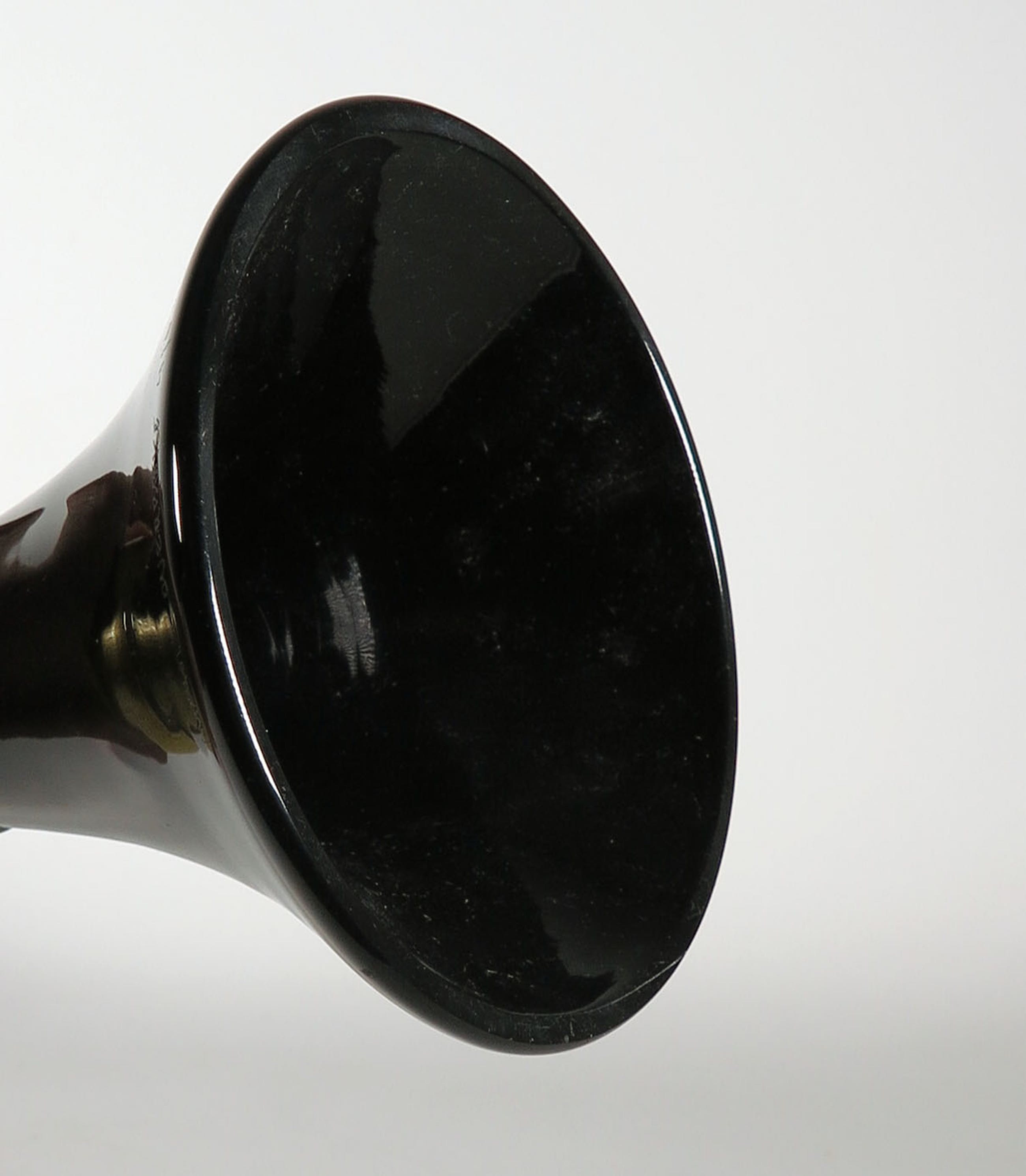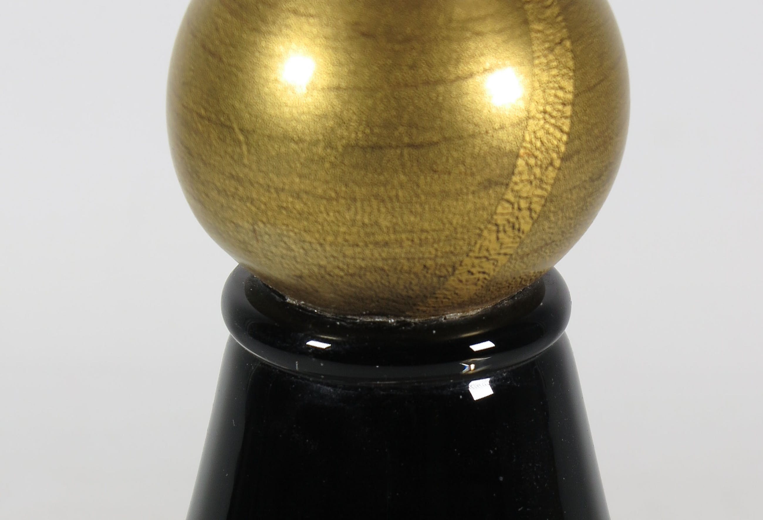 | De zwarte voet is voorheen bij de gouden bal afgebroken. De delen zijn aan elkaar gelijmd, maar er zit nog speling tussen. Er is een grote kans dat de twee delen weer los van elkaar komen. Hier en daar lichte gebruikssporen. | |