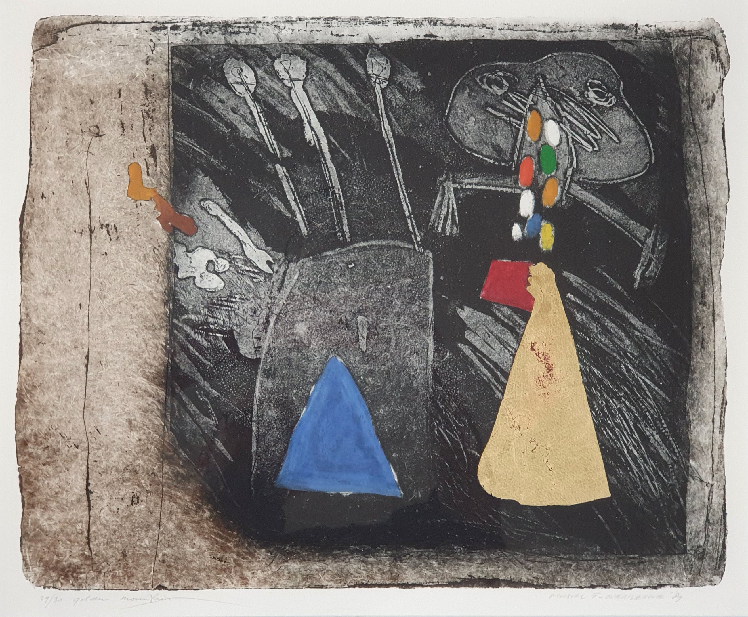 Mooie kleurenets met bladgoud van de bekende Haarlemse kunstenaar Michel van Overbeeke.