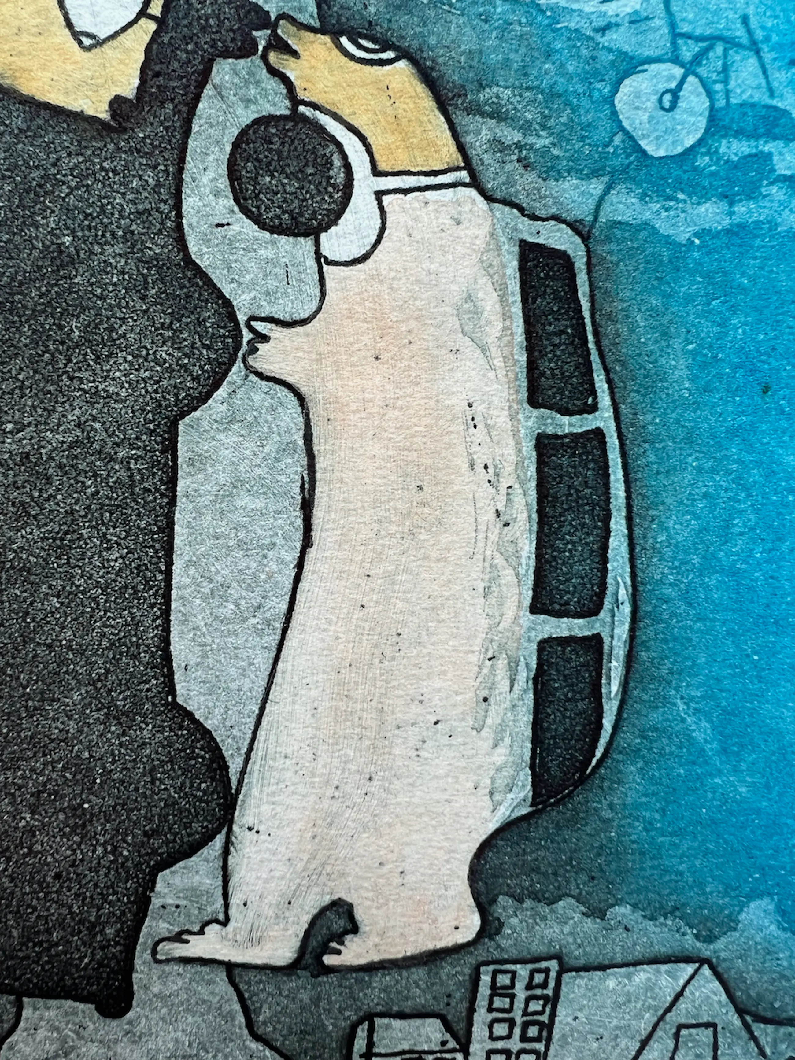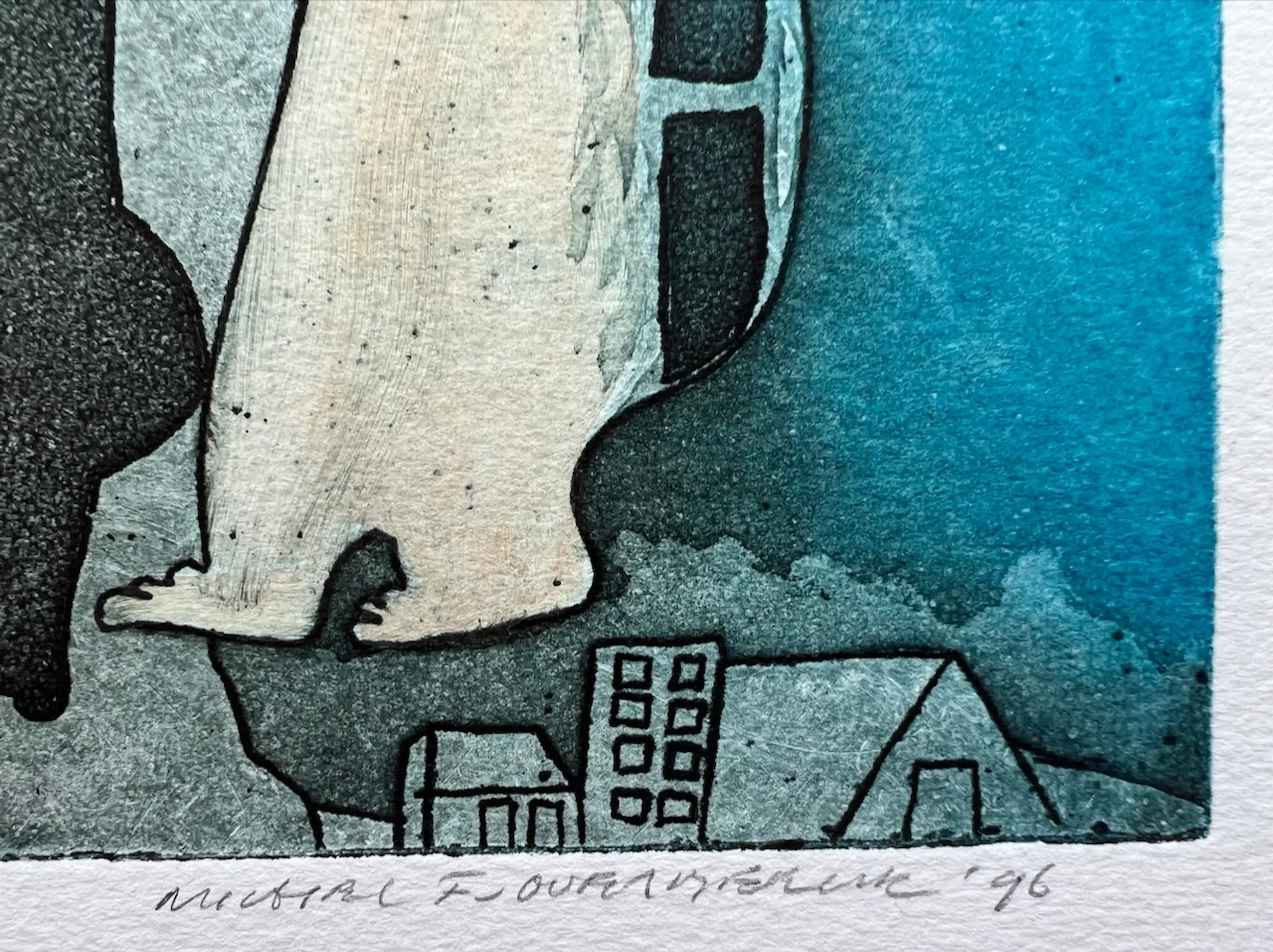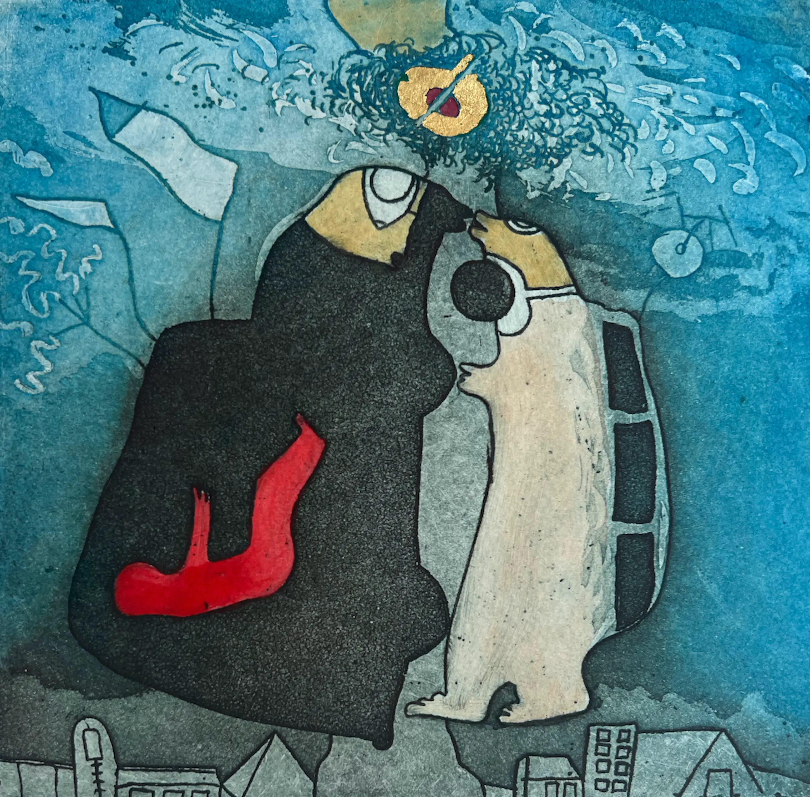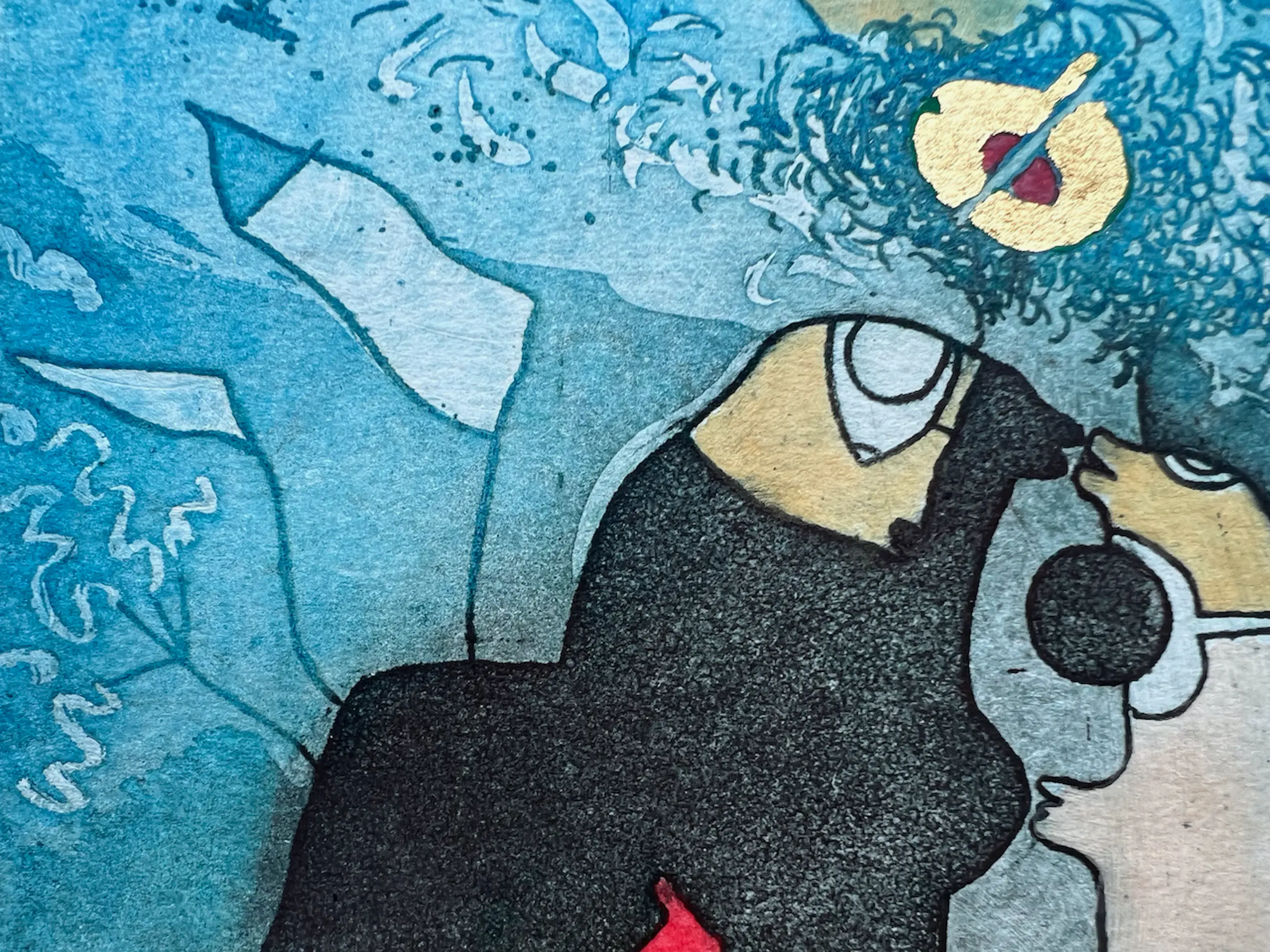 Fraaie ets van de hand van Michel van Overbeeke. Uiteraard met een klein stukje bladgoud in de compositie.
