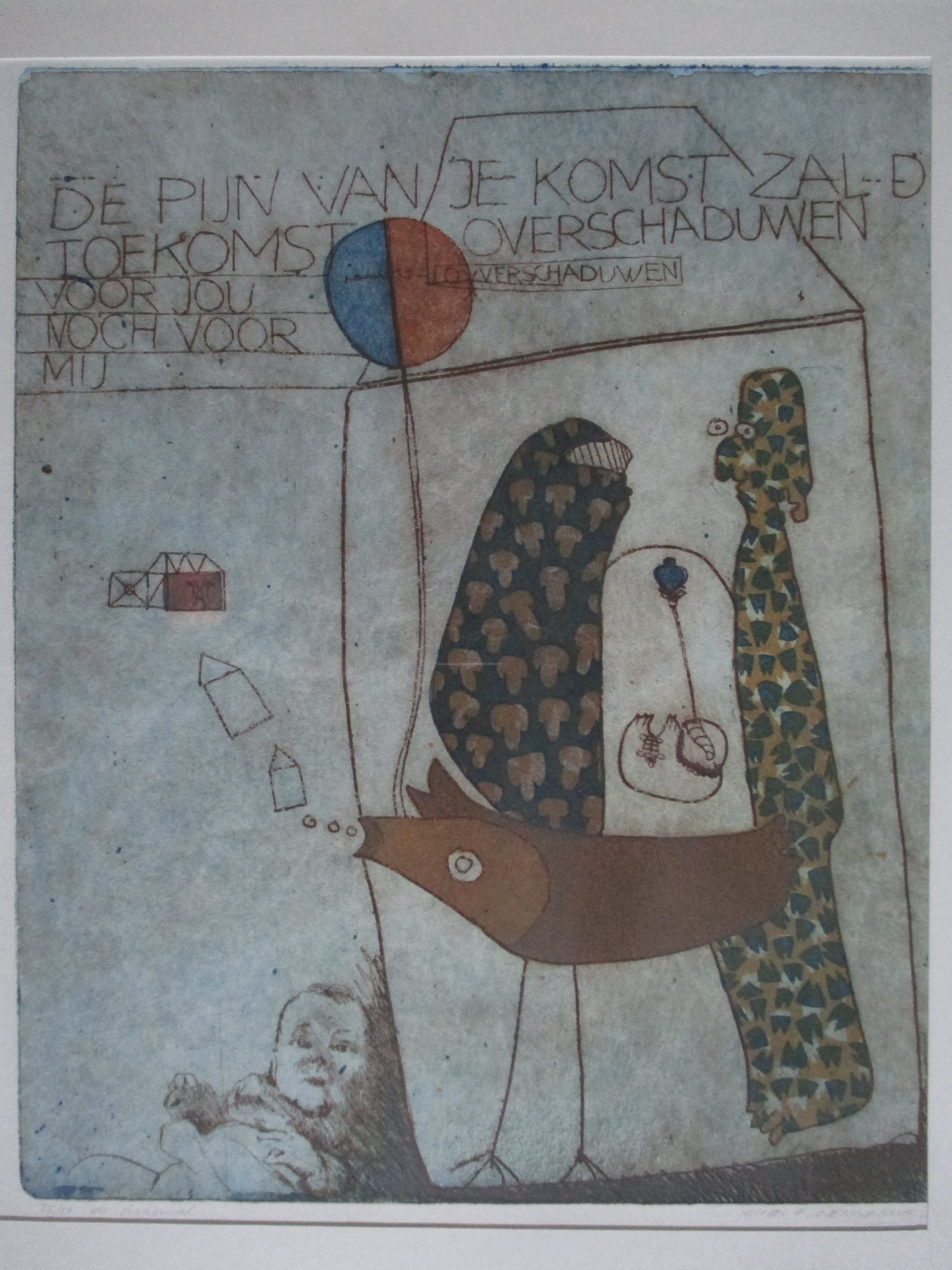 Ets van Michel van Overbeeke uit ongeveer 1981, gesigneerd, genummerd, getiteld en gedateerd in potlood. Ingelijst in aluminium Barth lijst achter glas.