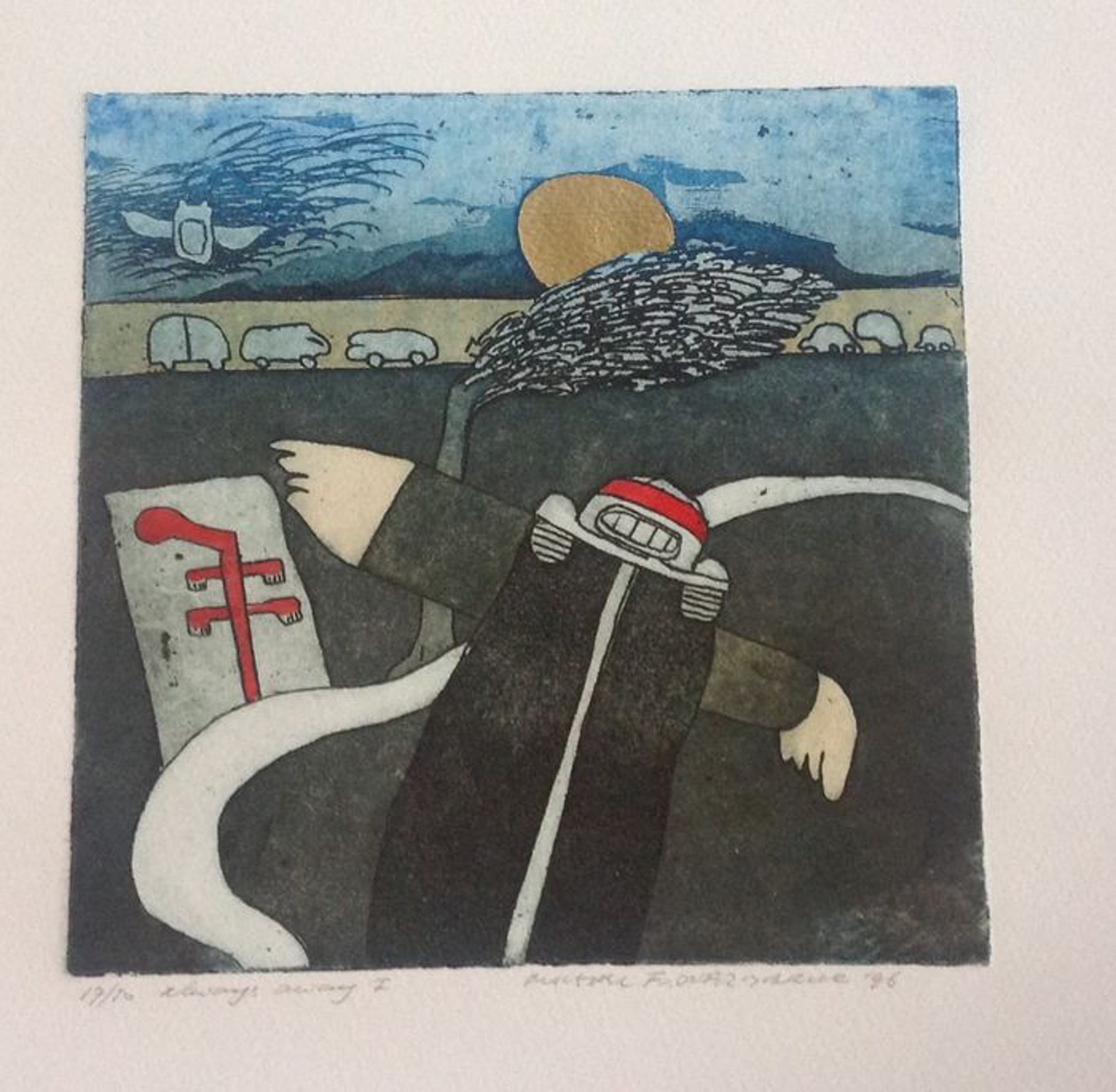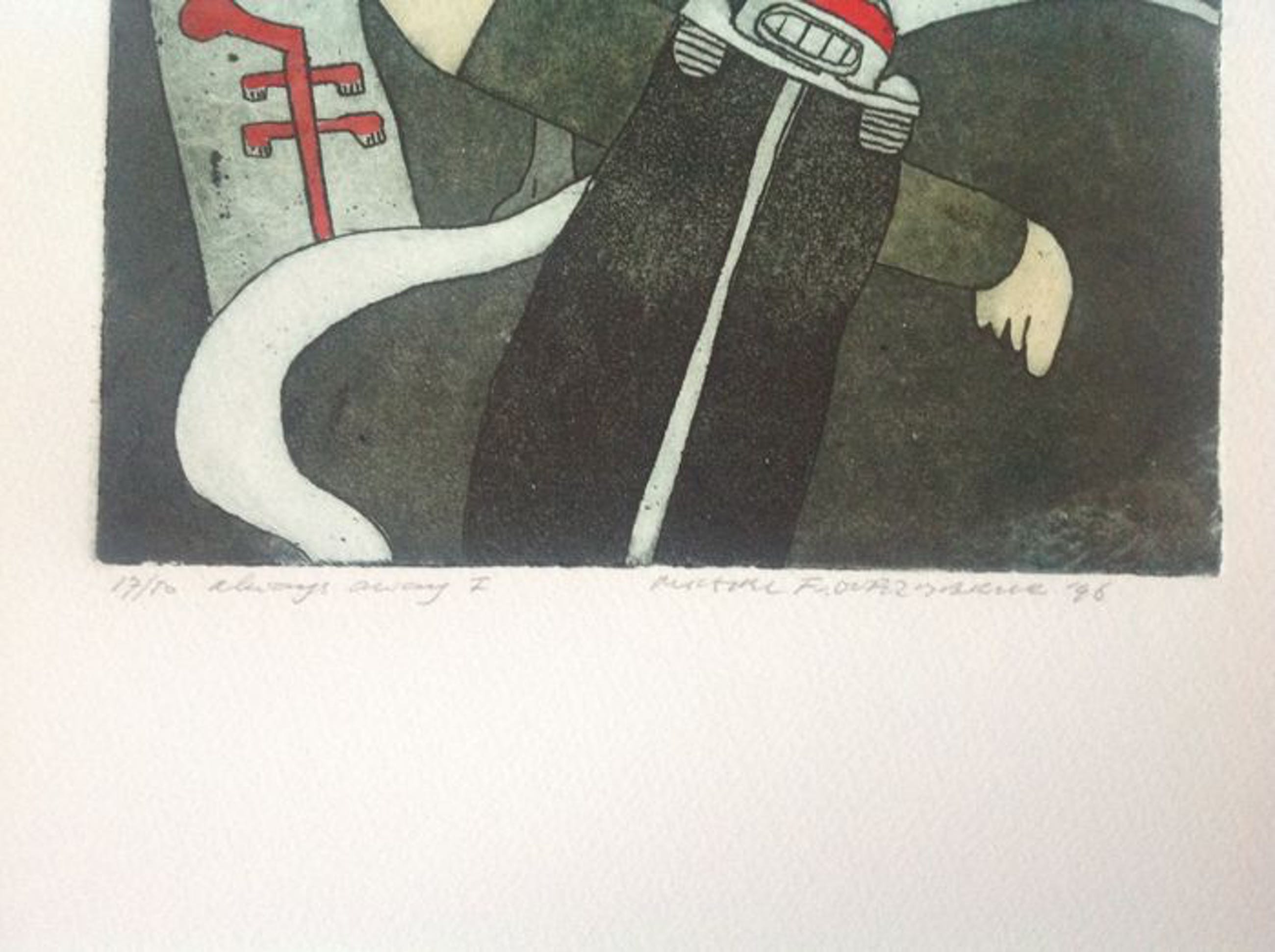 Kleurenets met bladgoud "Always Away I" Afmeting: 65 x 50 cm. Beeld: 20 x 20 cm Wordt in een koker verzonden.