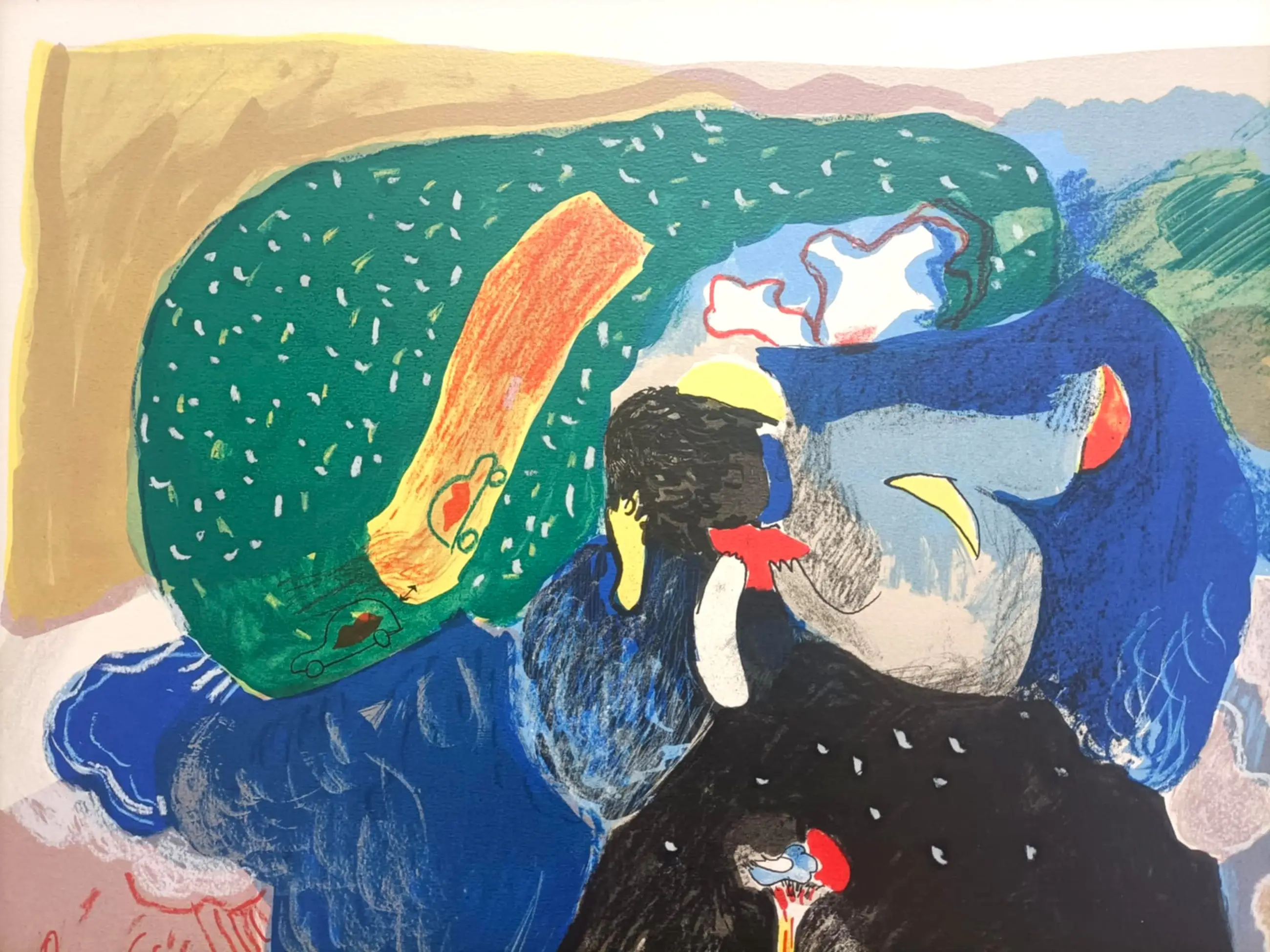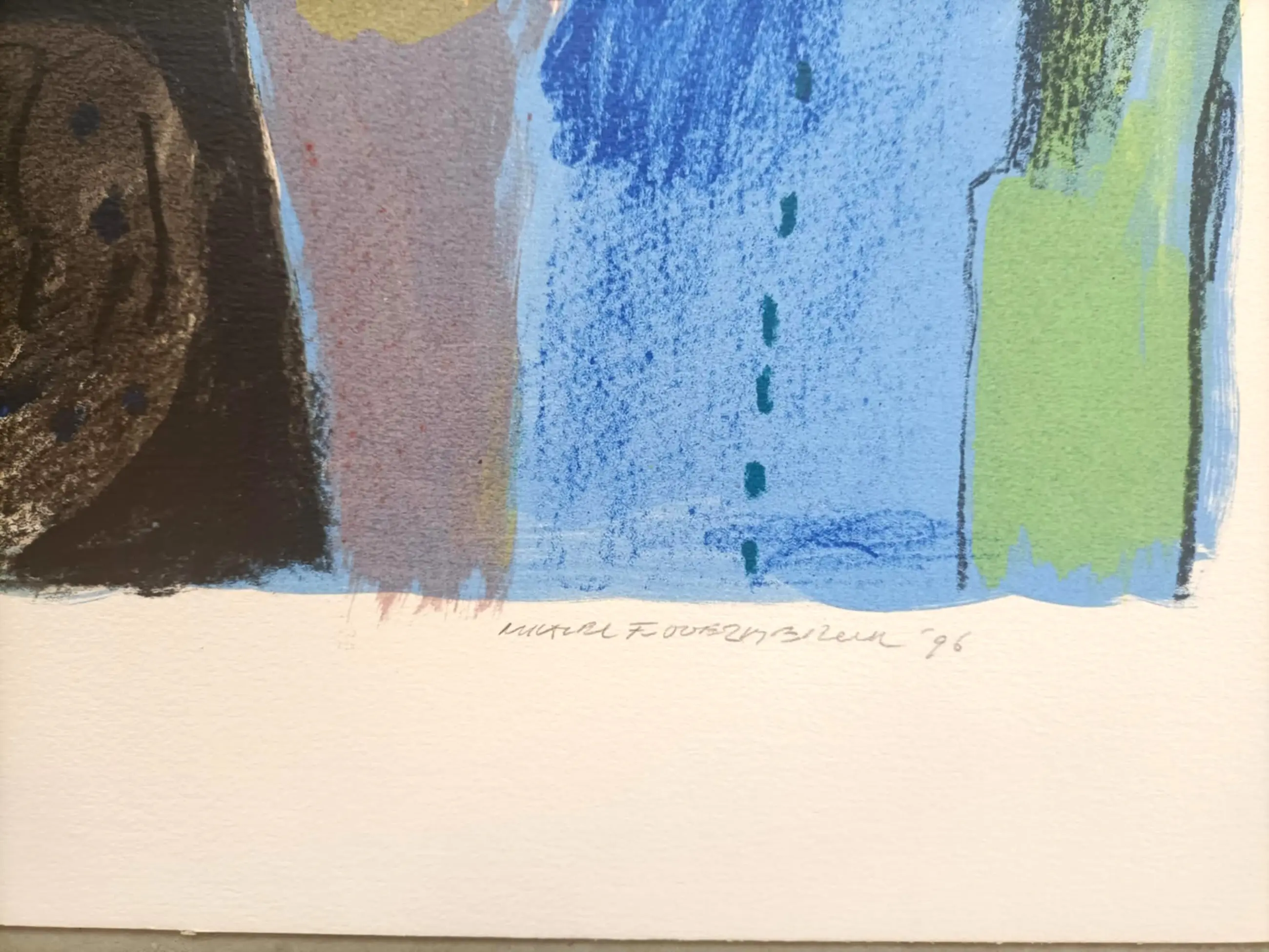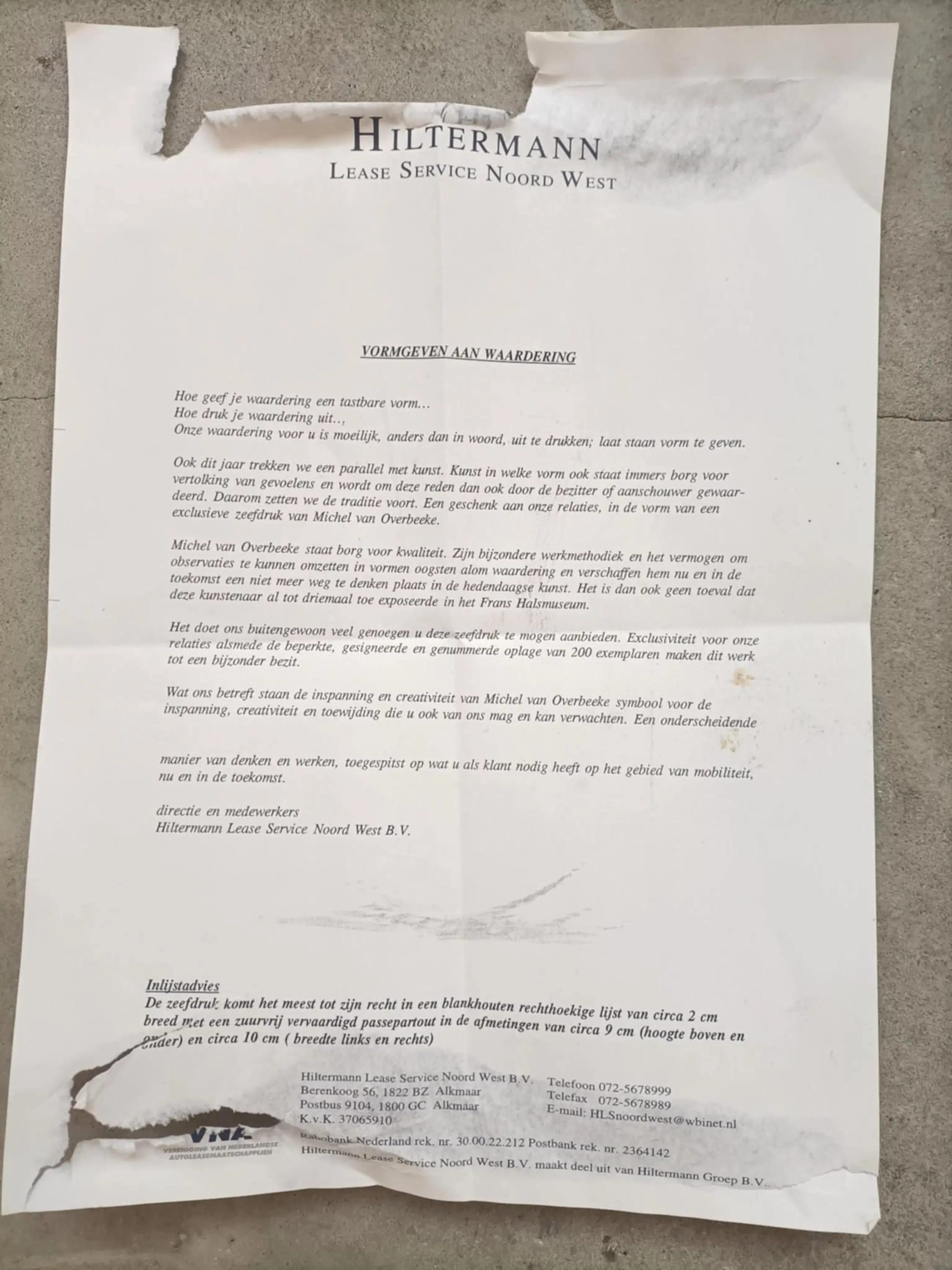 Deze zeefdruk was een relatie geschenk van Hiltermann Lease Service Noord West. De zeefdruk op papier is op karton bevestigd, daarom wordt het niet in een koker verzonden, maar plat.