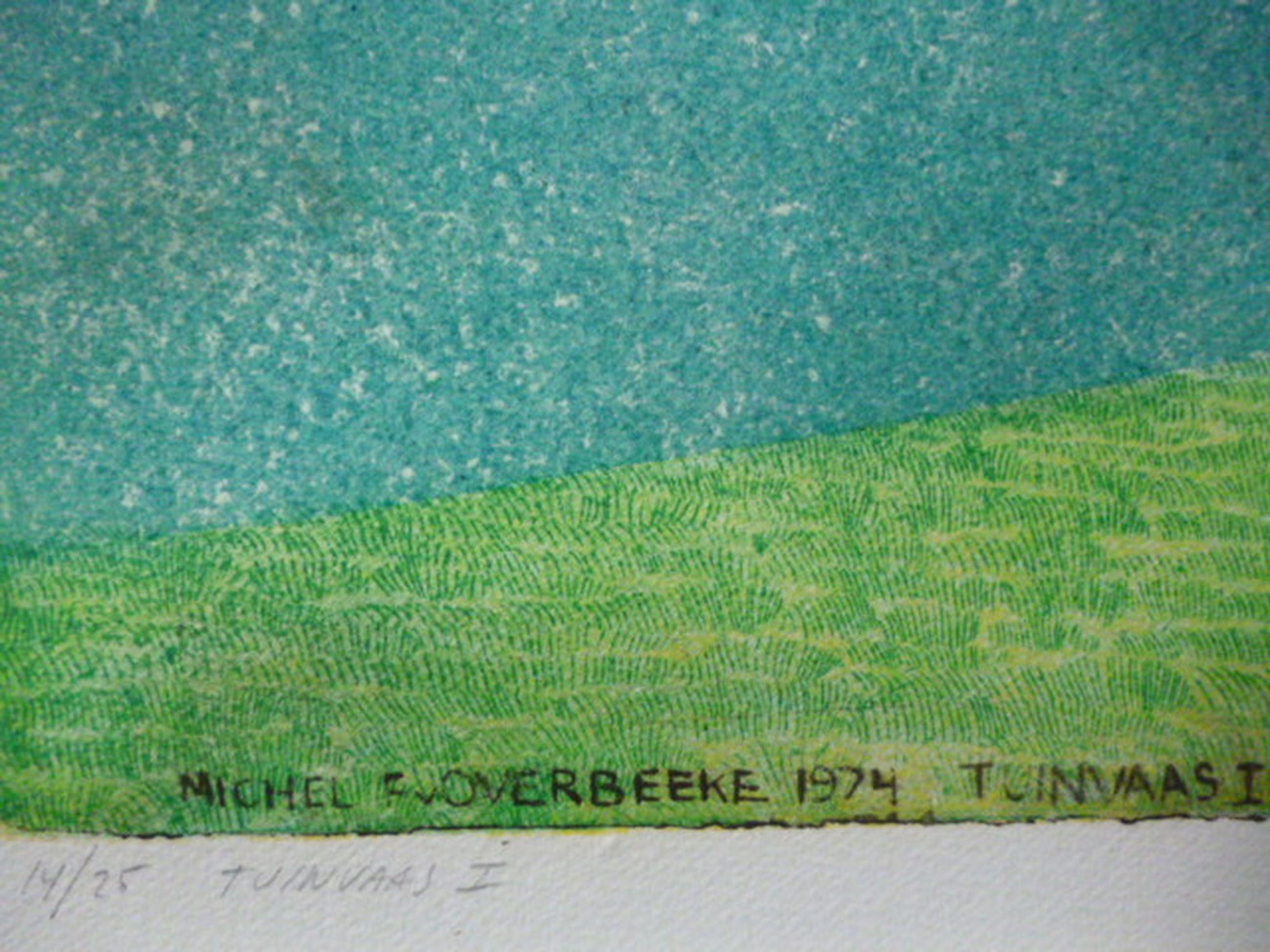 Kleurenets uit 1974. Potlood gesigneerd en gedateerd rechtsonder. Getiteld en genummerd 14/25 linksonder. In de plaat gesigneerd, gedateerd en getiteld linksonder Beeldmaat 49,5 x 49 cm. Bladmaat 60 x 56,5 cm. Losbladig.