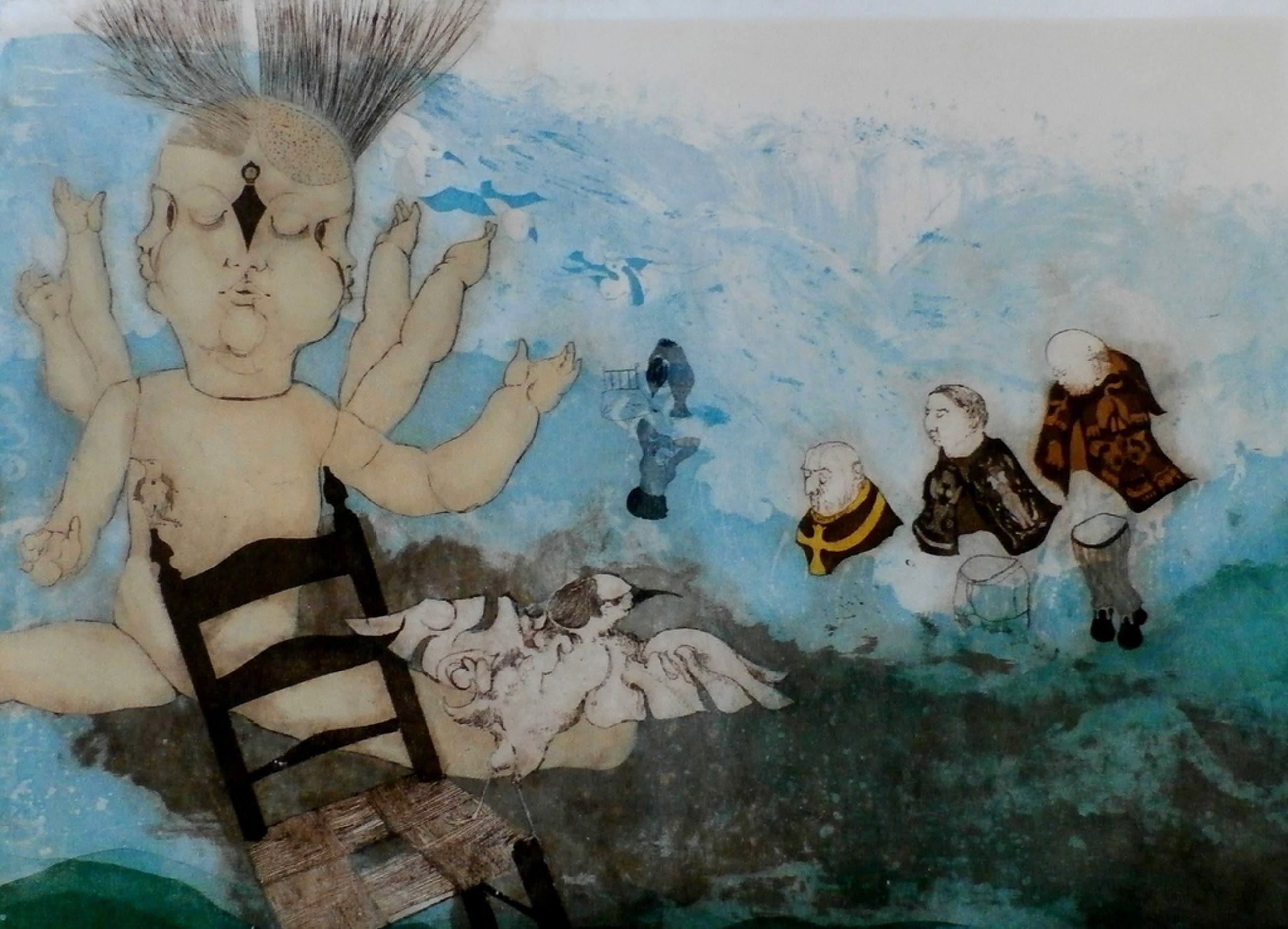1 ets van Michel van Overbeeke. Titel: Ontmoeting in de ruimte 1. Nummer: 6/25. handgesigneerd. Afmetingen: 75 x 101 cm.
