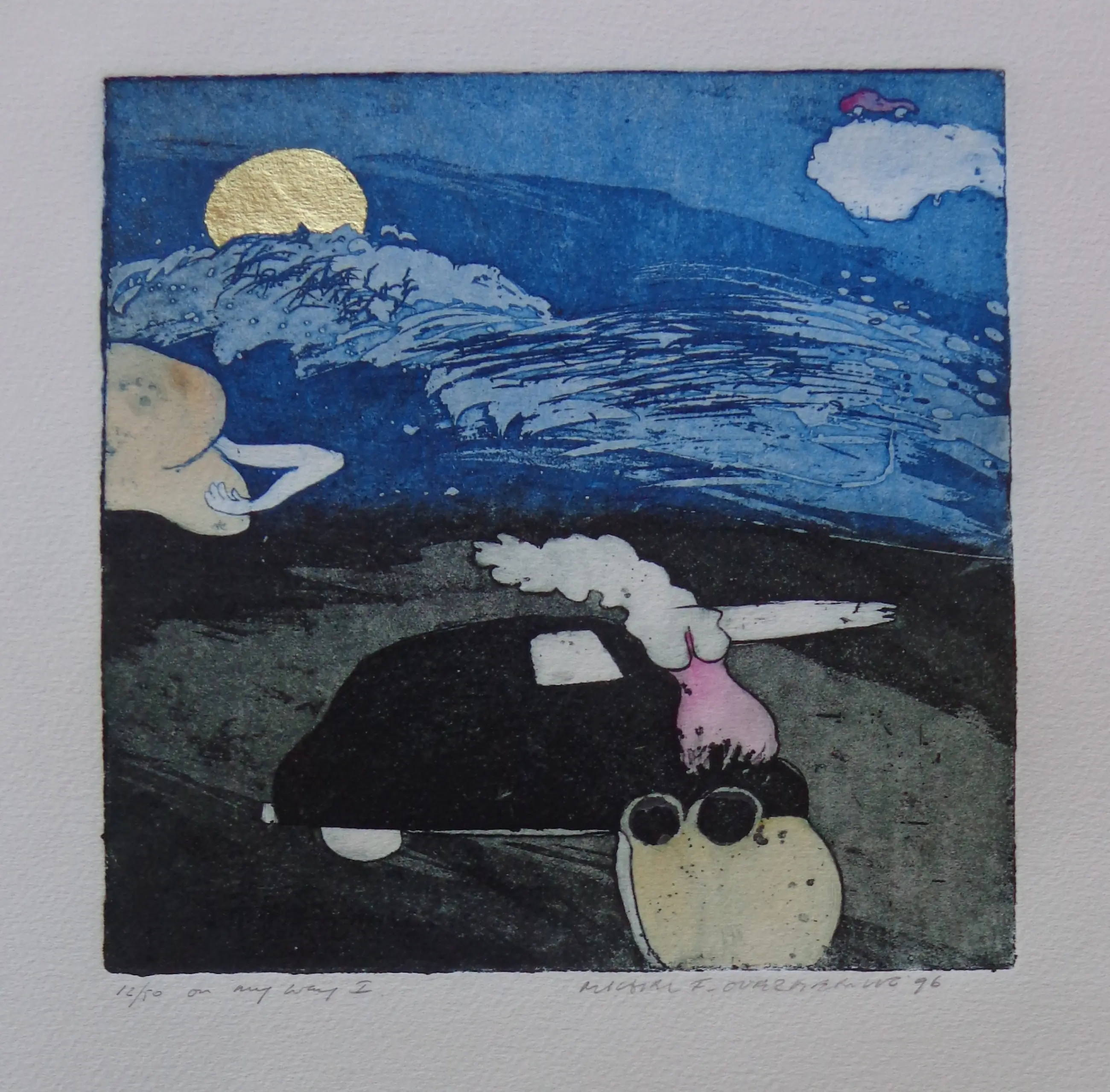 Michel van Overbeeke - ON MY WAY I / KLEURETS + GOUDDRUK / 65x50cm / SIG / 1996