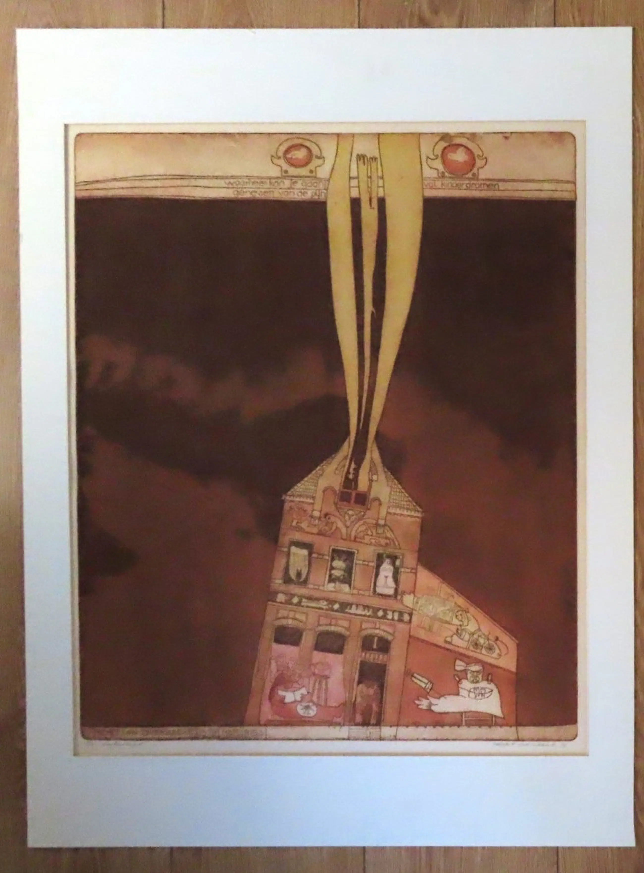 Net exemplaar, licht gebruind op de randen buiten de passe-partout. Wordt zonder passe-partout verzonden.