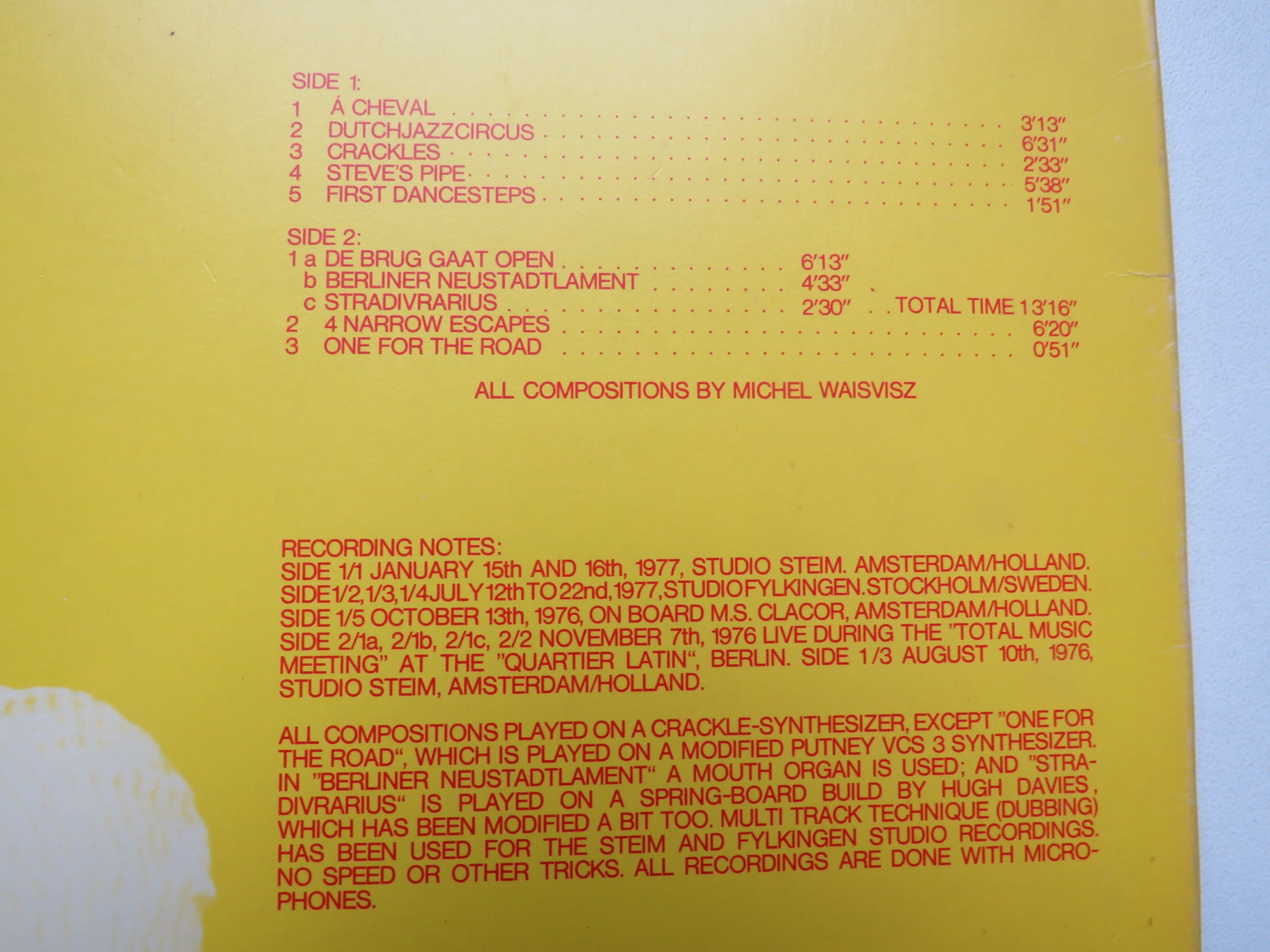 Hedendaagse muziek met geimproviseerde en elektronische invloed. Michel Waisvisz was de uitvinder van de Kraakdoos en De Handen. Was vele jaren directeur van Steim (Studio voor Elektro Instrumentale Muziek) in Amsterdam. Maakte muziektheater met o.a. Moniek Toebosch, Teo Joling, Han Bennink. Organiseerde de Claxon Geluidfestivals in Utrecht (met Maarten Altena). Eerste uitgave van het Claxon label nr 77.1 ism Free Music Berlijn.