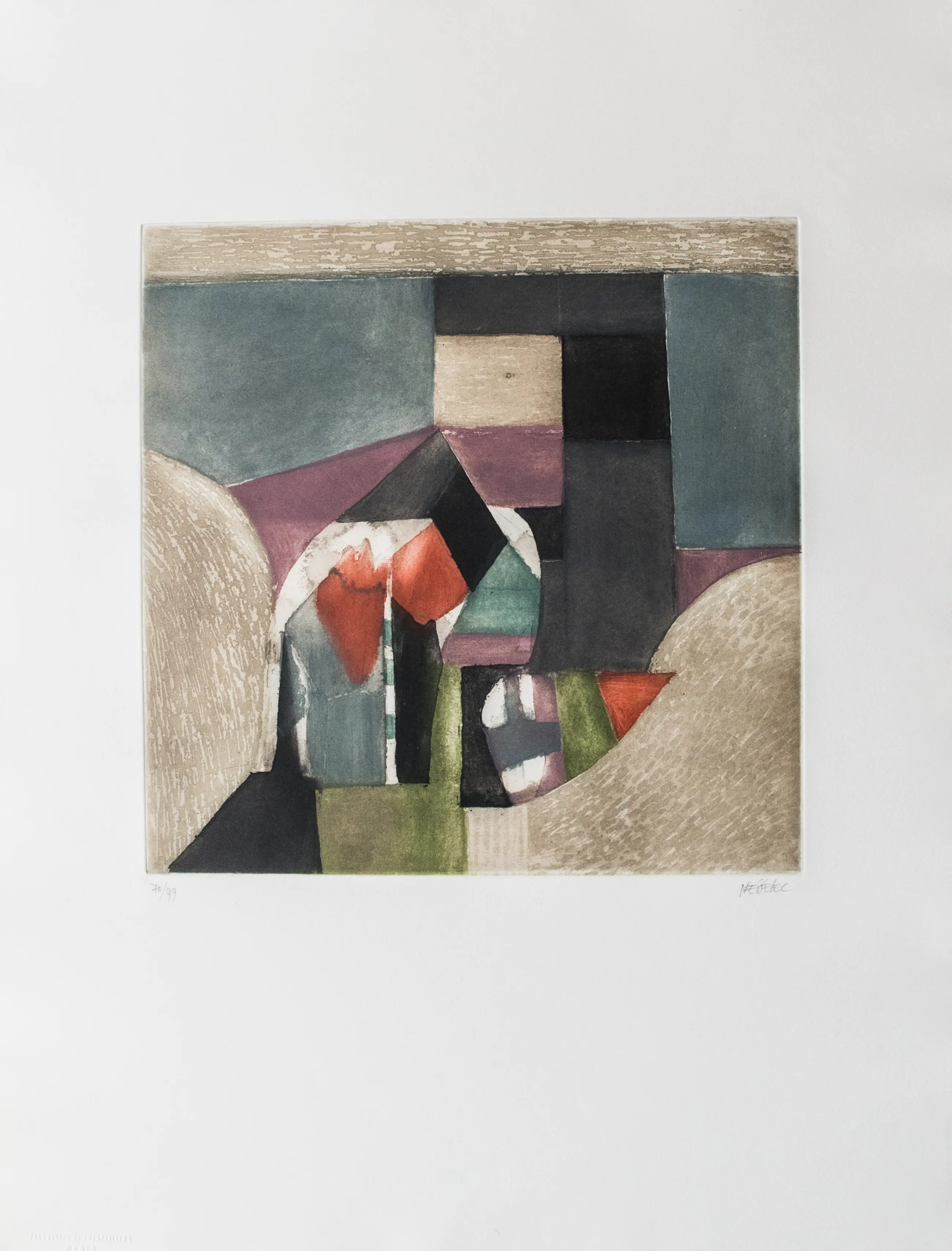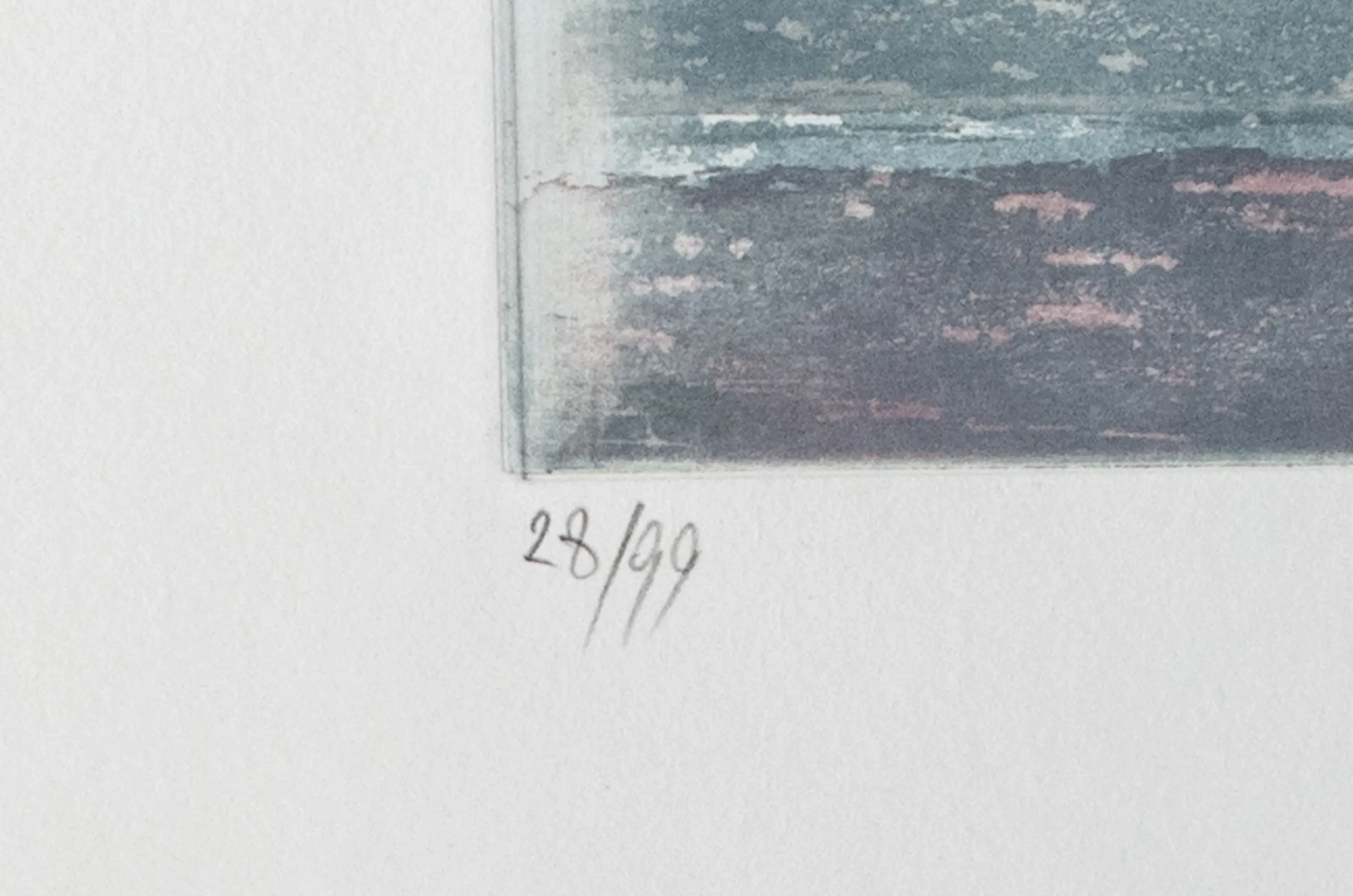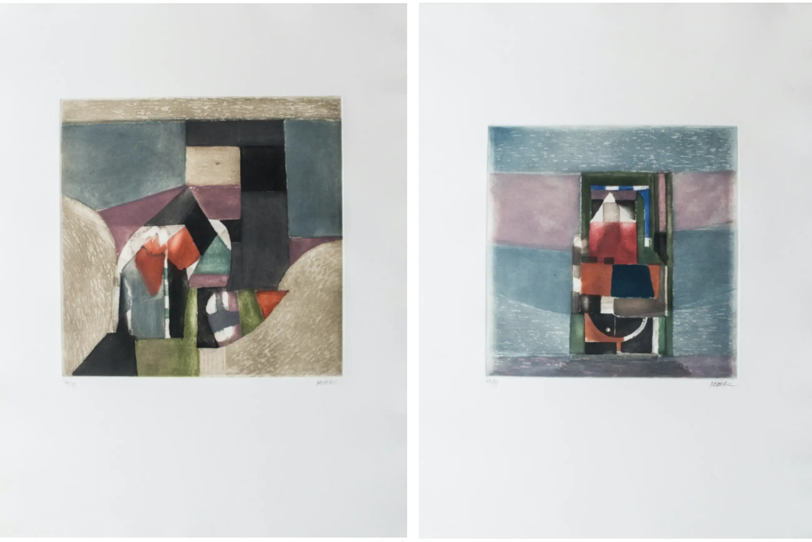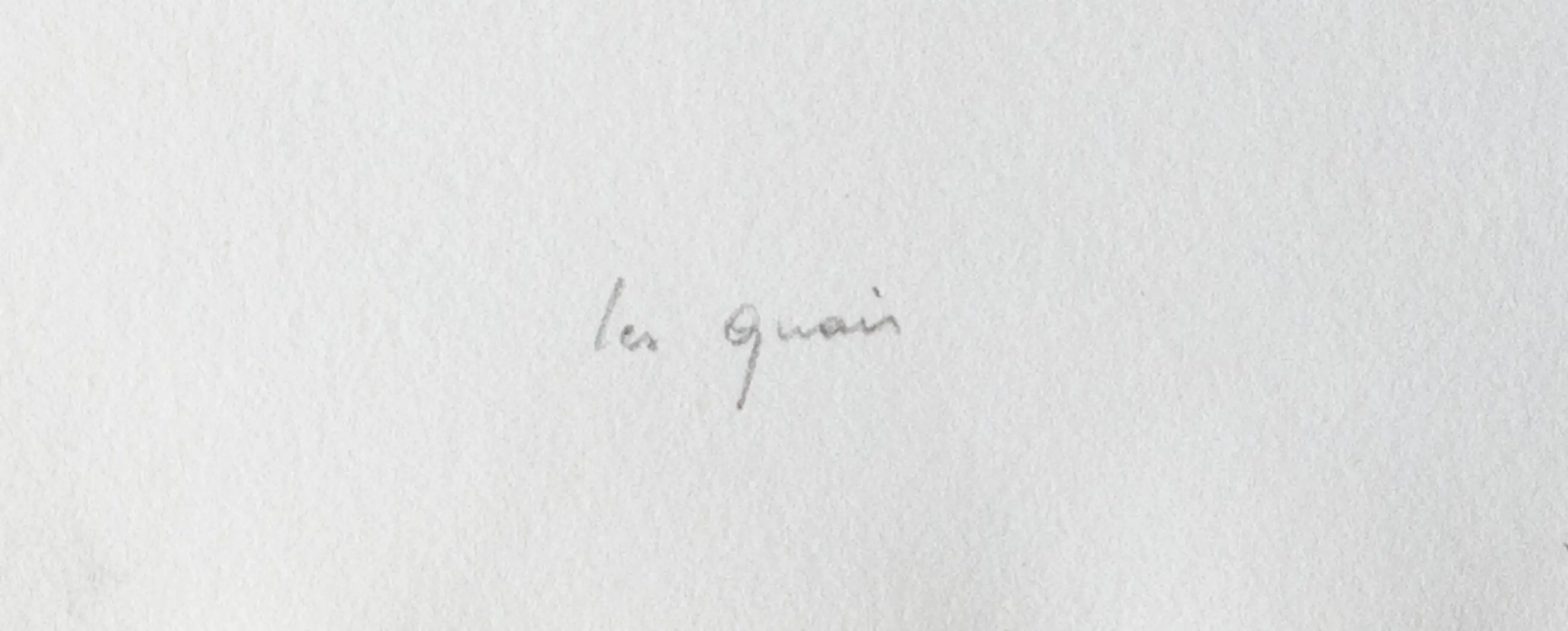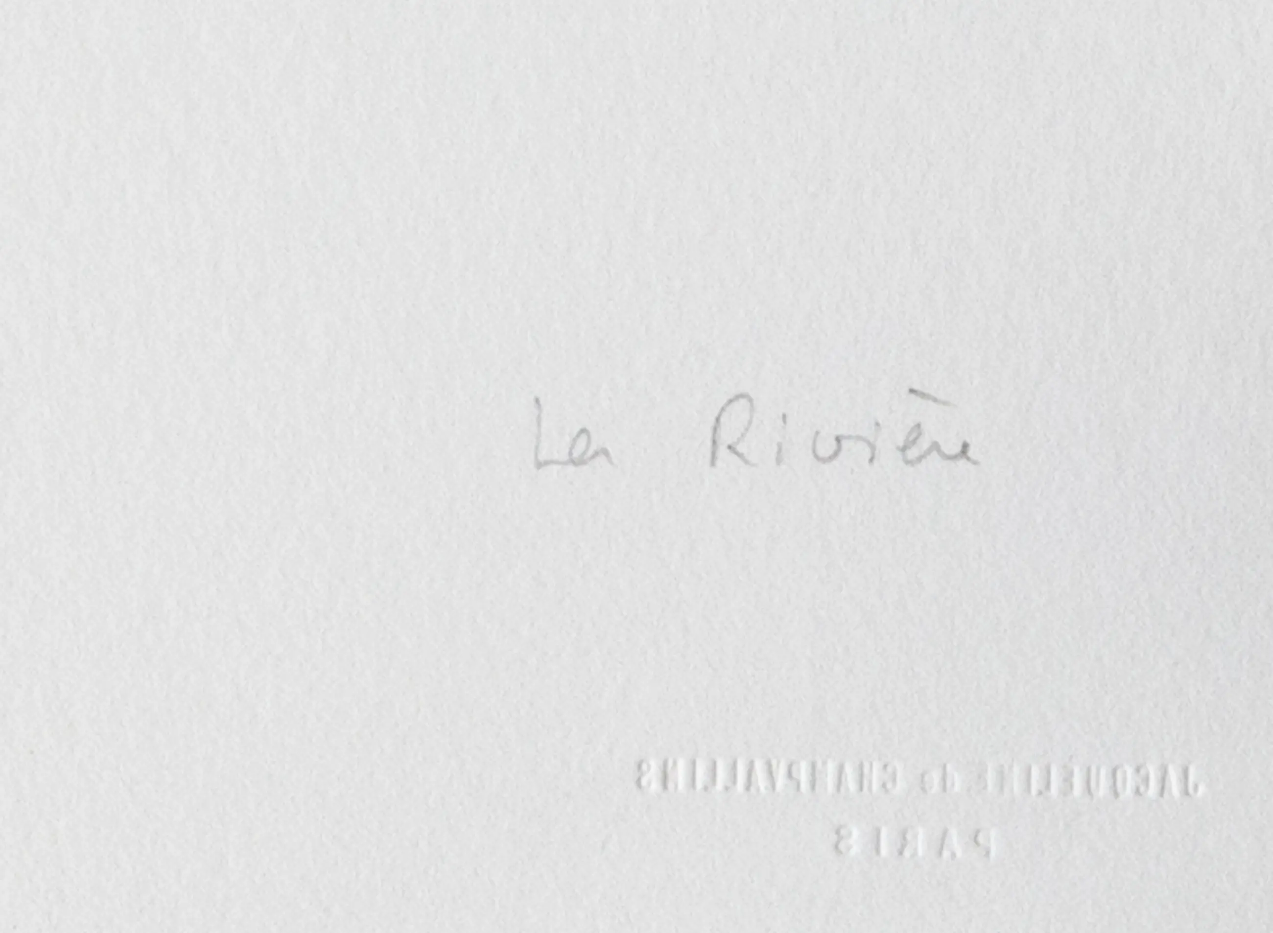 Twee kleuretsen, handgesigneerd en genummerd met potlood, getiteld op de achterkant. Formaat afbeeldingen 30 x 30 cm. (Rivière) en 33 x 32 (Les Quais) Formaat papier 66,5 x 50,5 cm.