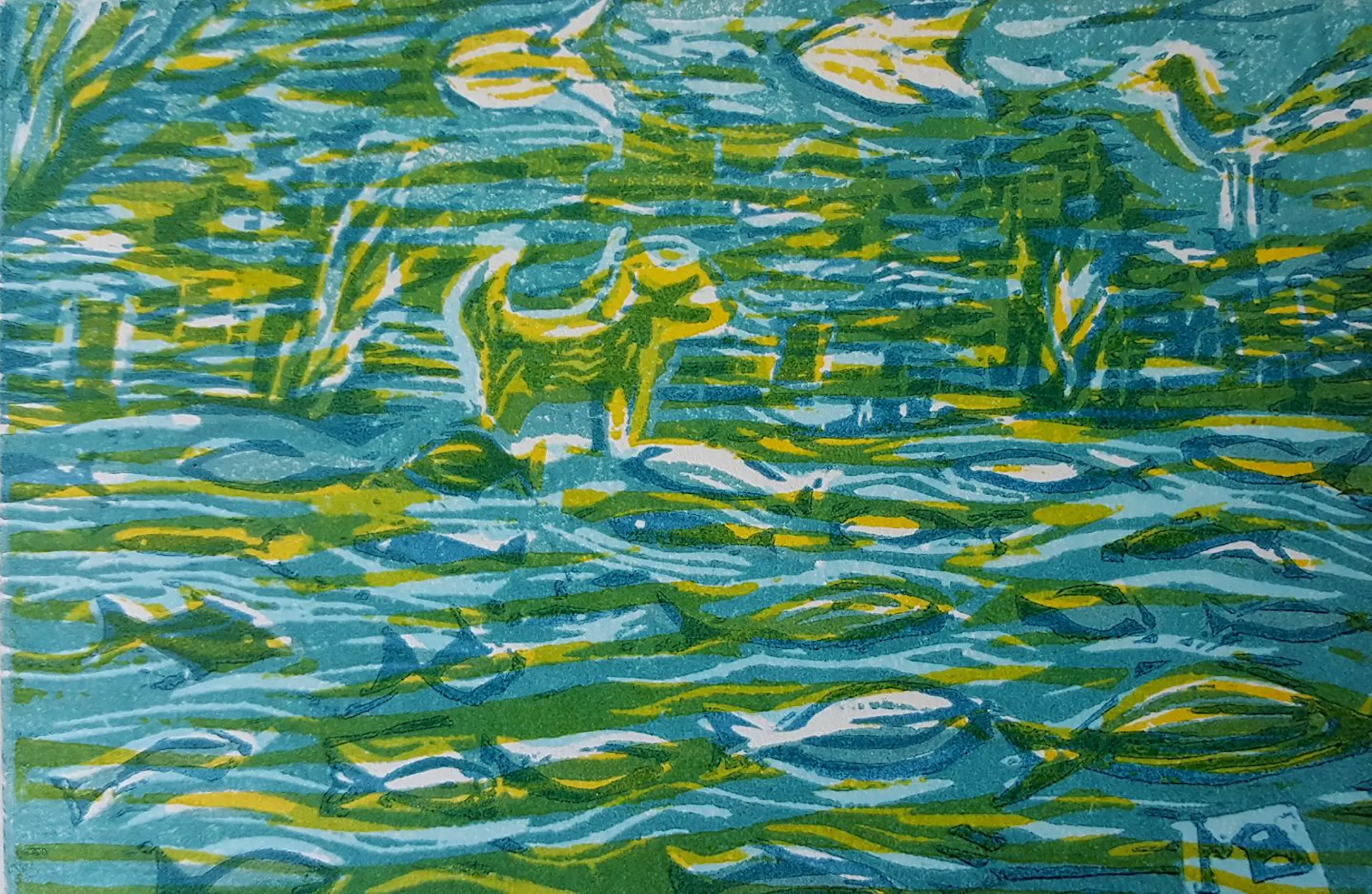 Houtsnede, vier kleuren. Prentje van april 2017 uit de reeks 'Prentje van de maand'. In 2017 was het thema ‘De Zee'