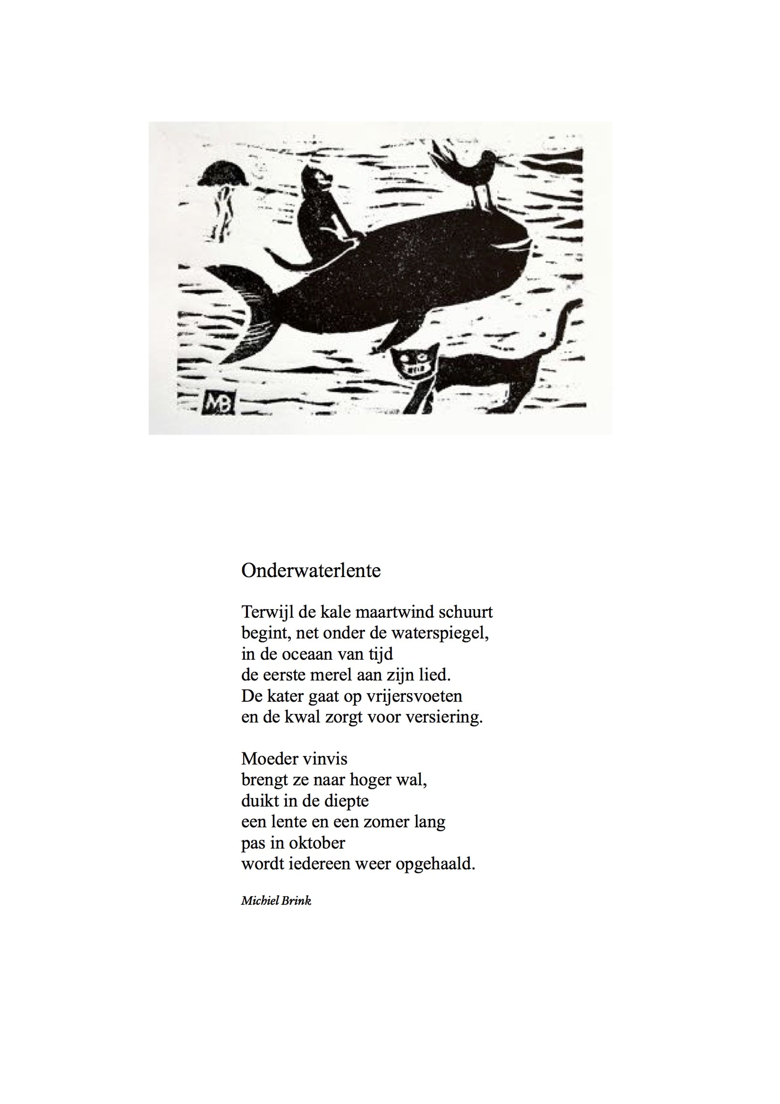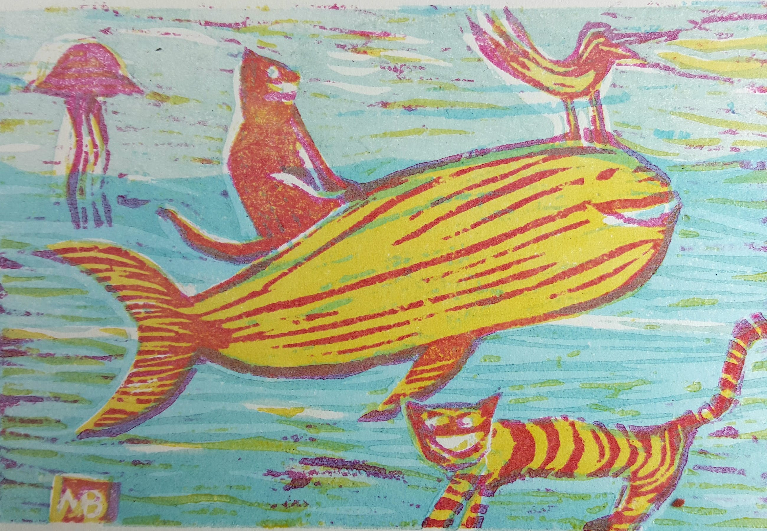 Houtsnede, vier kleuren. Prentje van maart 2017 uit de reeks 'Prentje van de maand'. In 2017 was het thema ‘De Zee'. Bijgaand een gedicht.