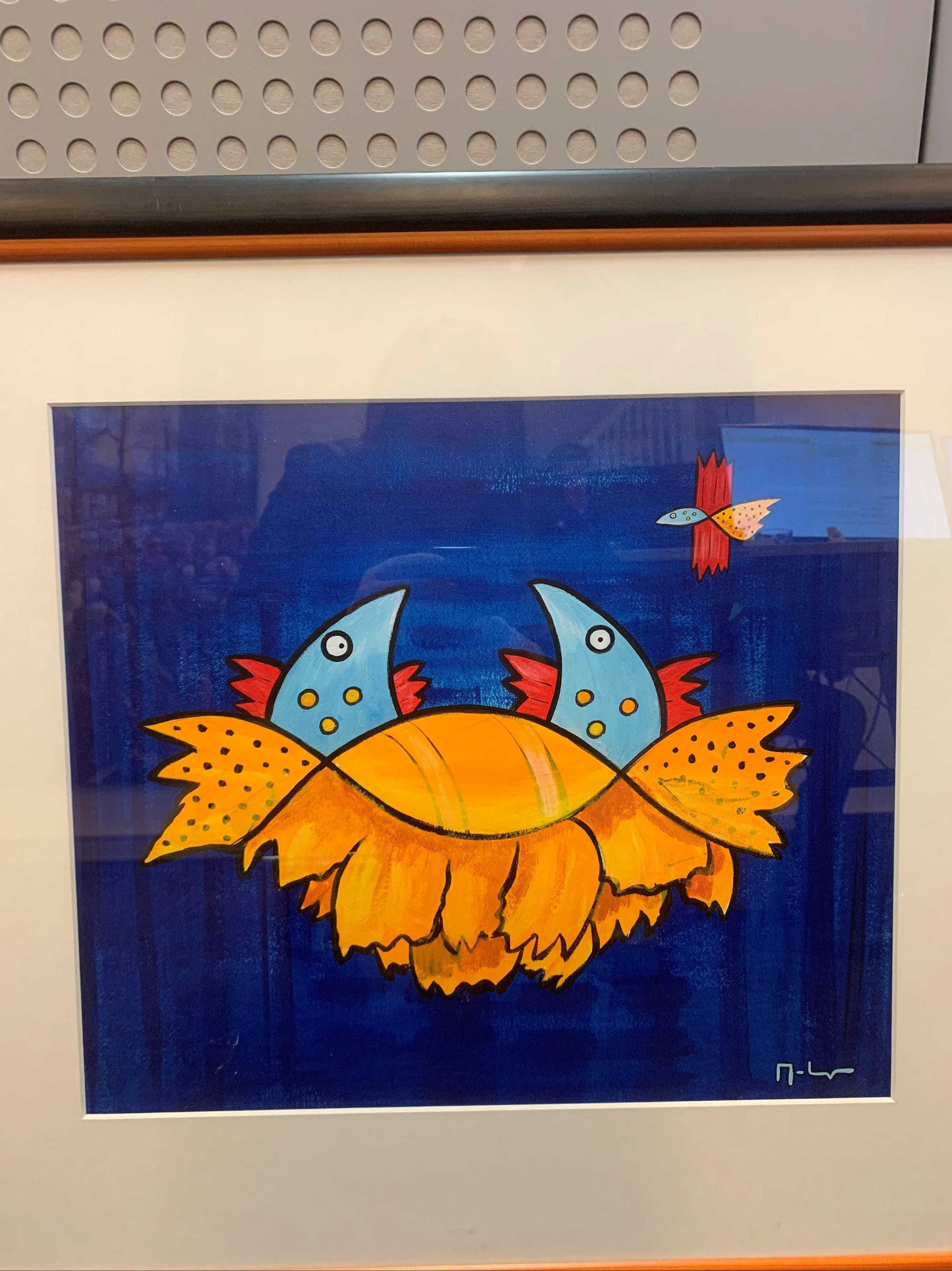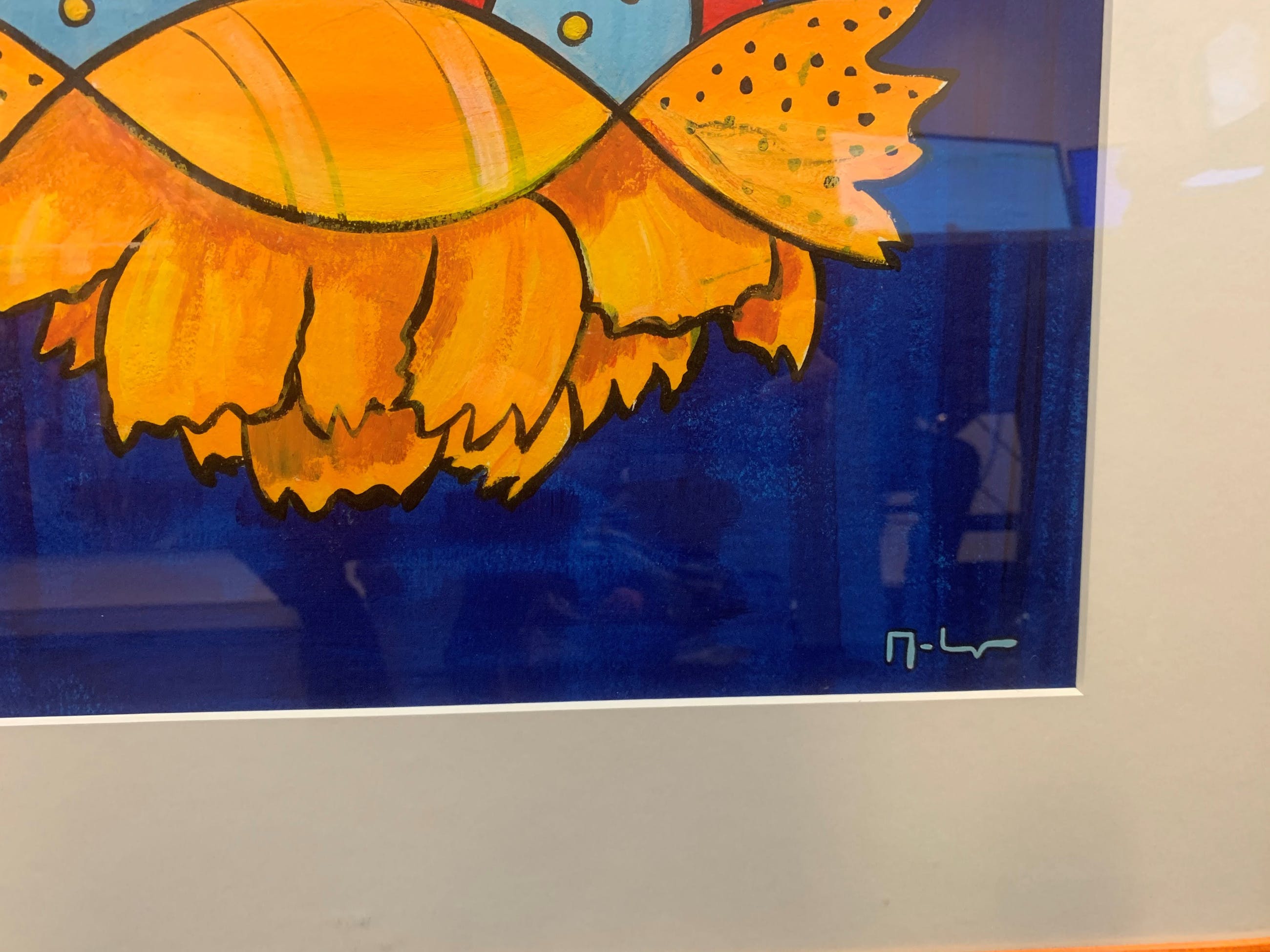 Schilderij geschenk van schilder geweest, heeft jarenlang op kinderkamer gehangen. Schilder is ingelijst in mooie lijst.