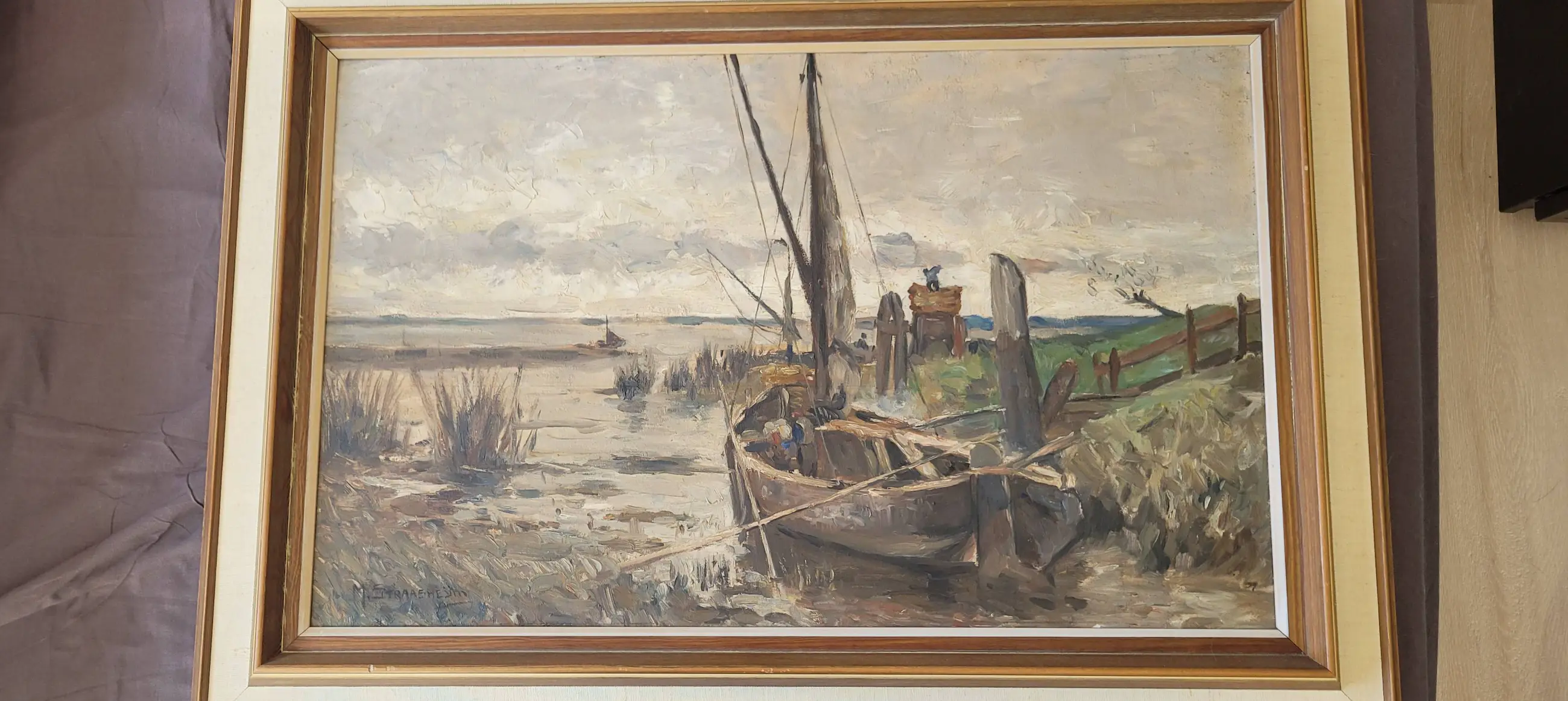 Stilleven met boot van Michiel Straasheijm. Geboren Roosendaal 1988 en overleden Dordrecht 1958. Lid van Pictura te Dordrecht en de federatie B.B.K.