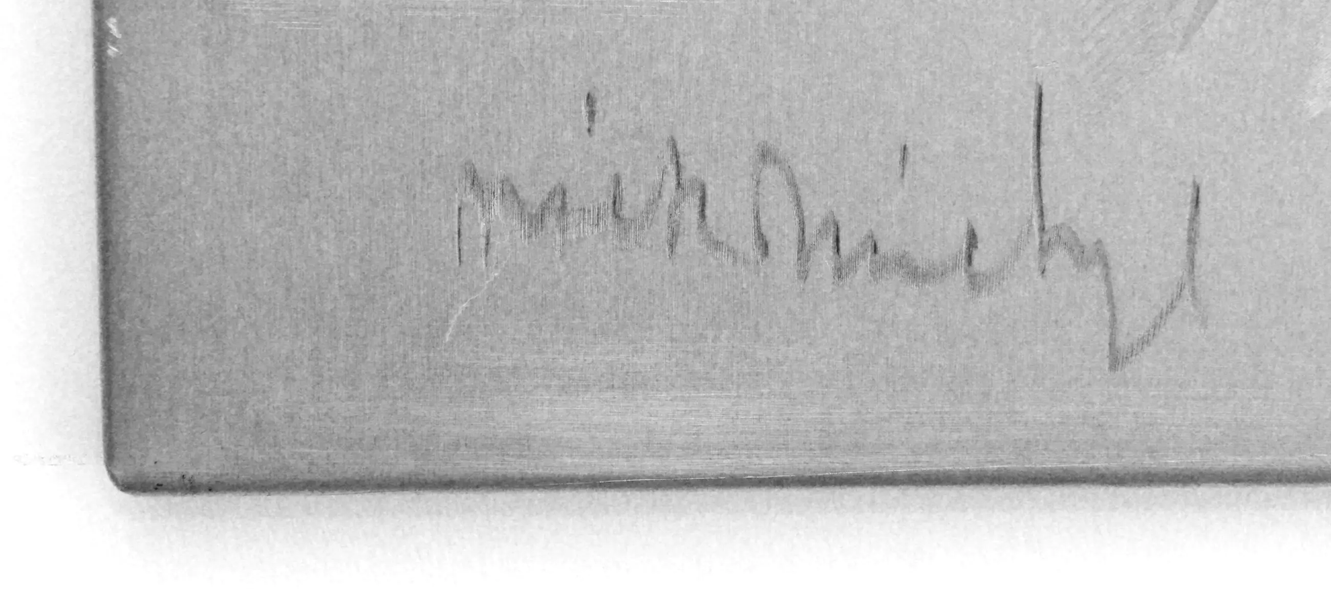 Mick Micheyl (1922-2019) Franse zangeres/TV producente/Componiste/ Beeldend Kunstenaar ( zie Wikipedia) Gespecialiseerd in gravure op metaal
