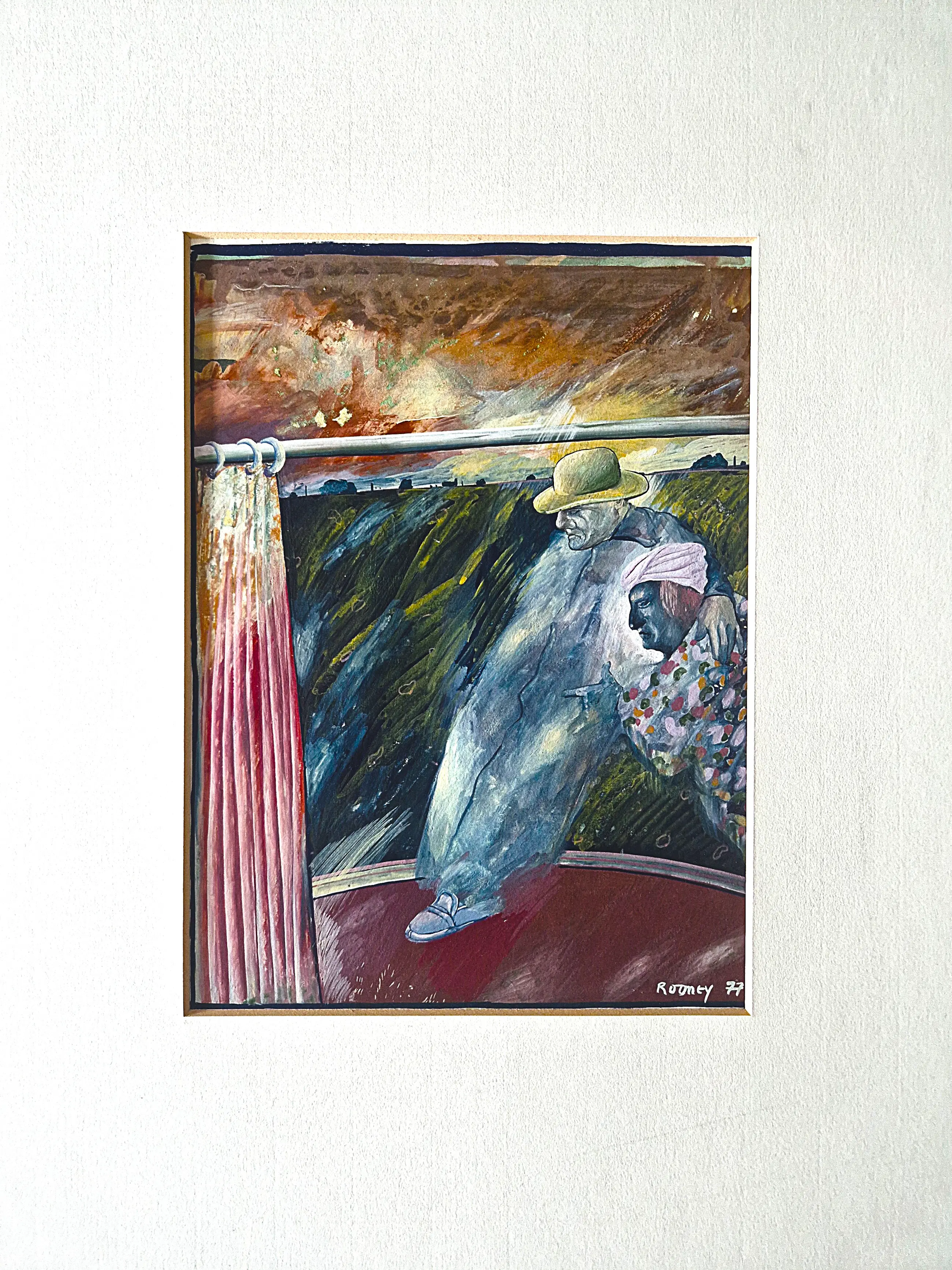 Mick Rooney - in 1977 geschilderde Gouache "man and woman in a surreal landscape" gesigneerd