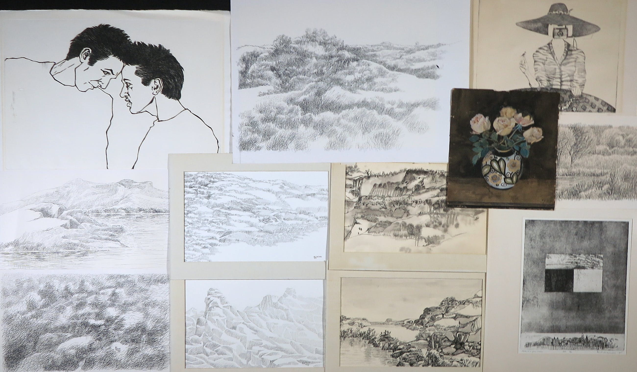 De conditie van de werken in dit lot verschilt. Over het algemeen zijn de werken in goede staat. Enkele werken zijn beschadigd (vouwlijnen, gekreukt papier, scheurtjes).