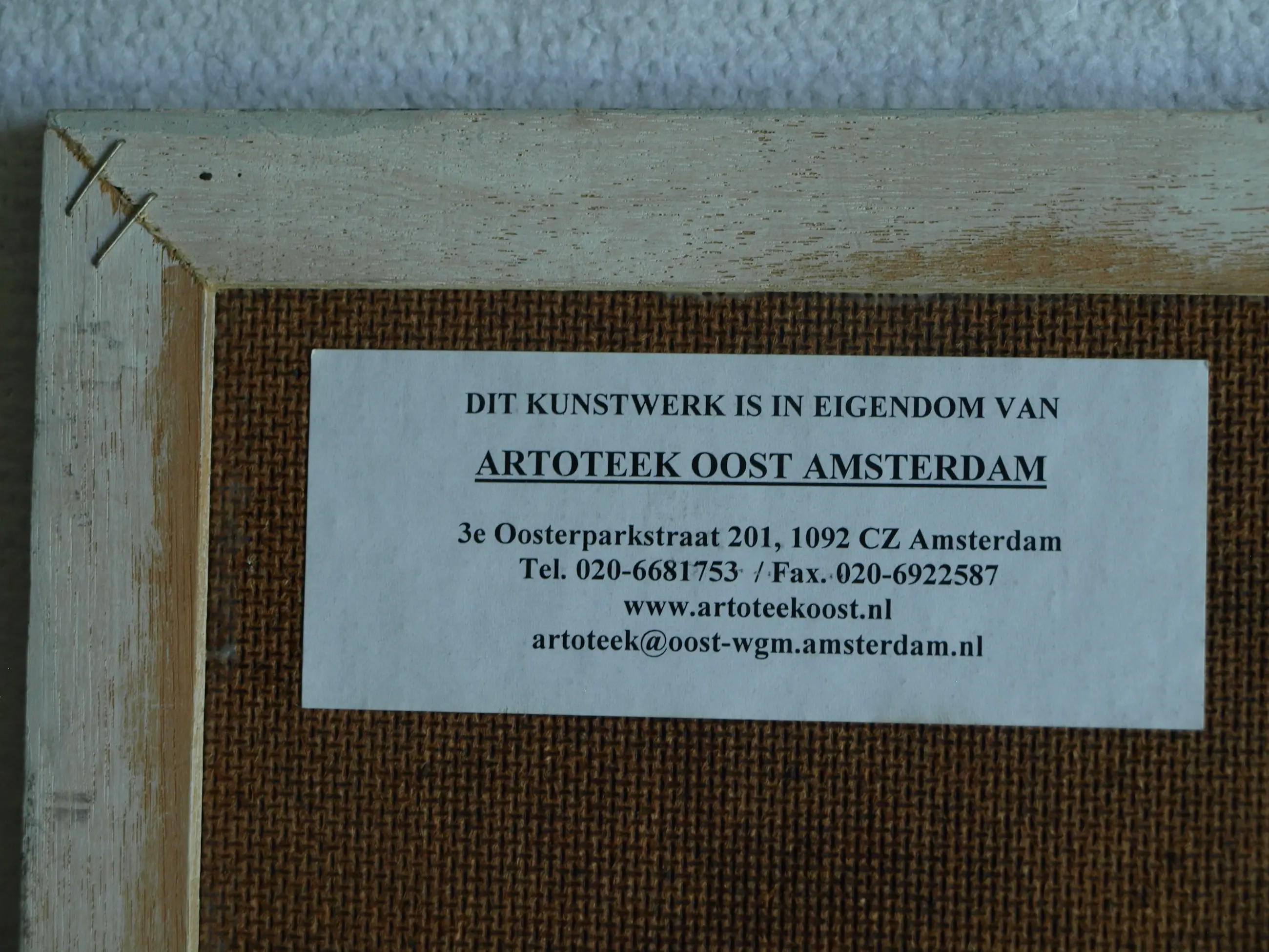 Afhandeling: -Het werk kan afgehaald worden in Amsterdam. Afhalen heeft onze voorkeur. -Het werk kan binnen Nederland aangetekend verzonden worden via PostNL. -Het werk kan naar België, Duitsland en Frankrijk verzonden worden via GLS.