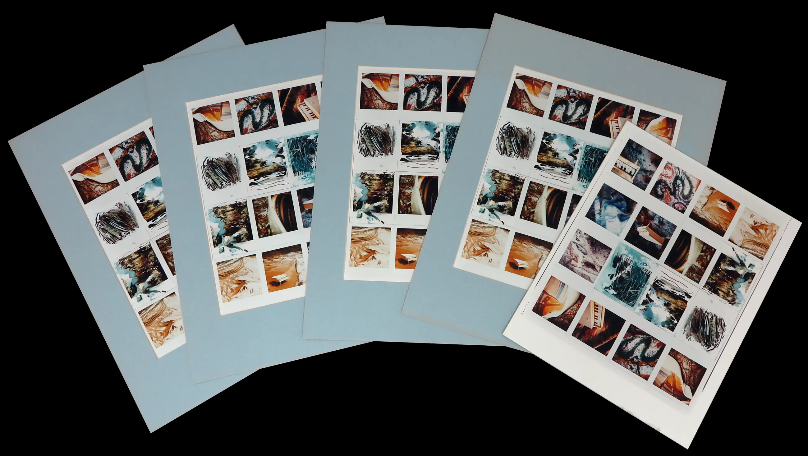 | Eén werk zit los in het passe-partout, bij een ander ontbreekt het passe-partout. Passe-partouts zijn licht verkleurd, mogelijk kleine oneffenheden. | |||||||||||