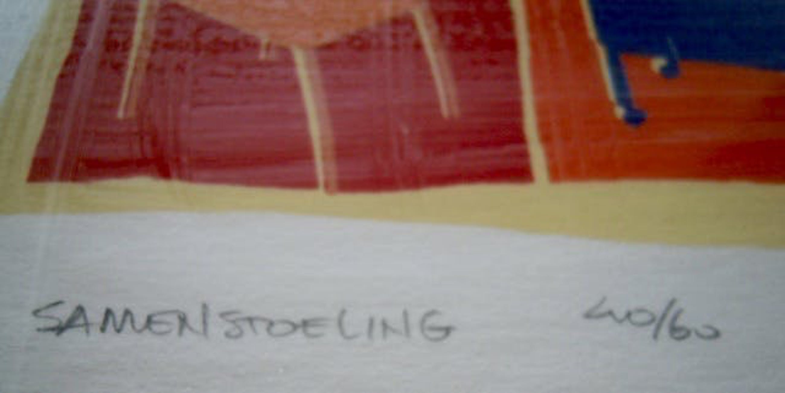 De zeefdruk is in opdracht gemaakt.Zie tekst achterkant lijst.