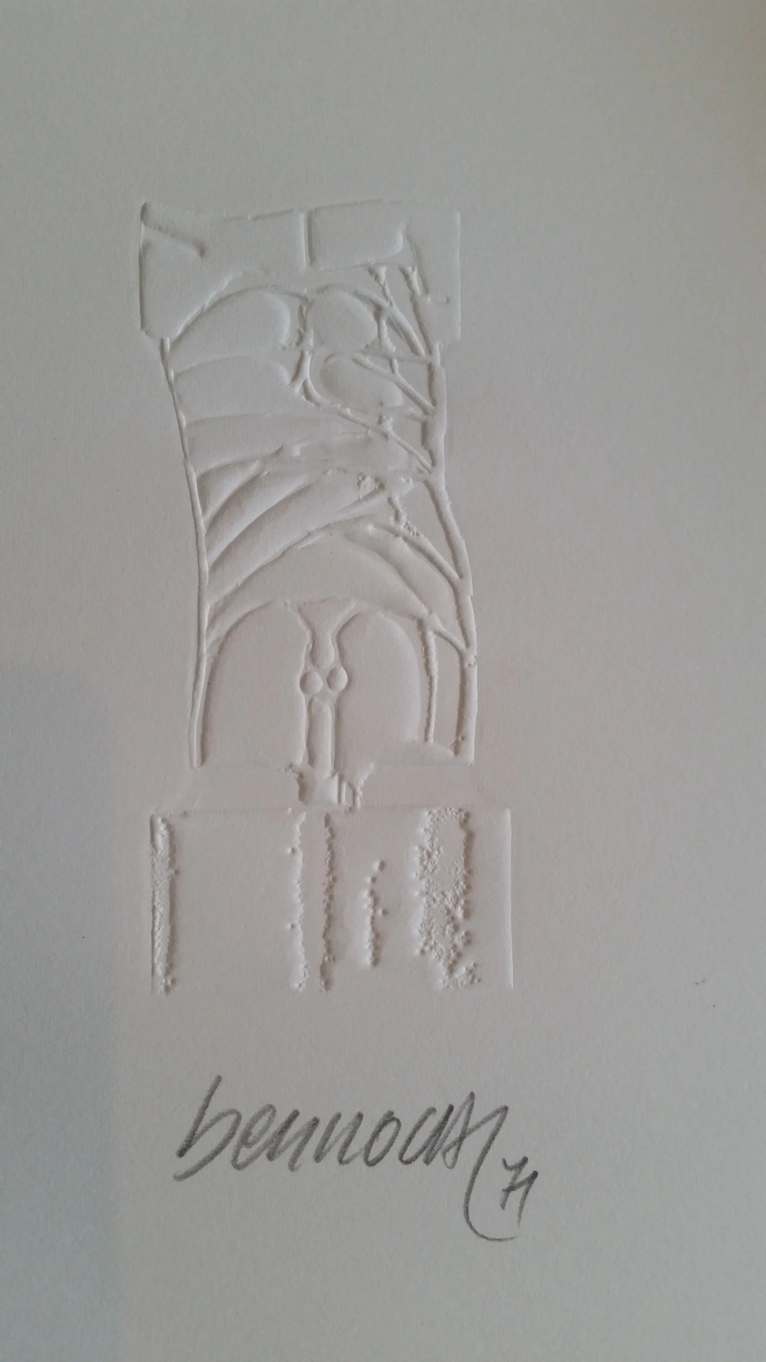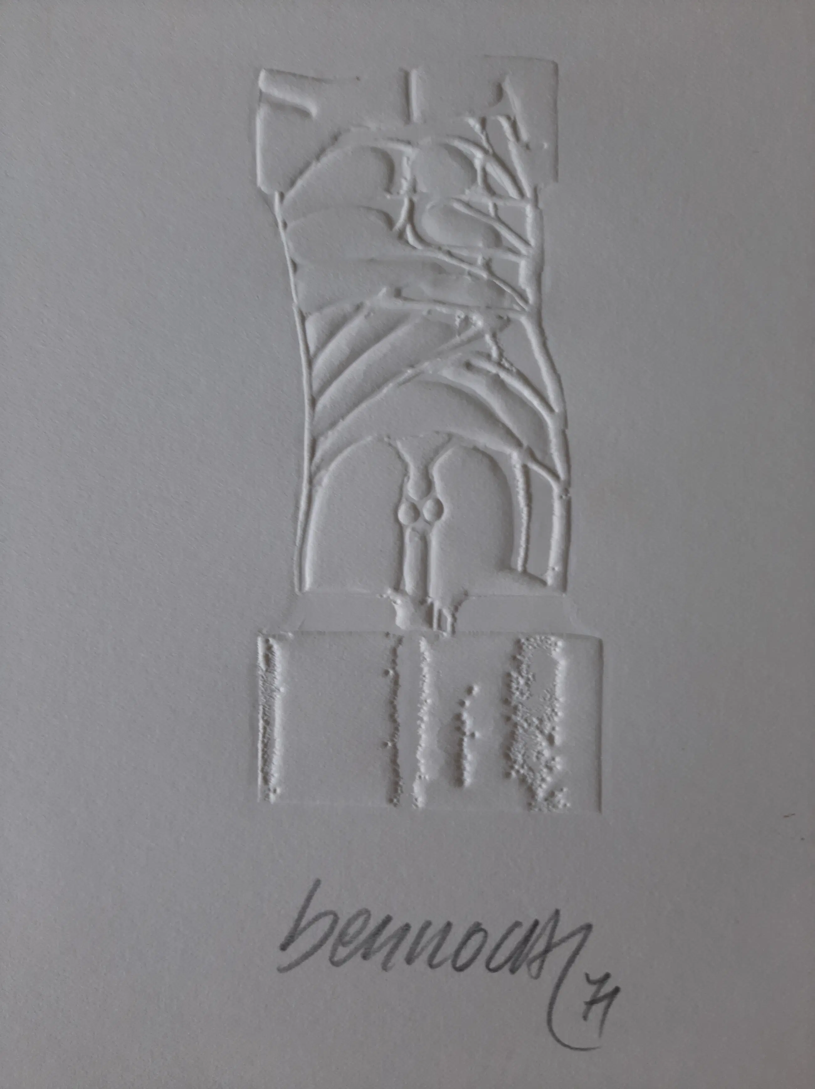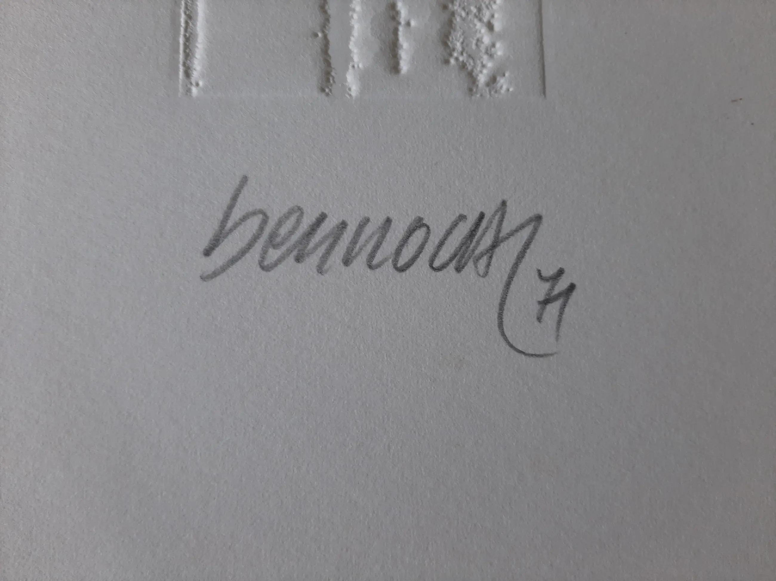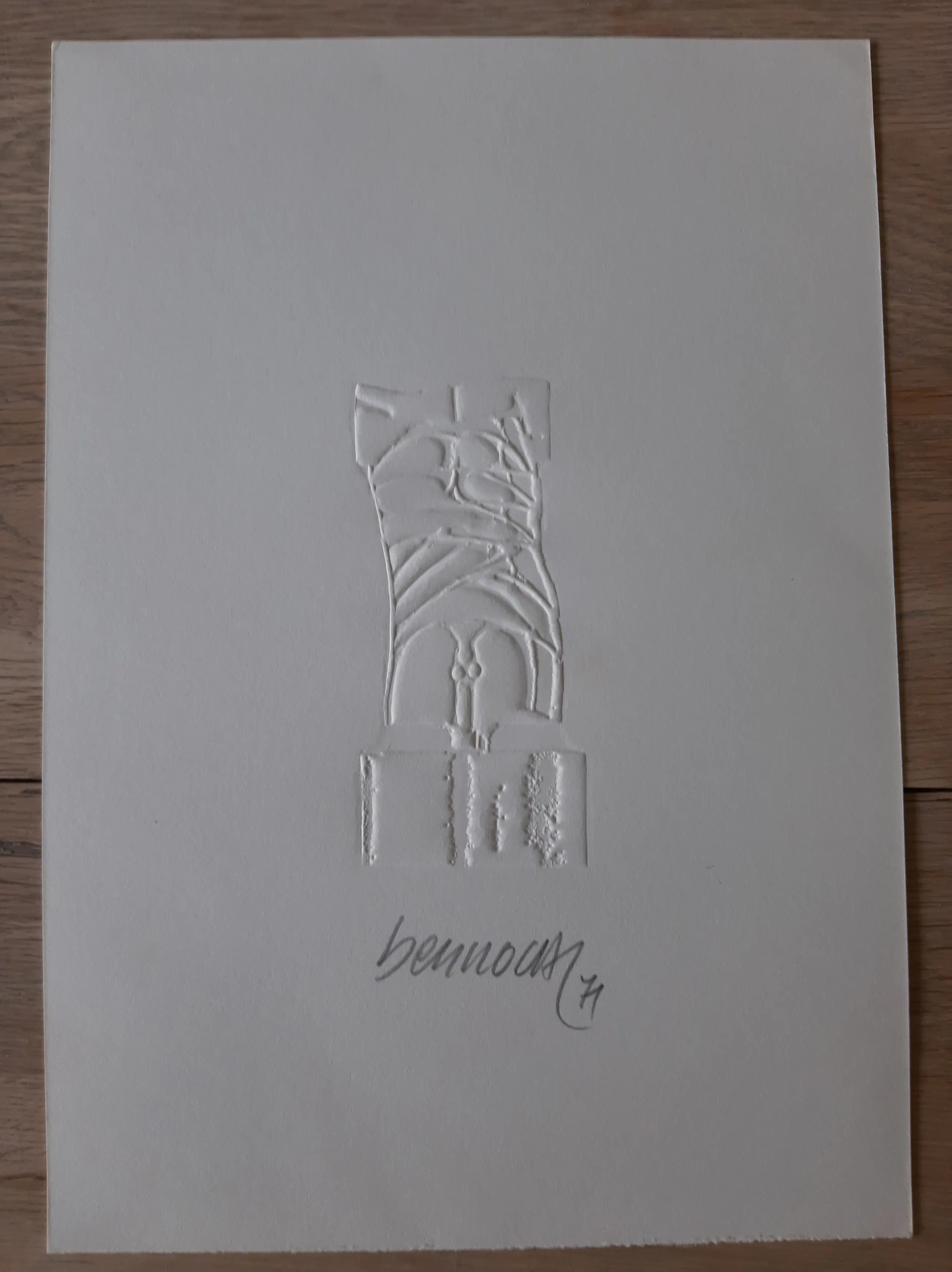 Fraaie blinddruk in reliëf van de Spaanse beeldhouwer Miguel Berrocal (Malaga 1933 - 2003).
