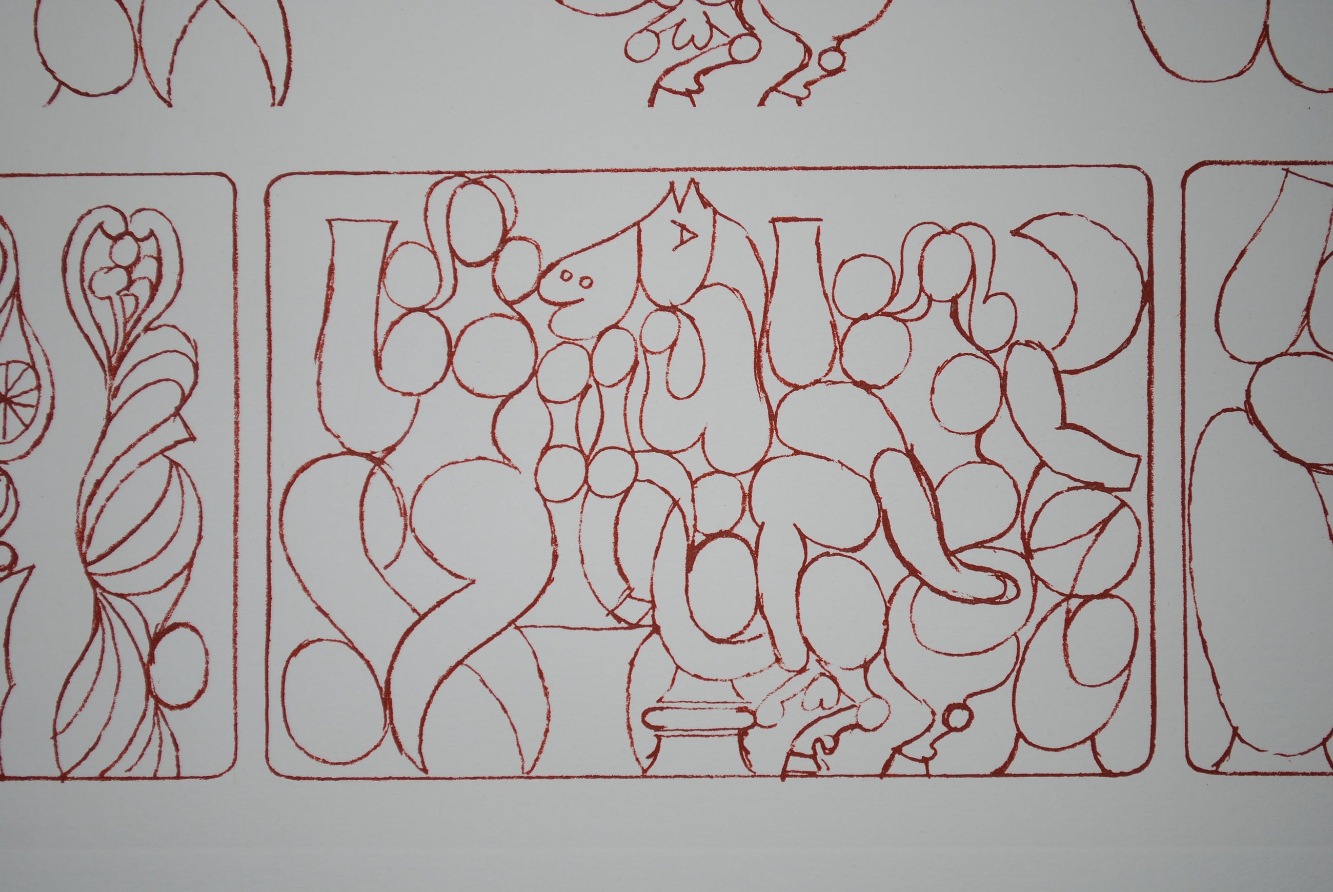 Miguel Berrocal - Hommage to Trasso - ets in rood - prent 190 - Verkocht