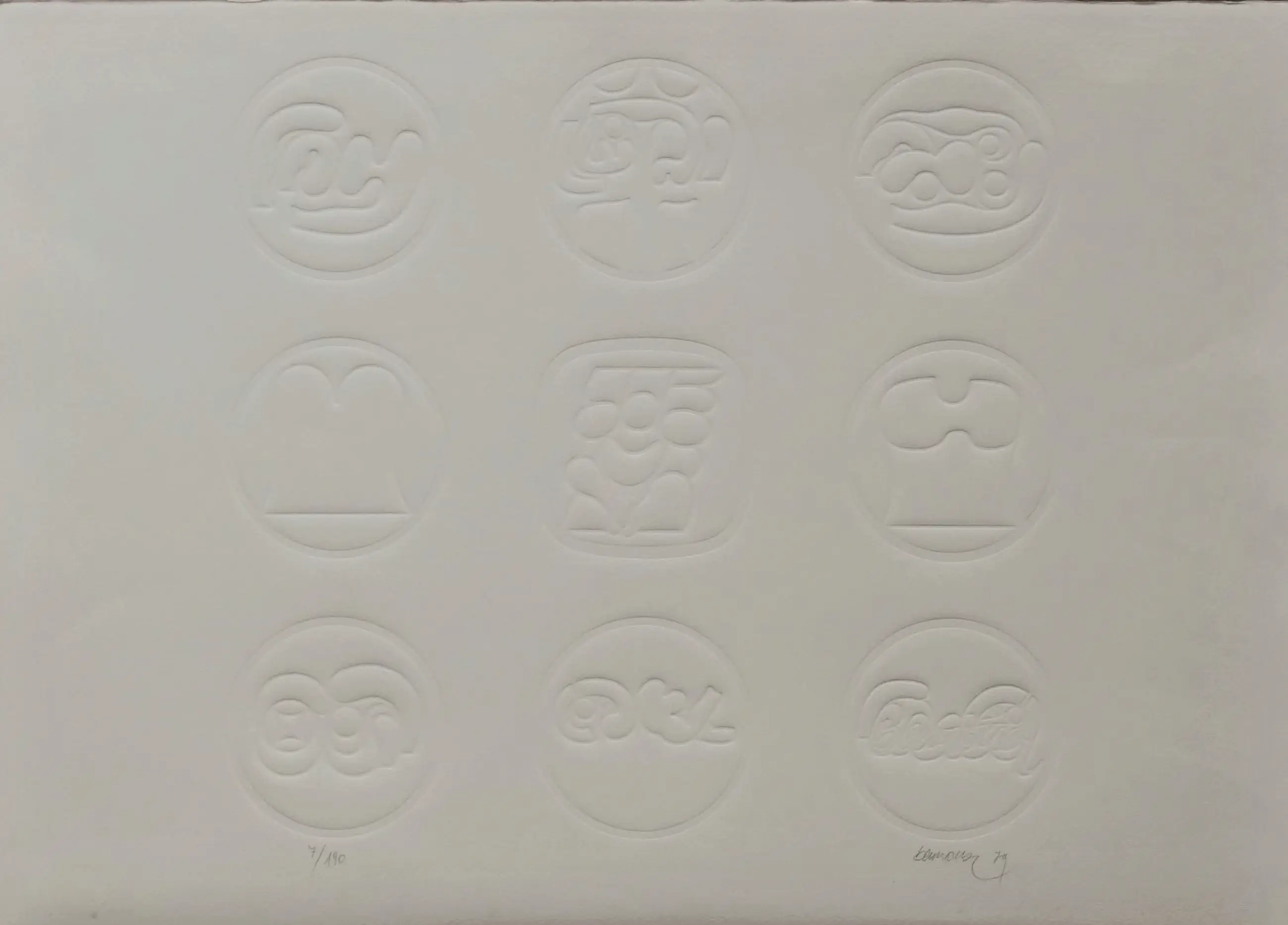 Prent 190 . Een jaarlijkse serie van grafische werken met een maximale oplage van 190. Dit is nummer 7. In potlood : 7/190 en Berrocal ,79