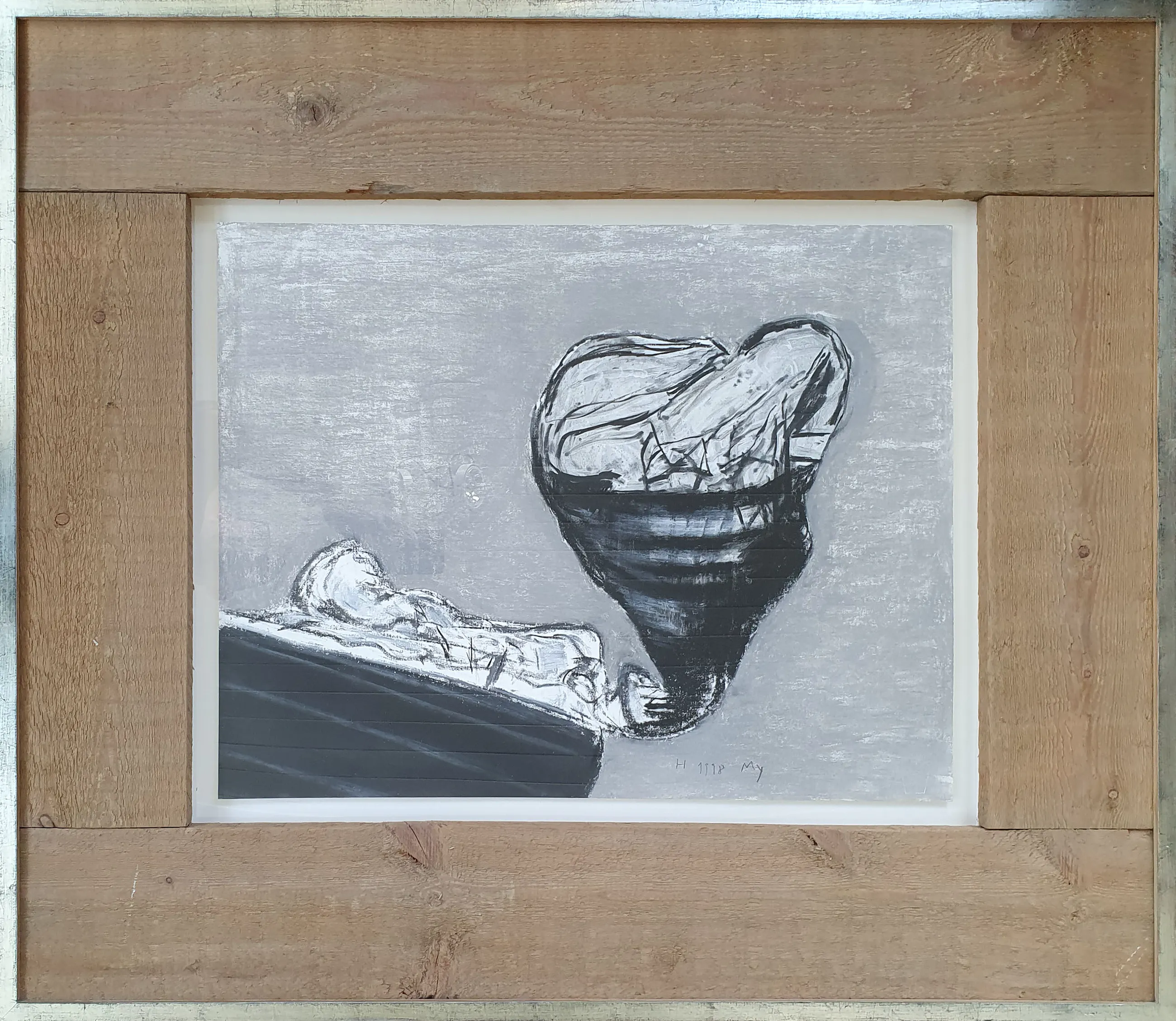 Kunstenaar: Miguel Ybanez Techniek: houtskool en pastel Oplage: Unicum Gesigneerd: Rechtsonder Afwerking: Ingelijst Afmeting zonder lijst (HxB): 50 x 64 cm Afmeting met lijst (HxB): 86 x 101 cm Conditie werk: Conditie lijst: Referentie: 00894
