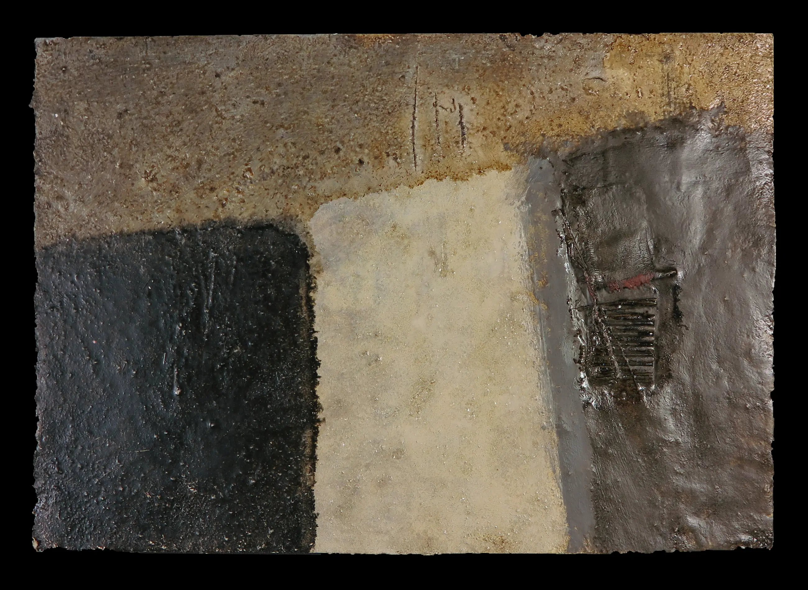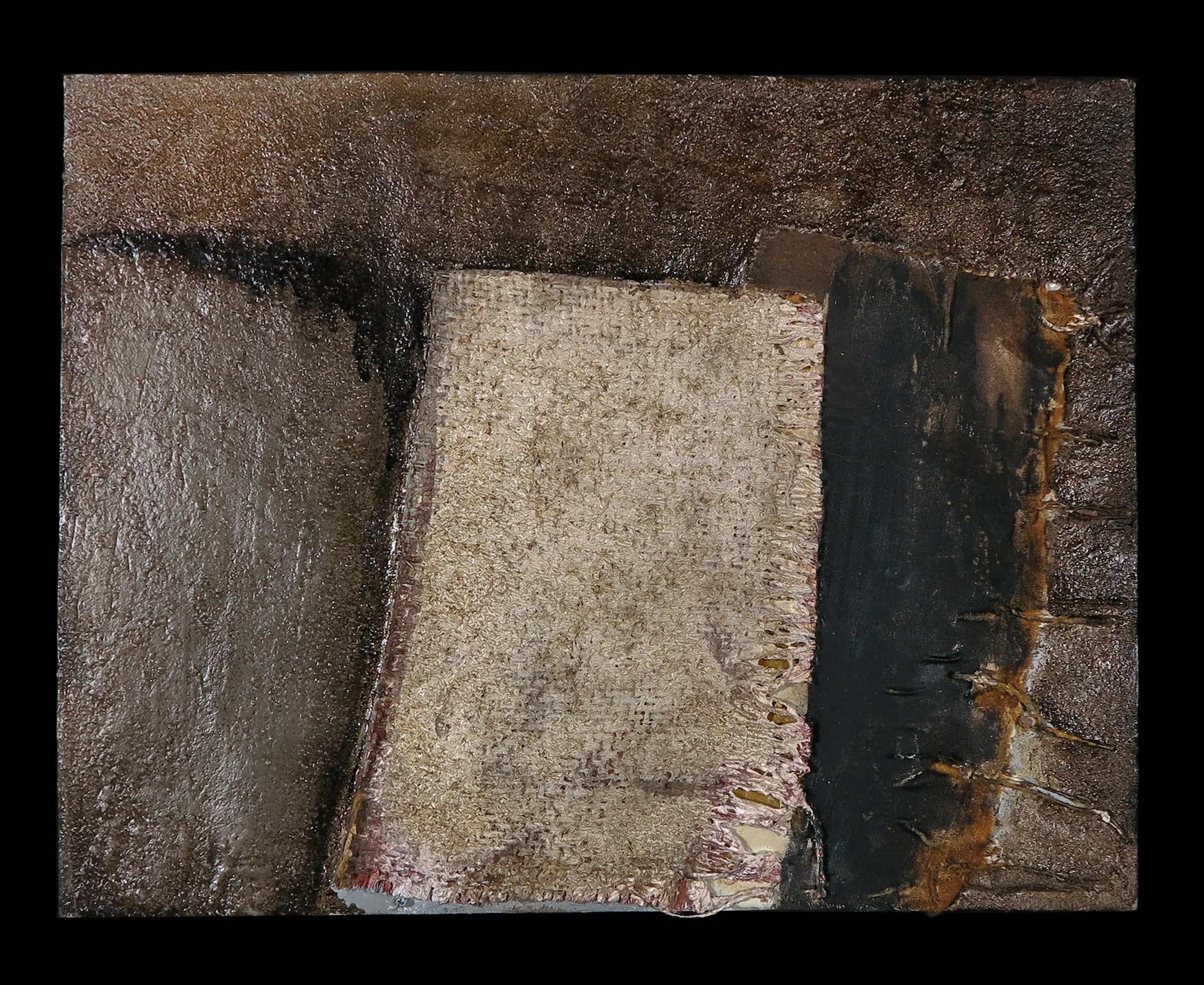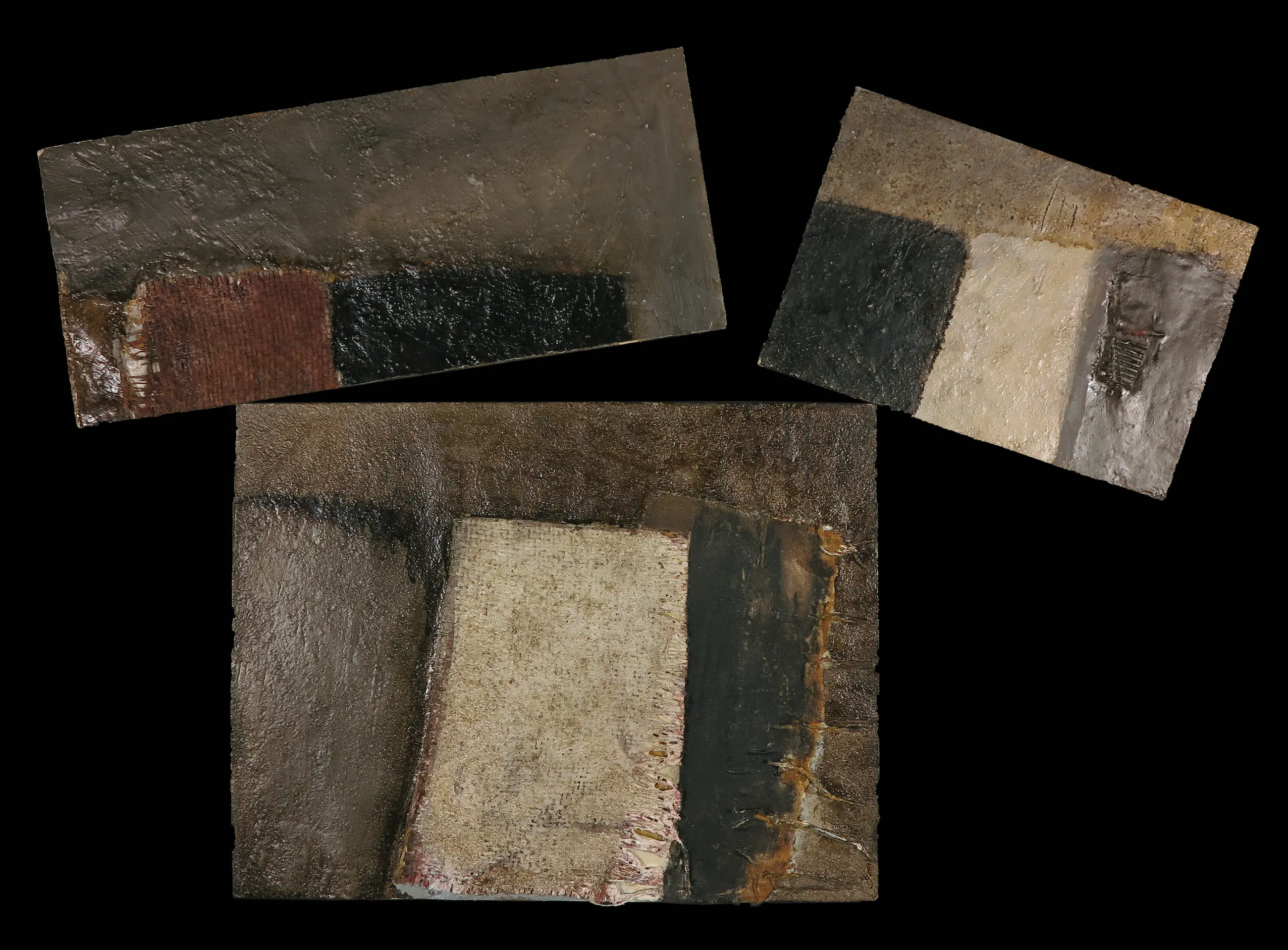 Drie werken van Servische kunstenaar Mihajlo Petkovic. Petkovic heeft bij deze werken gebruik gemaakt van meerdere (gewoven) materialen waardoor ze aanzienlijk reliëf hebben (zie foto). Hangesigneerd door de kunstenaar op de achterkant van het werk.