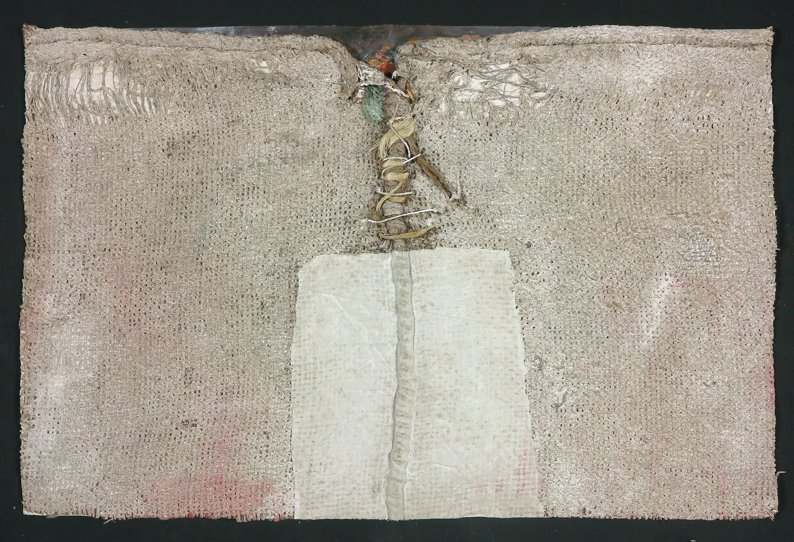 Twee werken van Servische kunstenaar Mihajlo Petkovic. Petkovic heeft bij deze werken gebruik gemaakt van meerdere (gewoven) materialen waardoor ze aanzienlijk reliëf hebben (zie foto). Hangesigneerd door de kunstenaar op de achterkant van het werk.