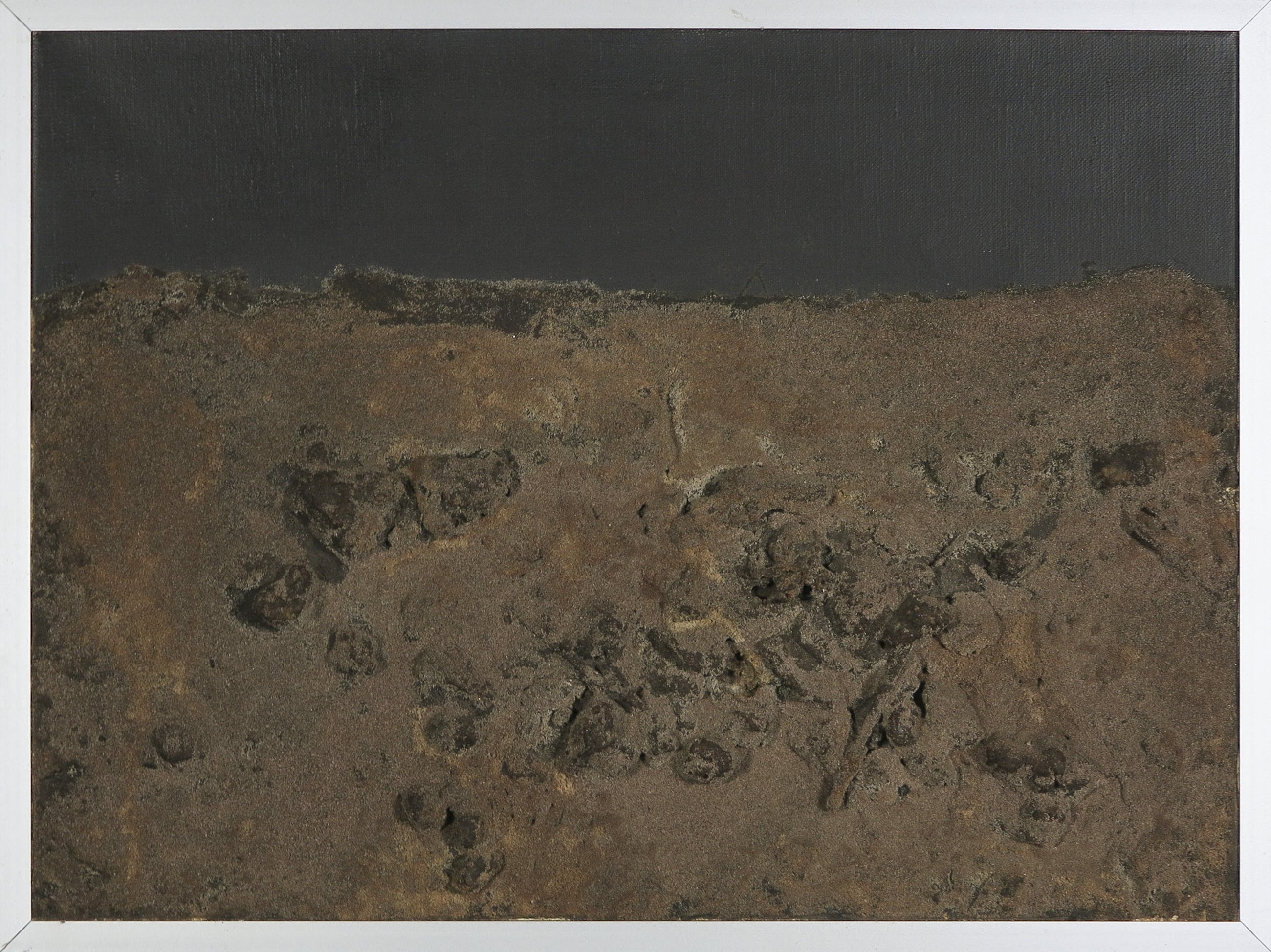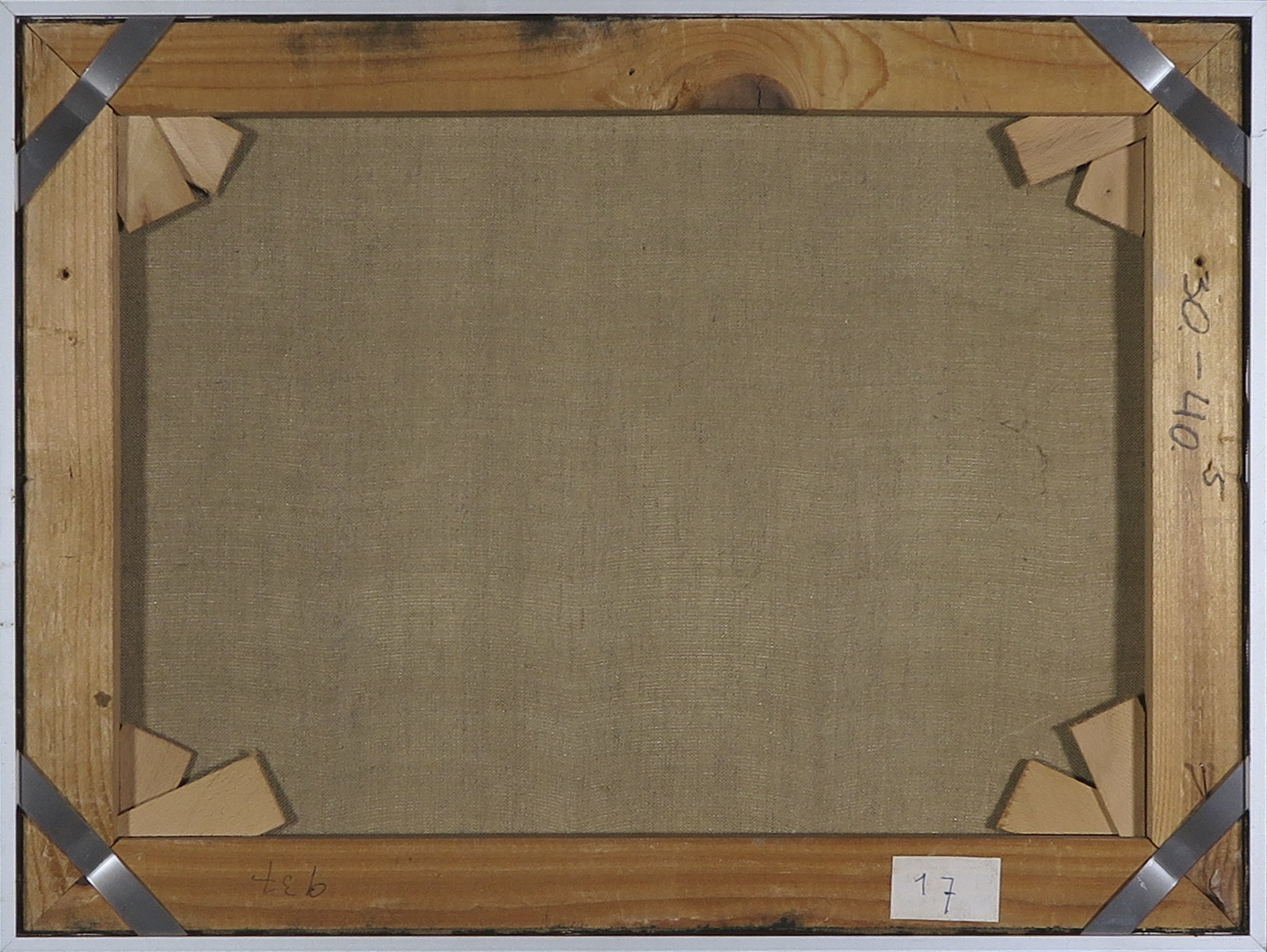Wat zeer lichte vervorming van het doek (gedeukt), door gewicht van materiaal. In aluminium lijst. | |||||