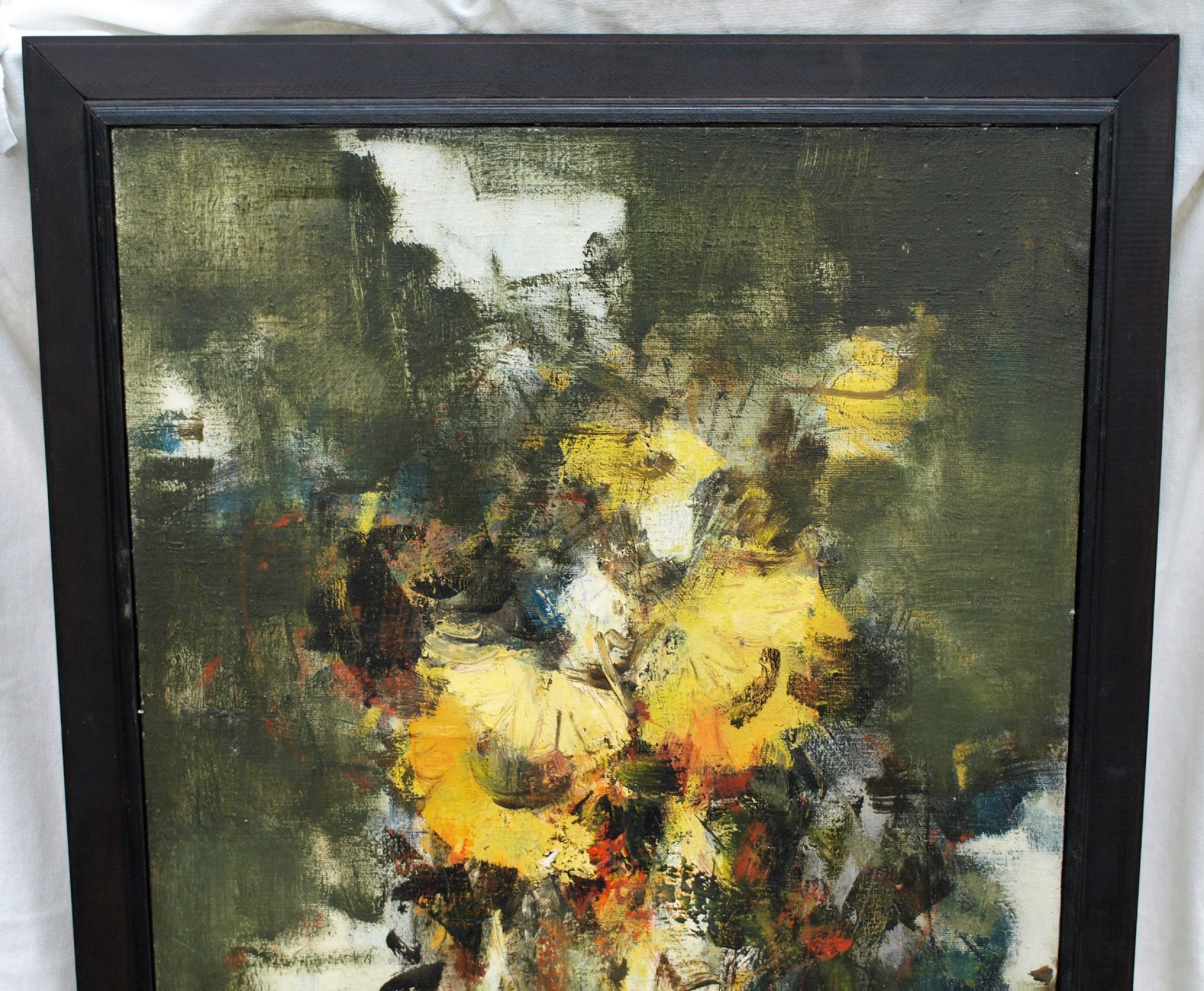 Een groot ingelijst olieverfschilderij van de Tsjechische kunstenaar Milan Martinec (1942-), getiteld ‘Slunečnice’ (Zonnebloemen).