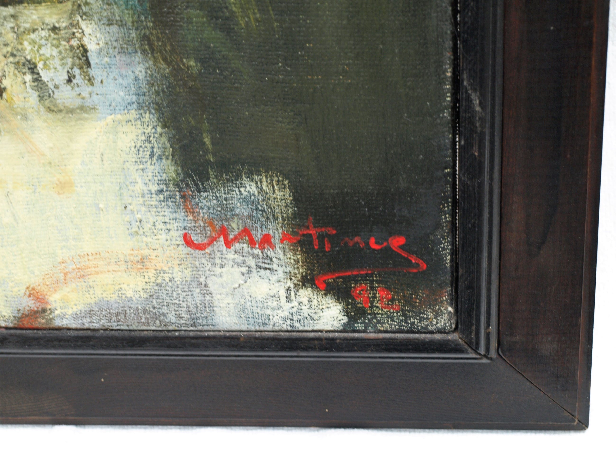 -Olieverf op doek, gespannen op een houten spieraam en ingelijst in de originele houten lijst.