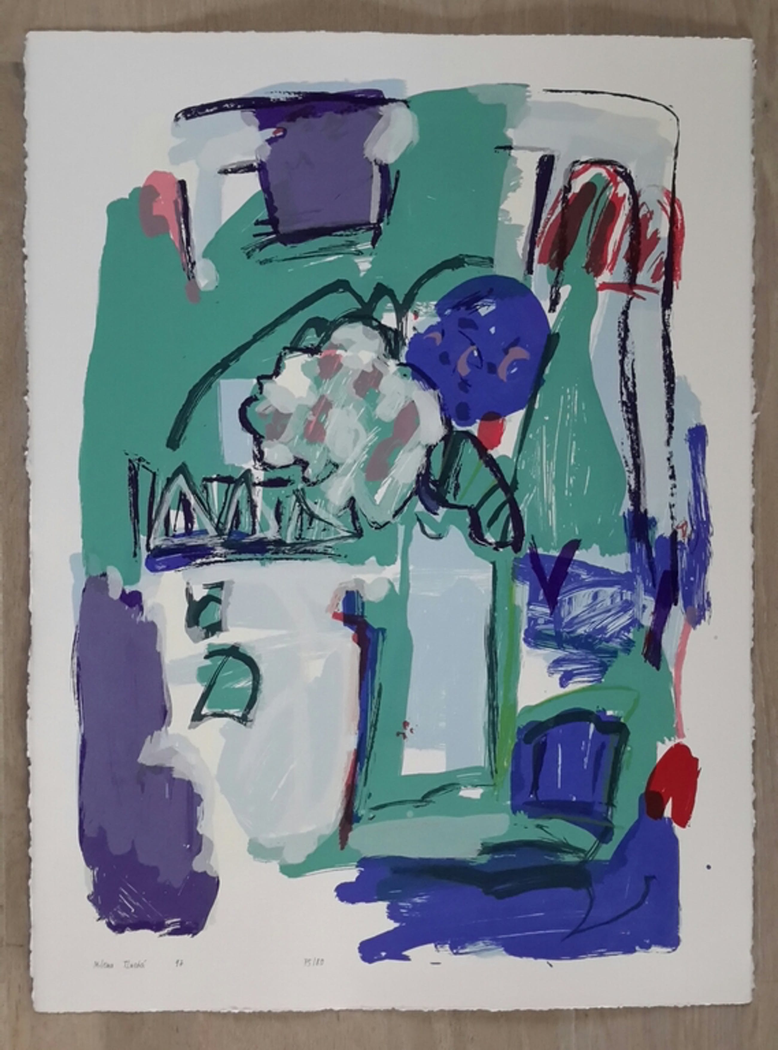 Mooie, handvervaardigde zeefdruk van Milena Tlusta. De prent dateert uit 1997 en is gemaakt in een oplage van 80. Dit betreft nummer 75. Gesigneerd en genummerd door de kunstenaar.