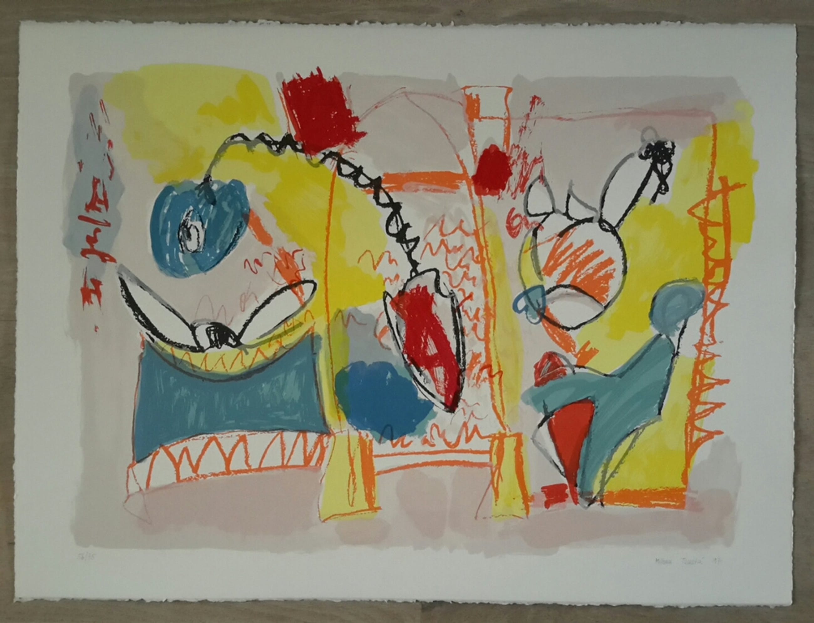 Deze zeefdruk is gemaakt in 1997 in een oplage van 75. Dit is nummer 56.