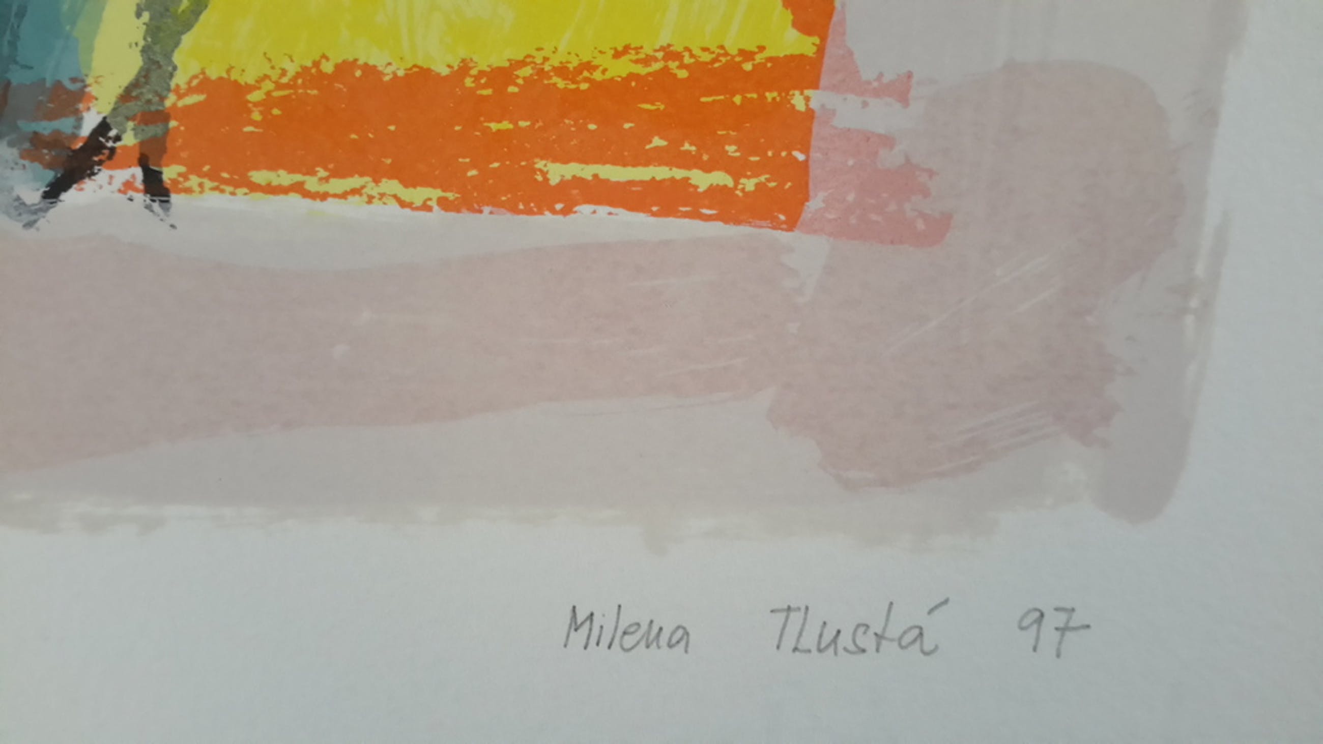 Handvervaardigde, mooi gelaagde zeefdruk van Milena Tlustá. Gedrukt op zuurvrij, stevig papier met schepranden.