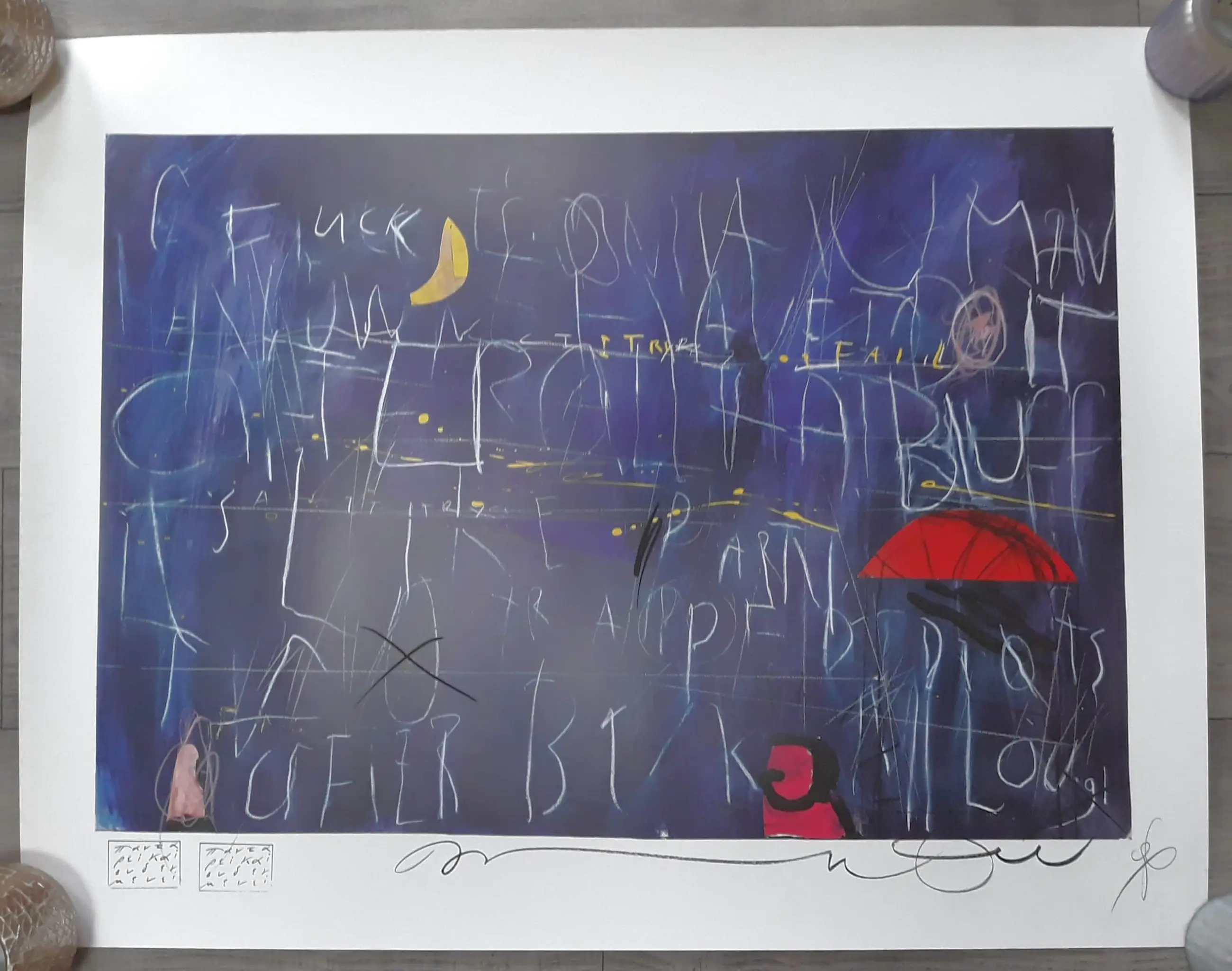 Litho/schilderij in beperkte oplage gesigneerd en met krijt uniek bewerkt door Milou zelf.