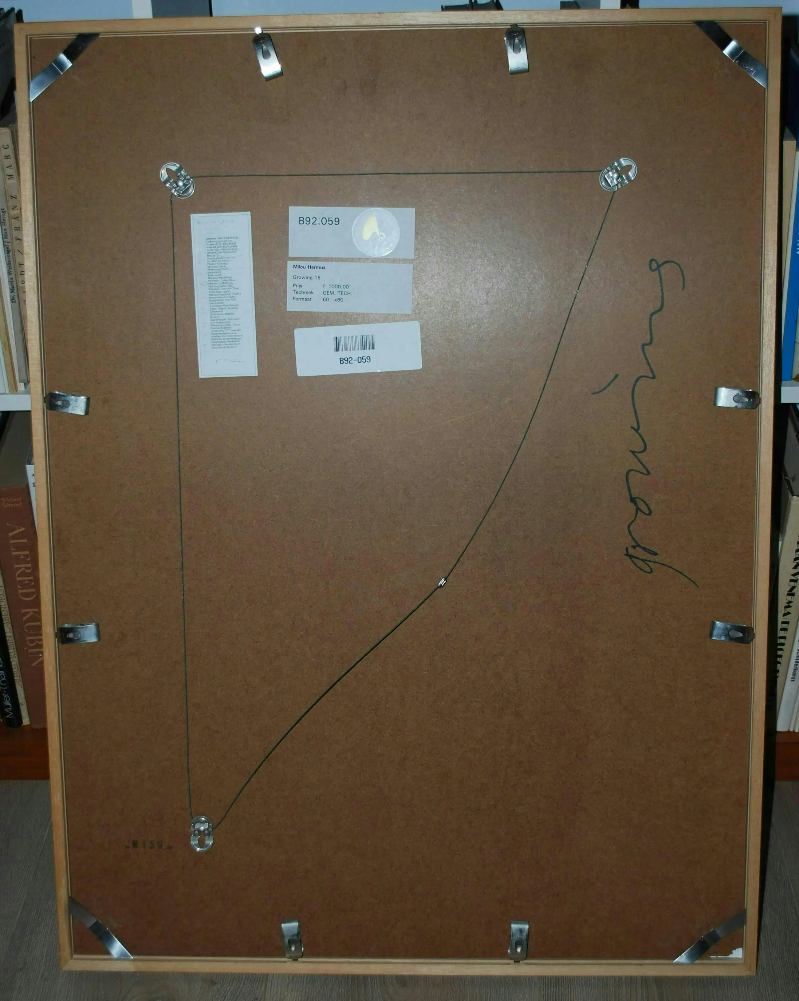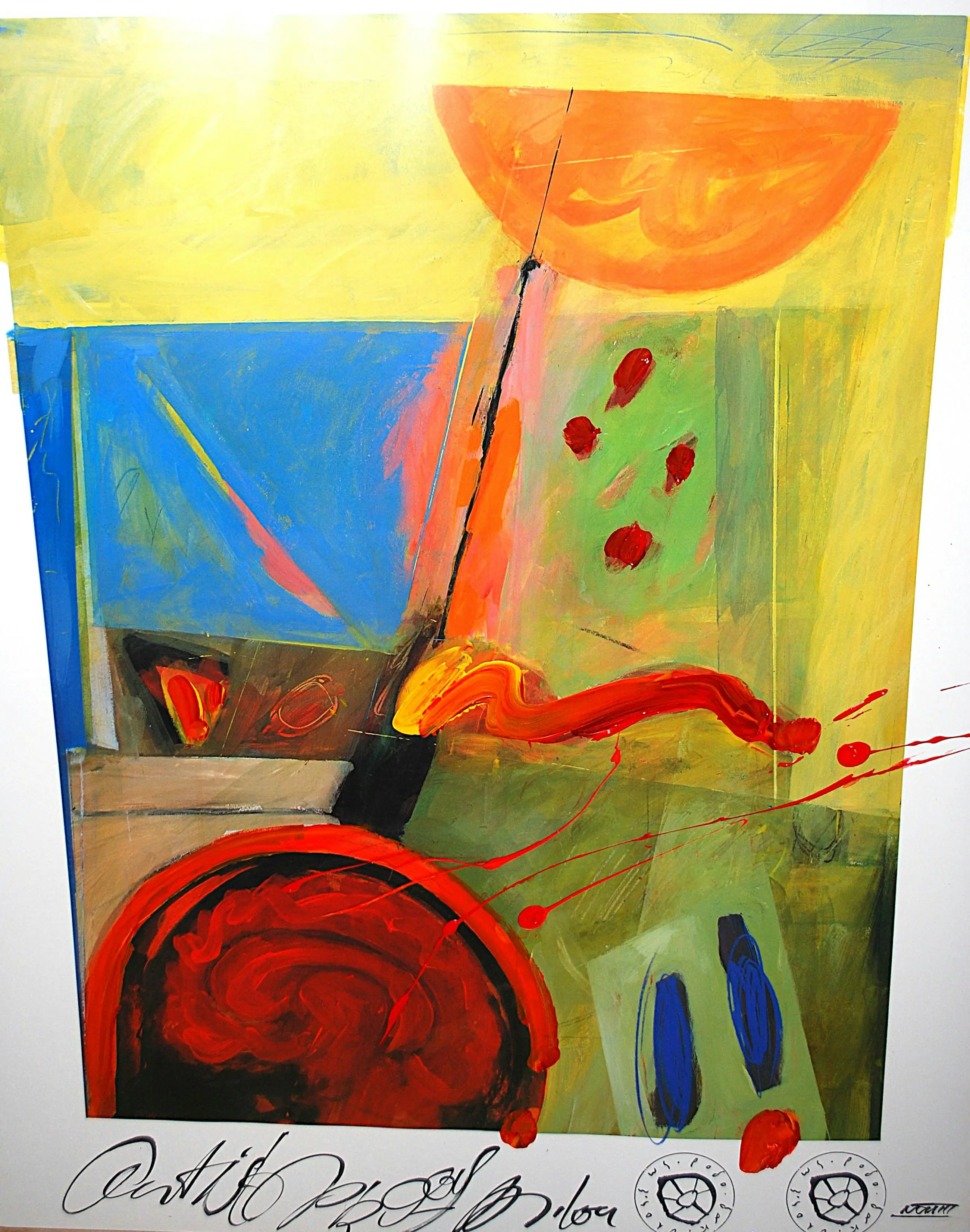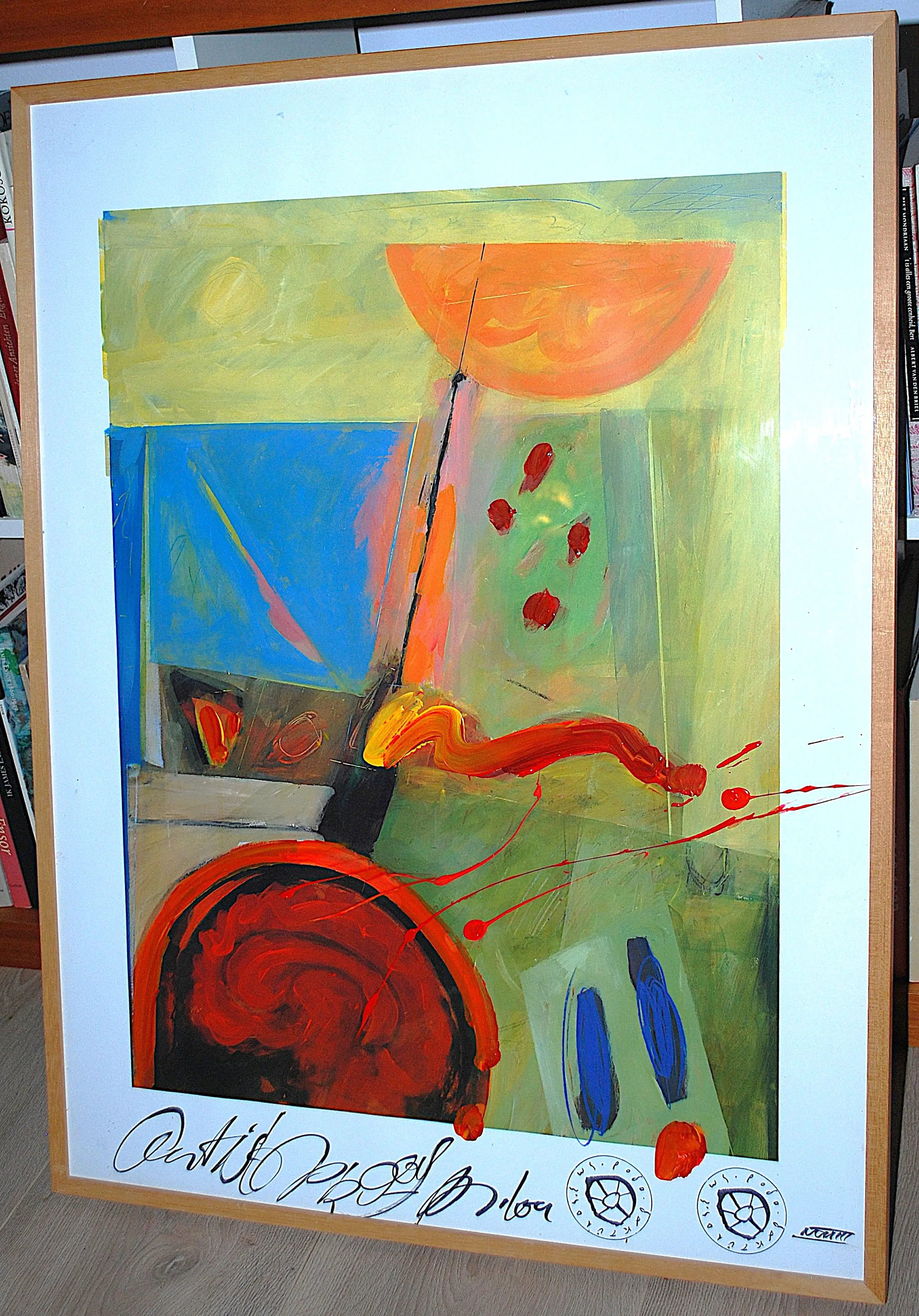 Acrylverf op offset. Handgesigneerd. Nieuwwaarde destijds FL. 1000. Achter glas in een houten Barth lijst. Let op: