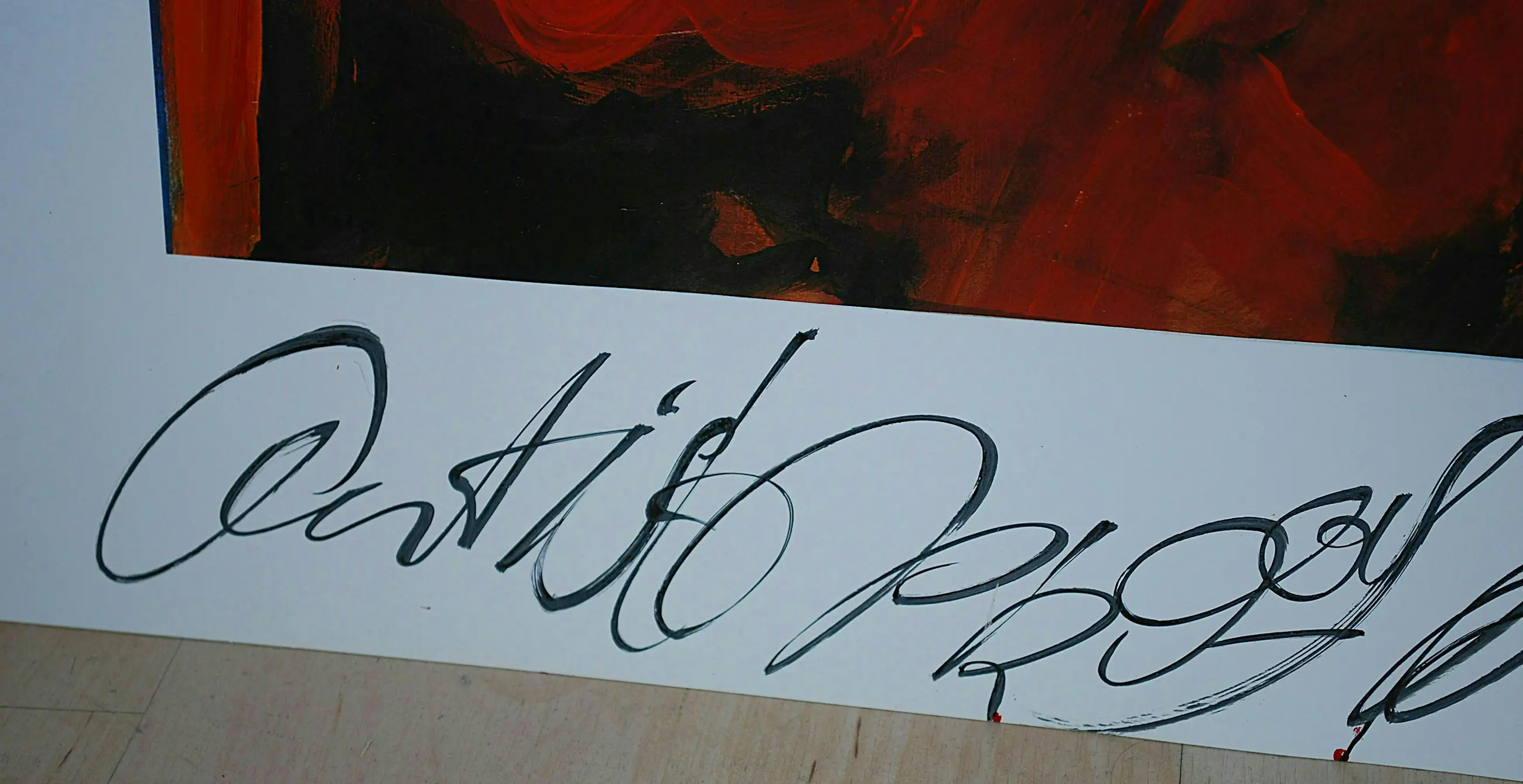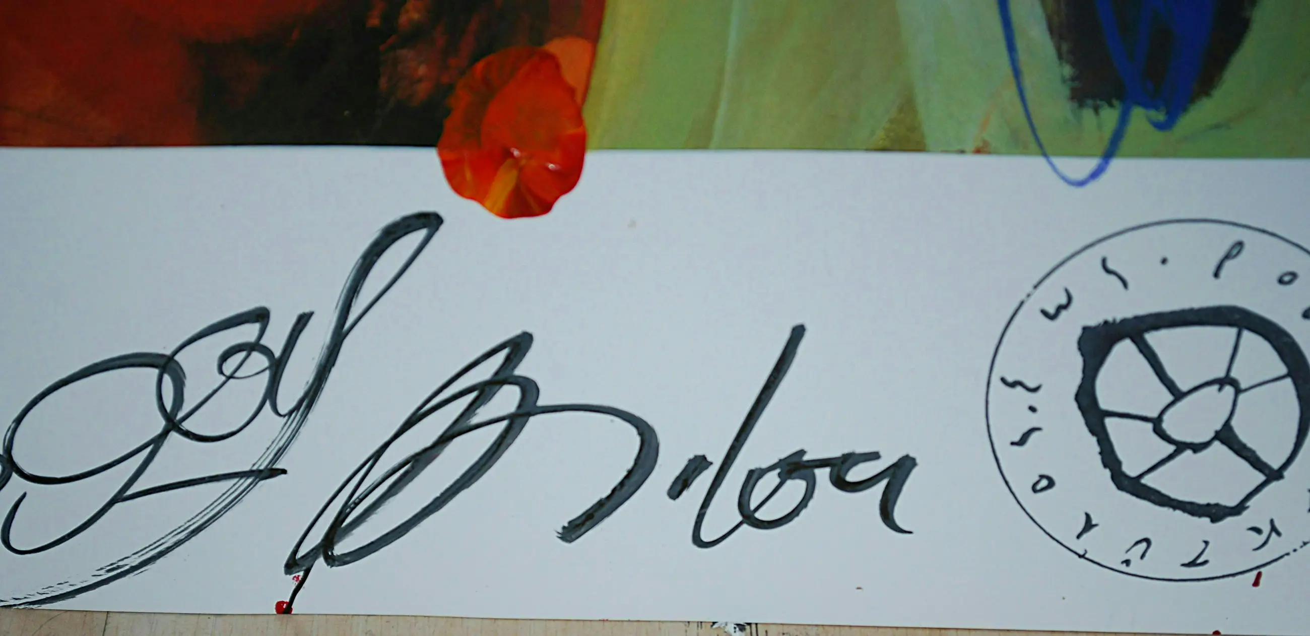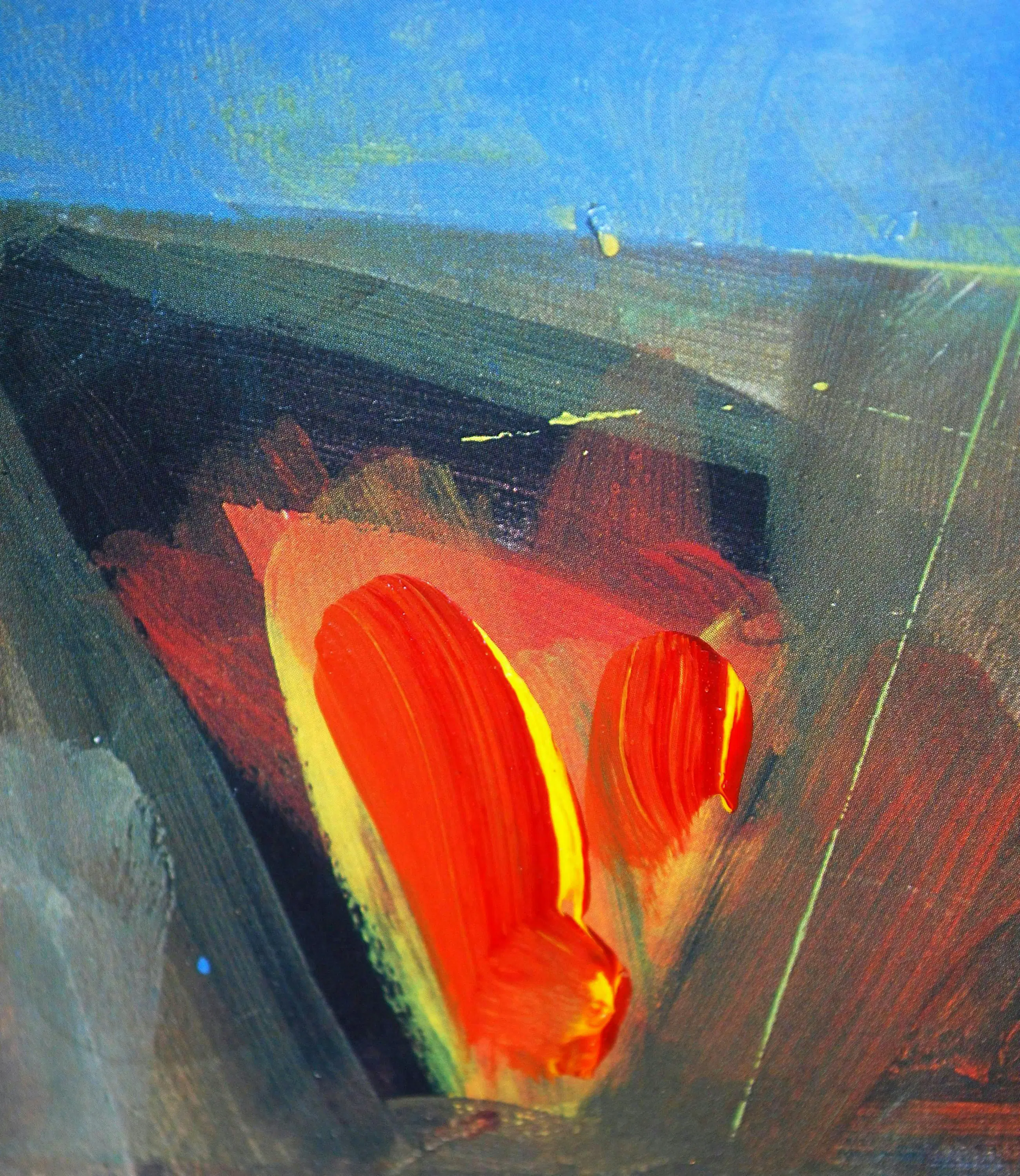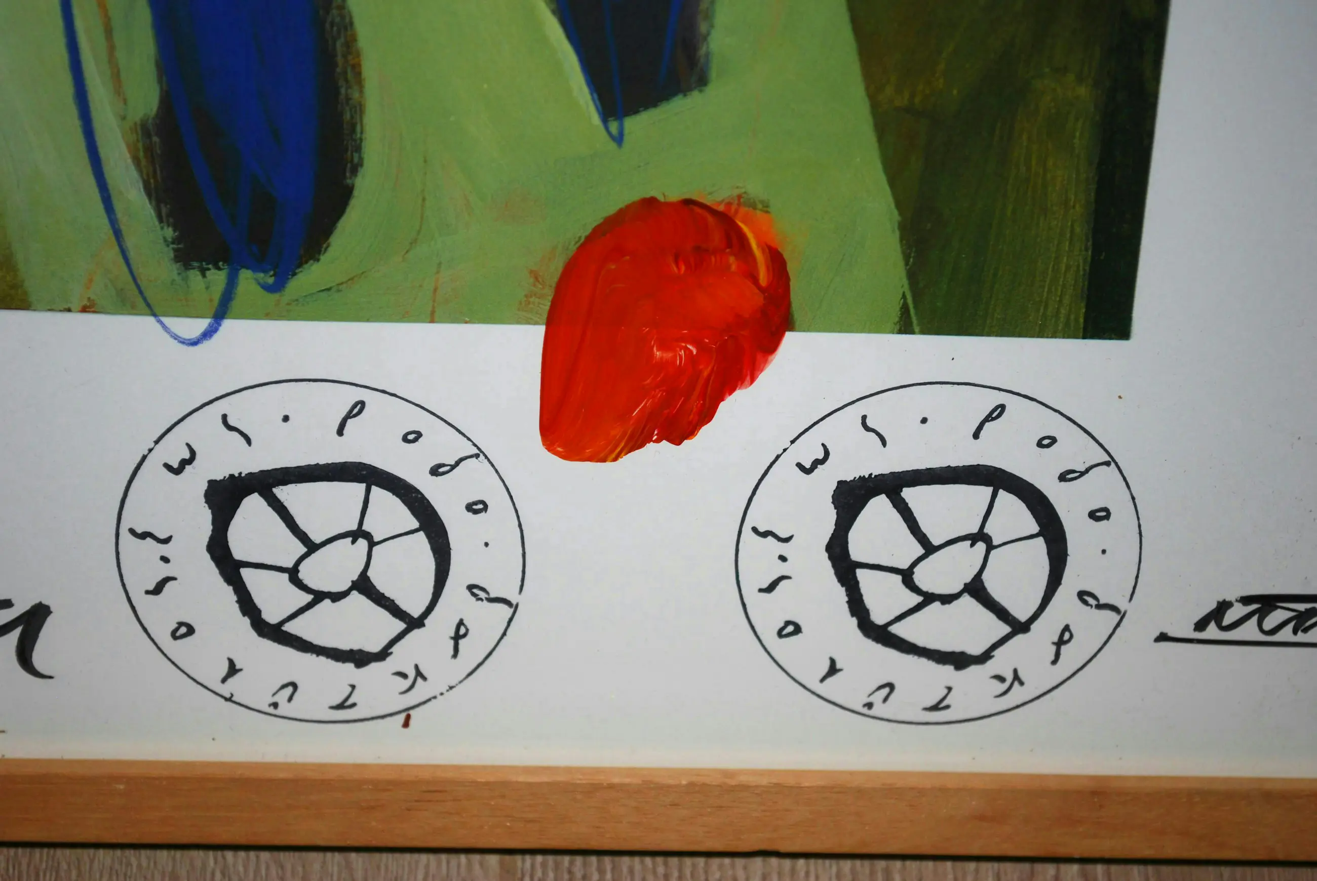 Acrylverf op offset. Handgesigneerd. Nieuwwaarde destijds FL. 1000. Achter glas in een houten Barth lijst. Let op:
