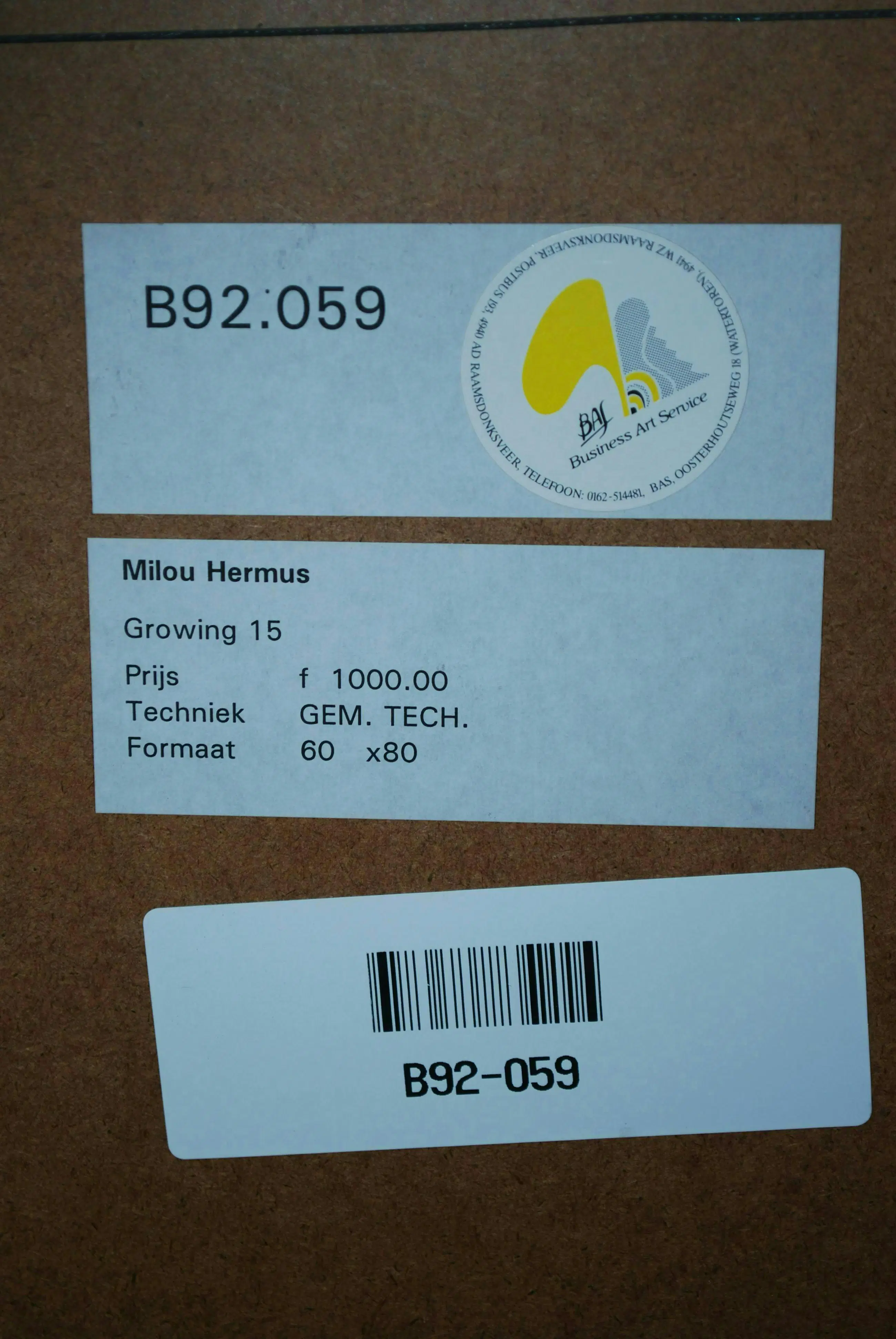 Het werk is af te halen op locatie. Als koper dient u zelf verpakkingsmateriaal mee te nemen. De locatie is: Amsterdam, Nederland
