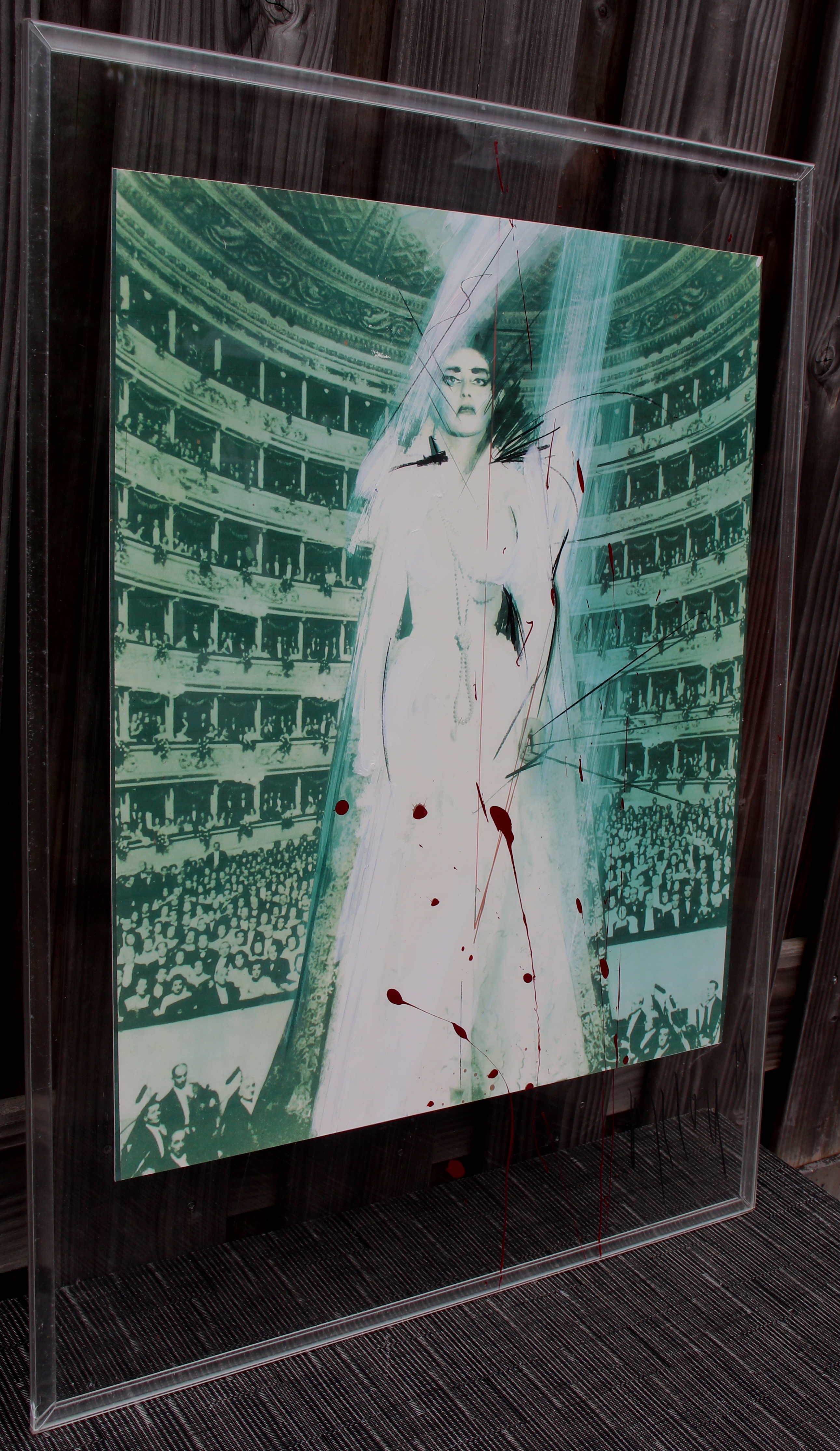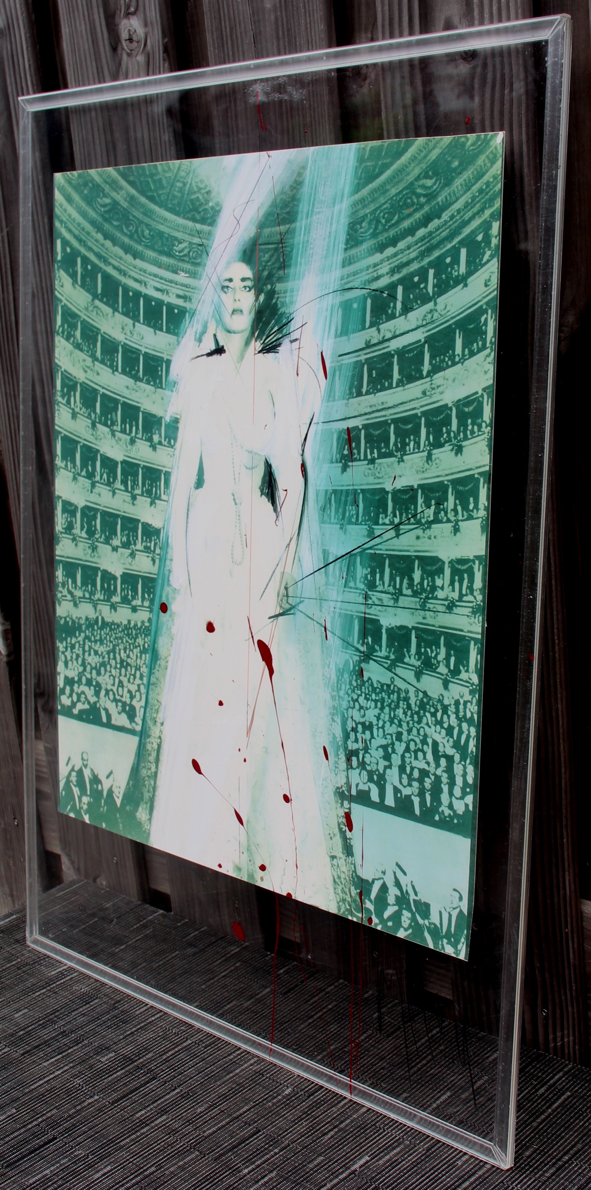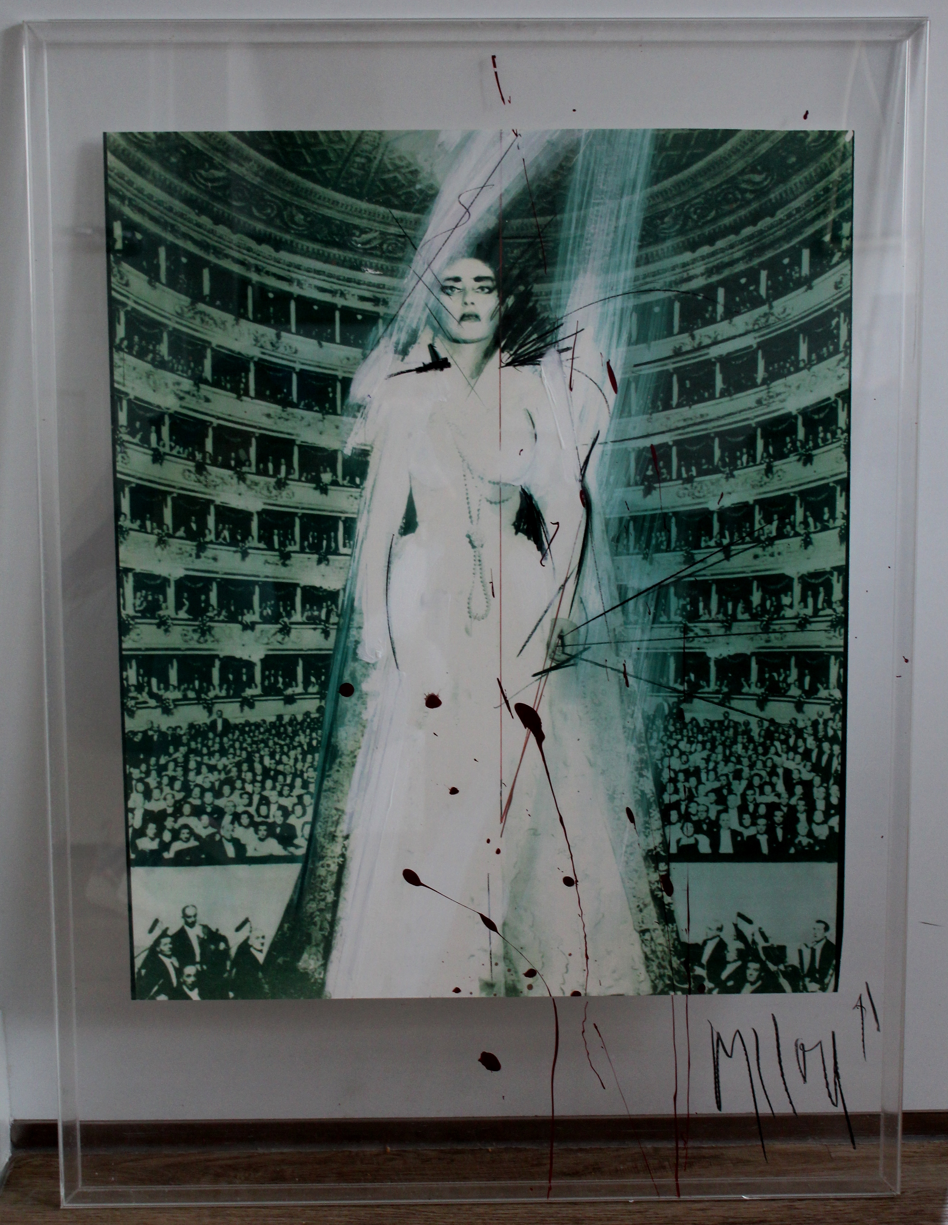 Litho, uitgevoerd op papier, in perspex lijst, van Milou Hermes. Voorstelling van Maria Callas, bij de uitvoering van de opera "Lucia di Lammermoor" in la Scala Milaan. Jaar: 1994. Afmetingen incl lijst: H82 x b60cm. Afmetingen voorstelling: H60 x b50cm. Het werk is rechts onderaan, gesigneerd door de kunstenares, met "Milou".