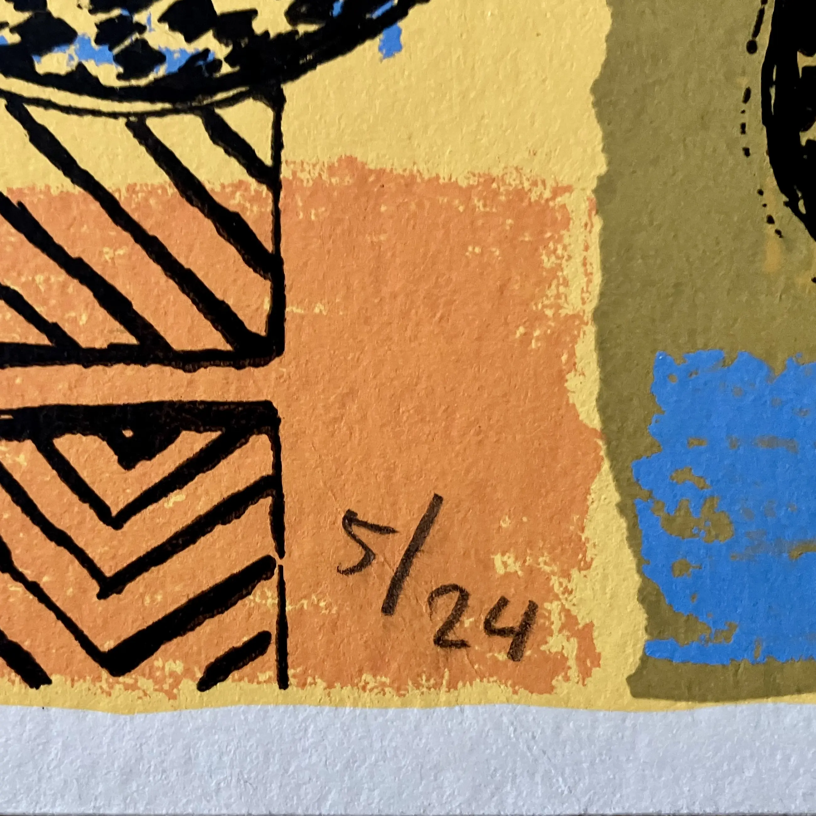 Kleurrijk en sfeervol, werk van Milou Honig (Amsterdam, 1947), grafisch kunstenaar en schilder. Dit is nummer 5 uit een oplage van 24.