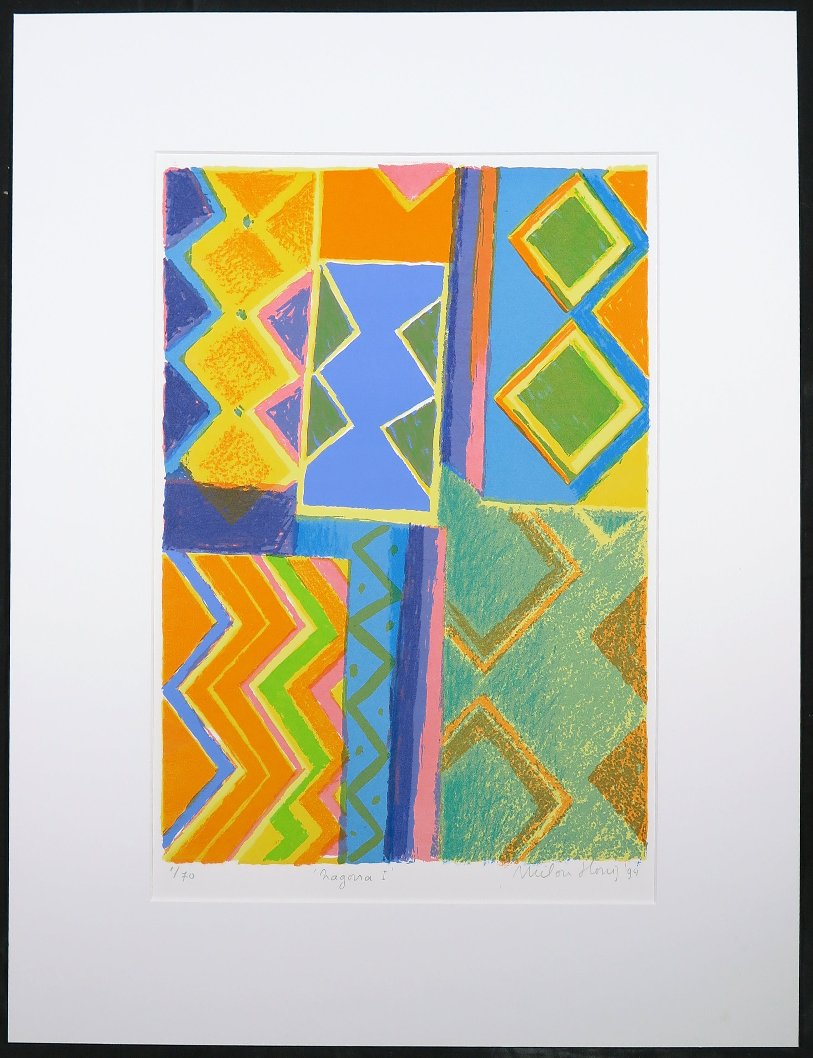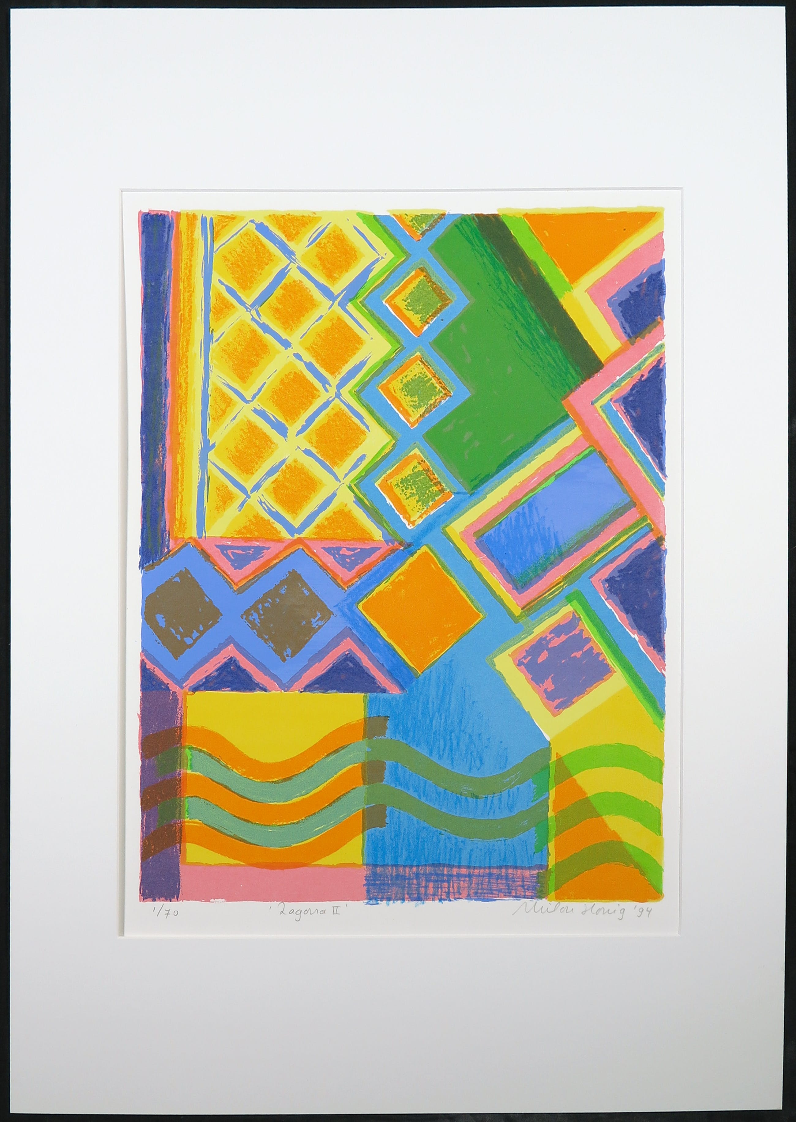 De zeefdrukken Zagorra I en Zagorra IV hebben een andere passe-partout maat. De buitenmaat is: 65 x 55 cm.