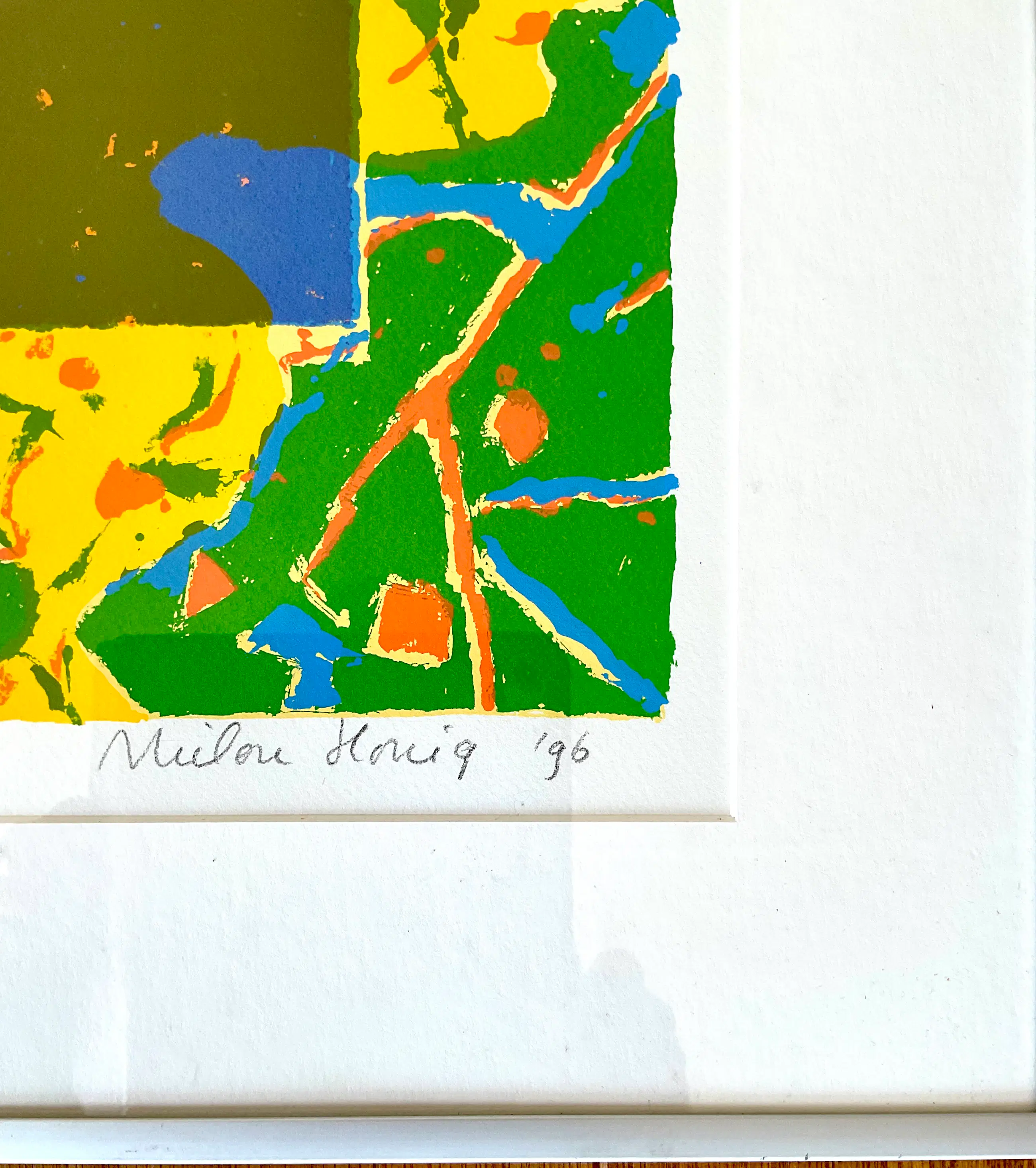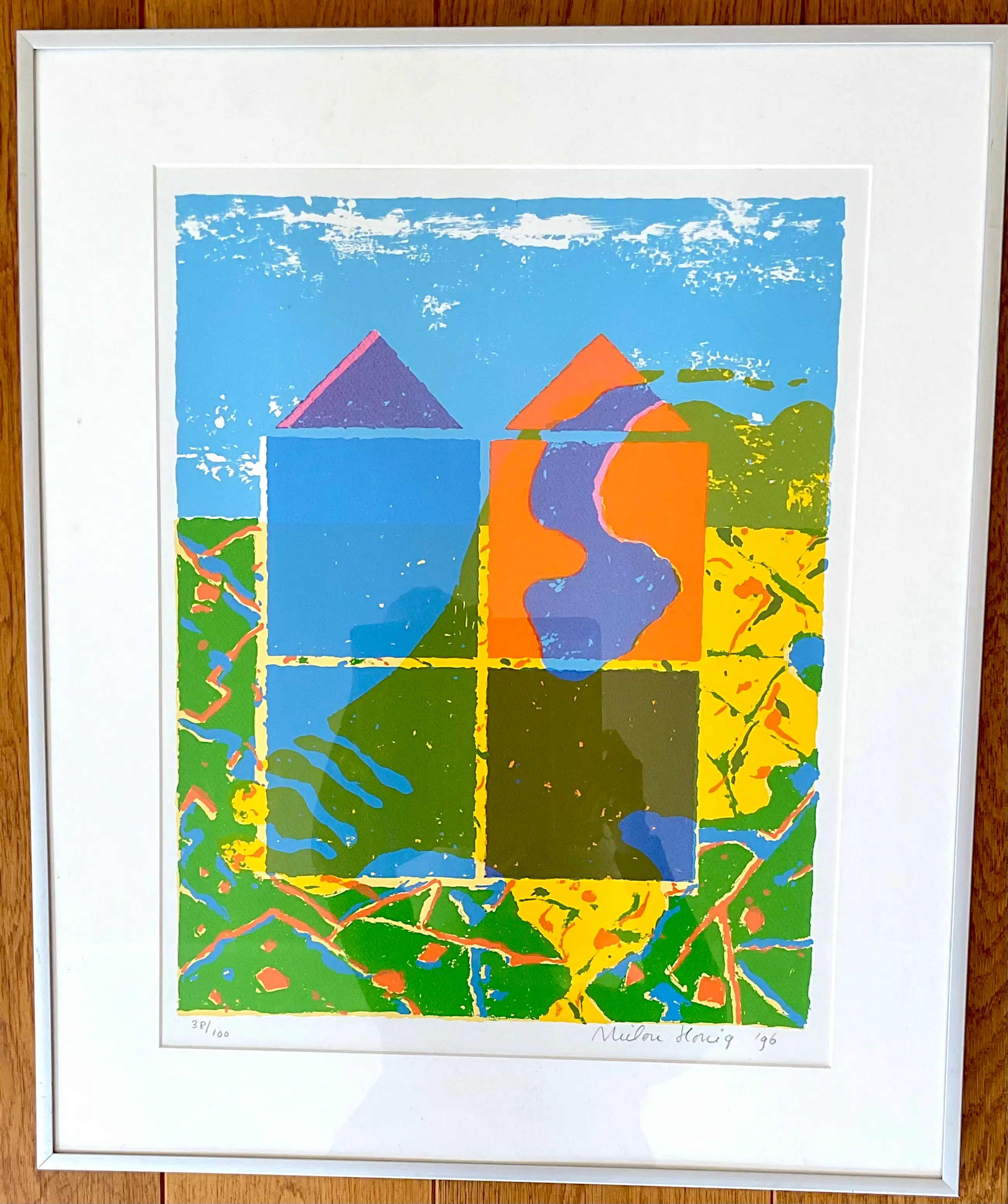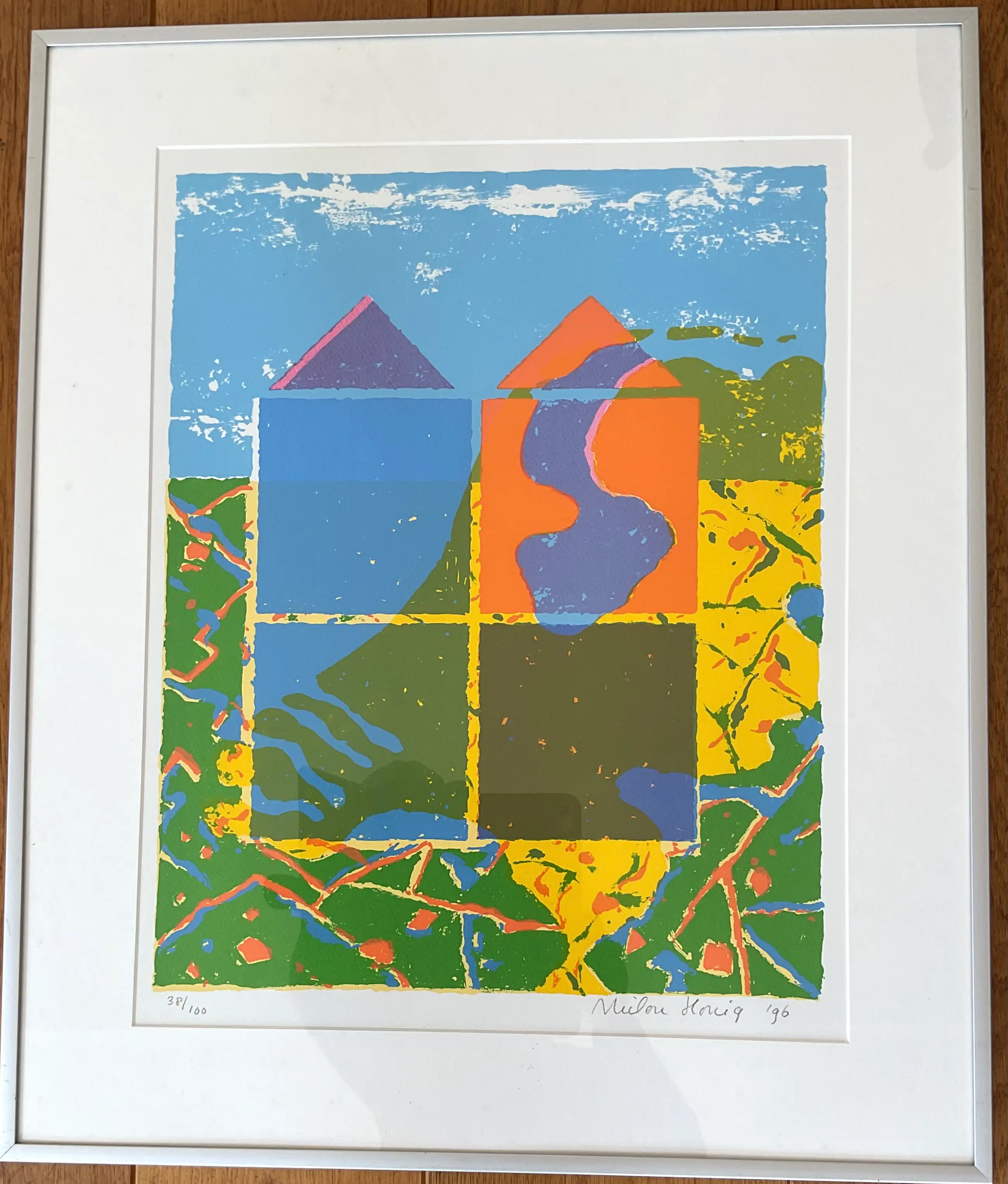 Milou Honig Vrolijke zeefdruk Oplage 100, waarvan deze nummer 36 Met passe-partout in blank metalen lijst Afmetingen 61x51 cm Conditie uitstekend Door glas gefotografeerd Wordt aangetekend verzonden
