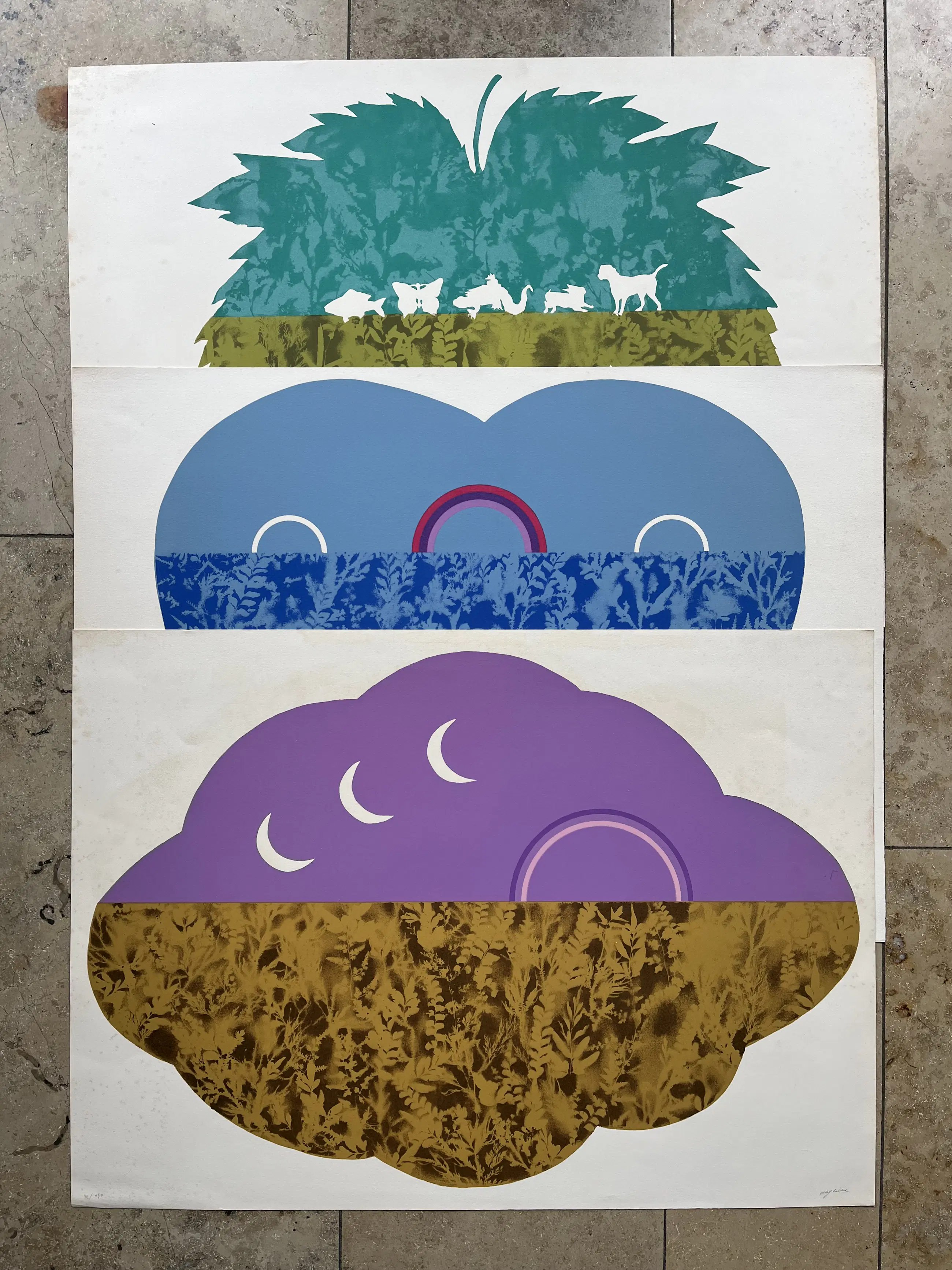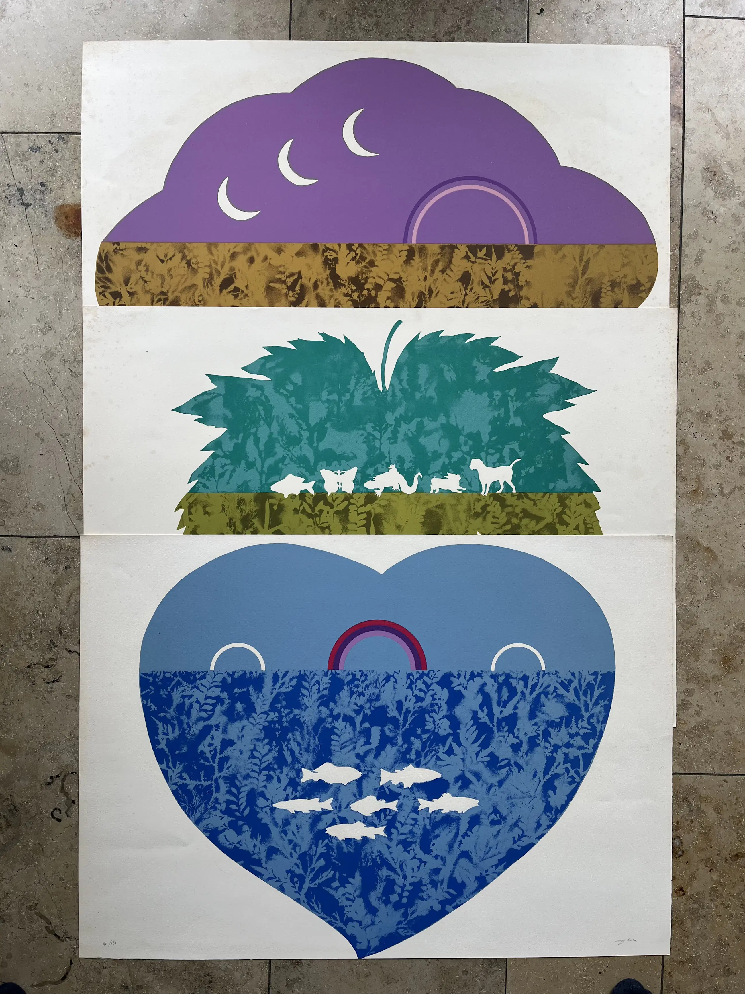 Lot van 3 gesigneerde zeefdrukken in kleur door Milvia Maglione