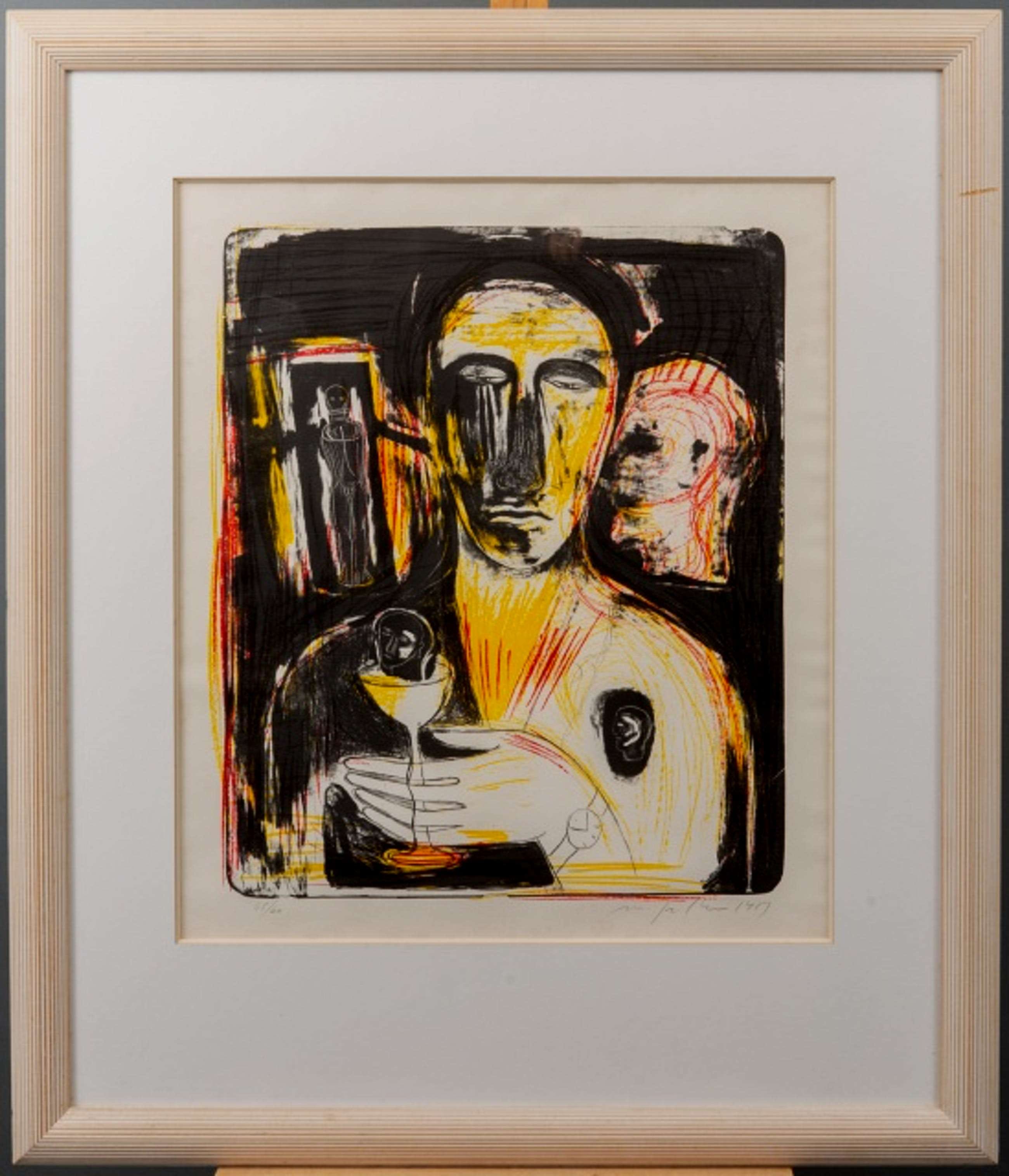 Grote ingelijste litho van Mimmo Paladino. Titel: Come in uno specchio. Jaar: 1989. Nummer: 48/60. Afmetingen incl lijst: H98 x b85cm. Afmetingen voorstelling: H65 x b56cm. Het werk is rechts onderin gesigneerd door de kunstenaar. De authenticiteit van het werk wordt volledig gegarandeerd. Een certificaat van echtheid kan, op aanvraag, worden gemaild.