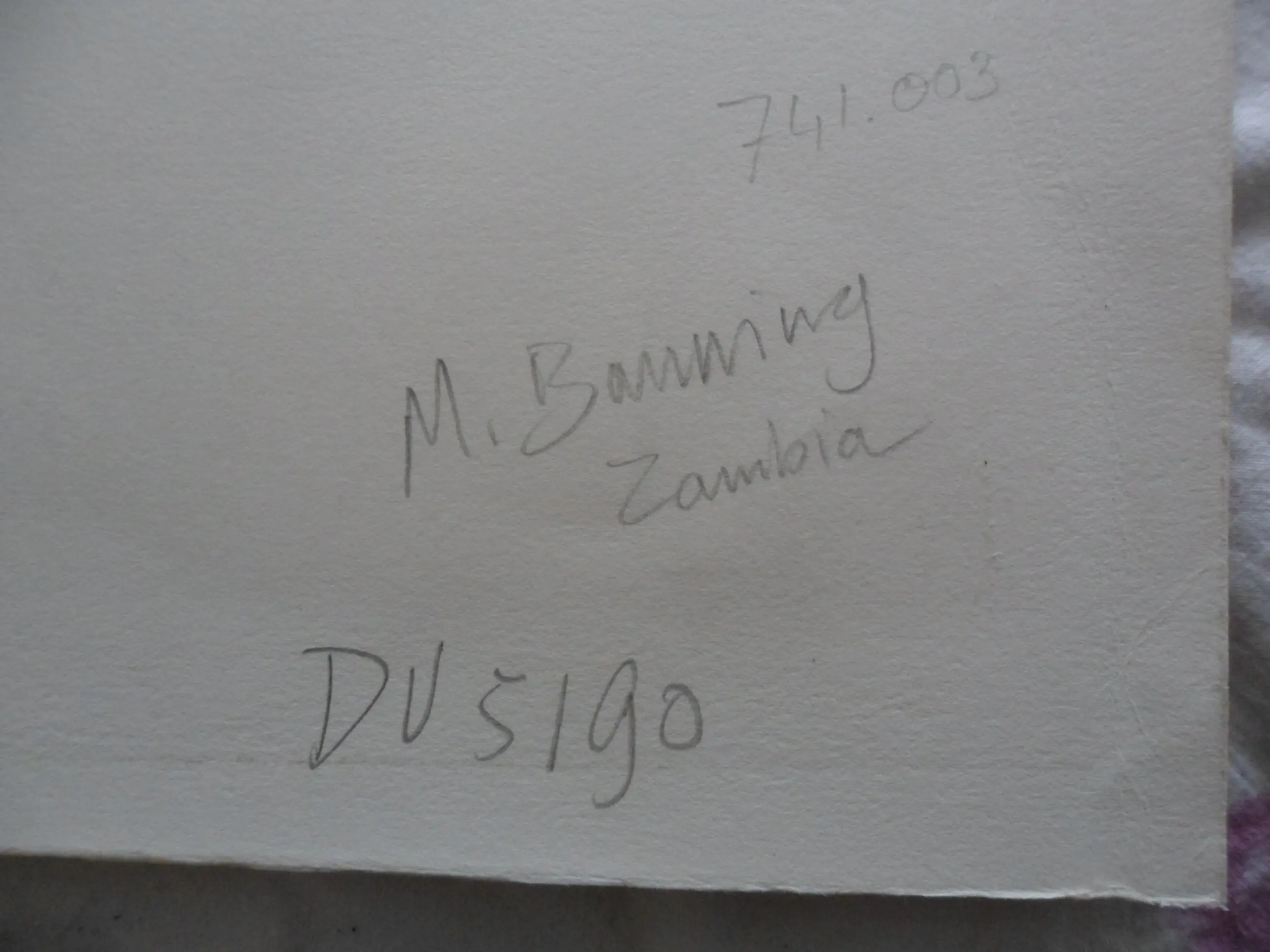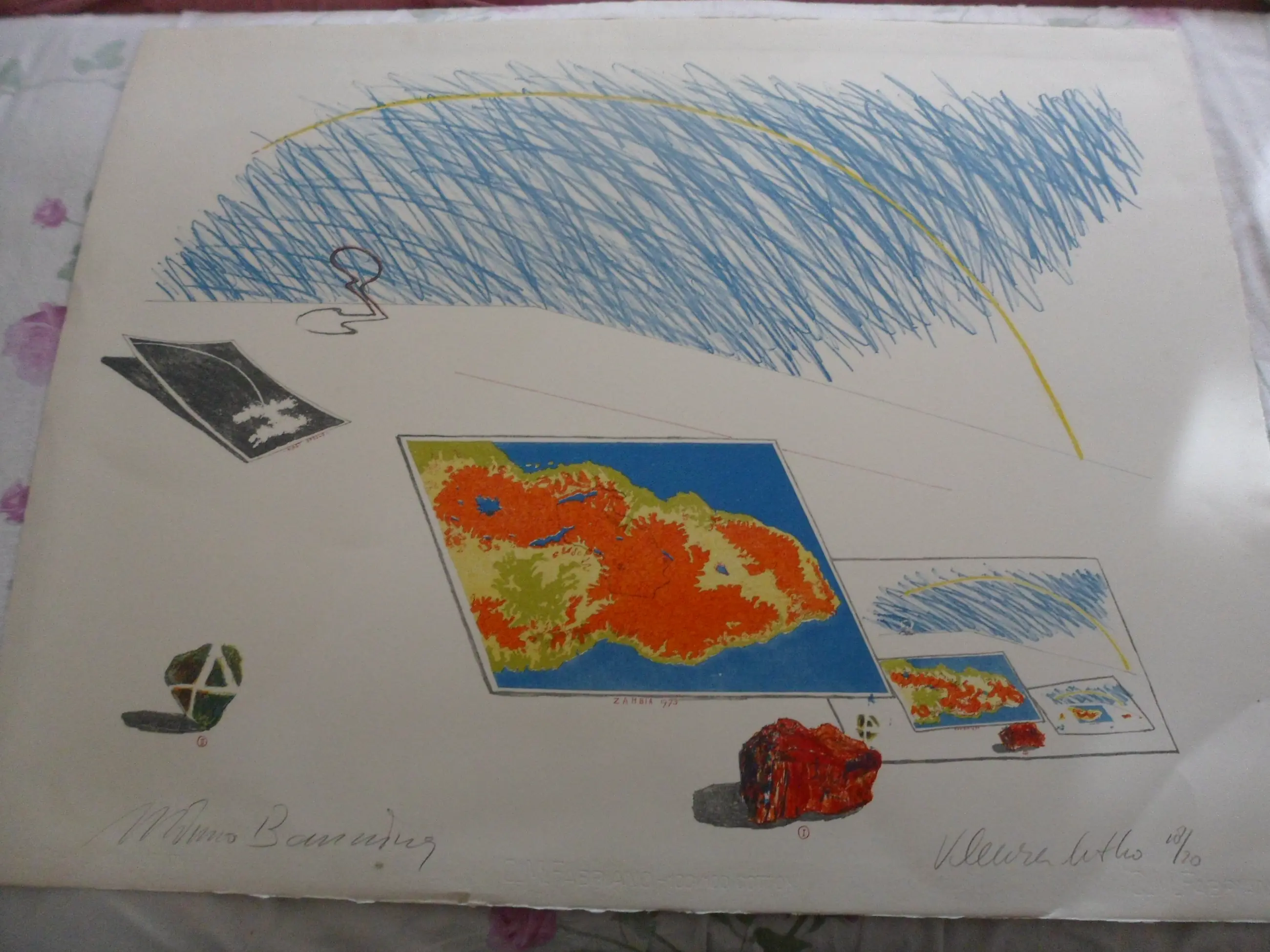 Litho van Minno Banning(Sneek 1947). Studeerde aan de Jan Eyck Academie Maastricht, Minerva Groningen en Universiteit New Mexico in de VS. Litho met de titel "Zambia ".