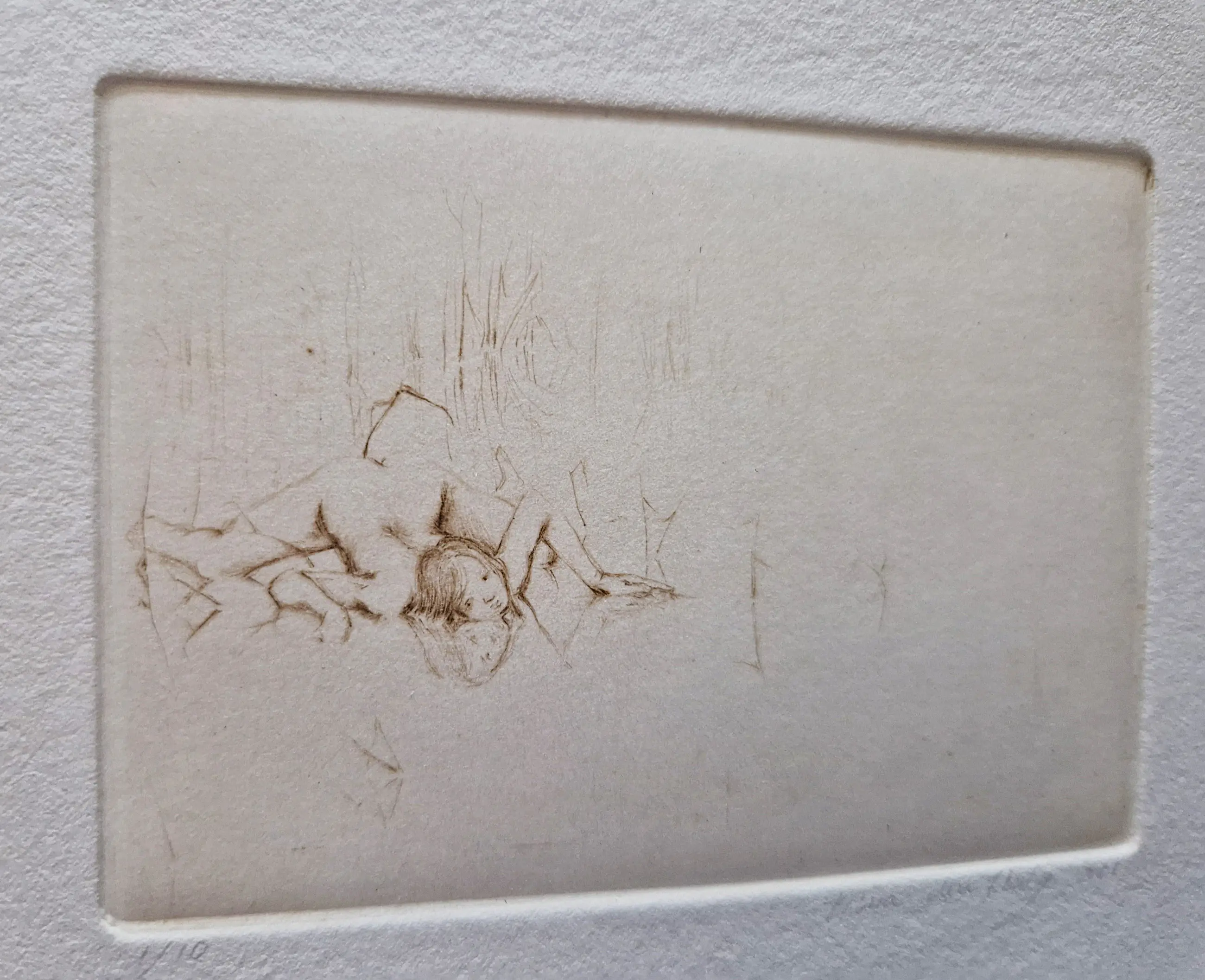 Na mijn afstuderen heb ik meteen een ets-pers aangeschaft en een extra kamer gehuurd in het huis waar ik woonde om daar een atelier van te maken. Gaandeweg ben ik de droge naald gaan combineren met de etstechniek, in twee kleurendruk. Met de droge naald (het vrouwenfiguur) als uitgangspunt, aangevuld met de etstechniek waarmee ik haar ‘leefwereld’ creëer. Daarbij laat ik vaak de plaat zo diep zuren dat er reliëf in het papier ontstaat.