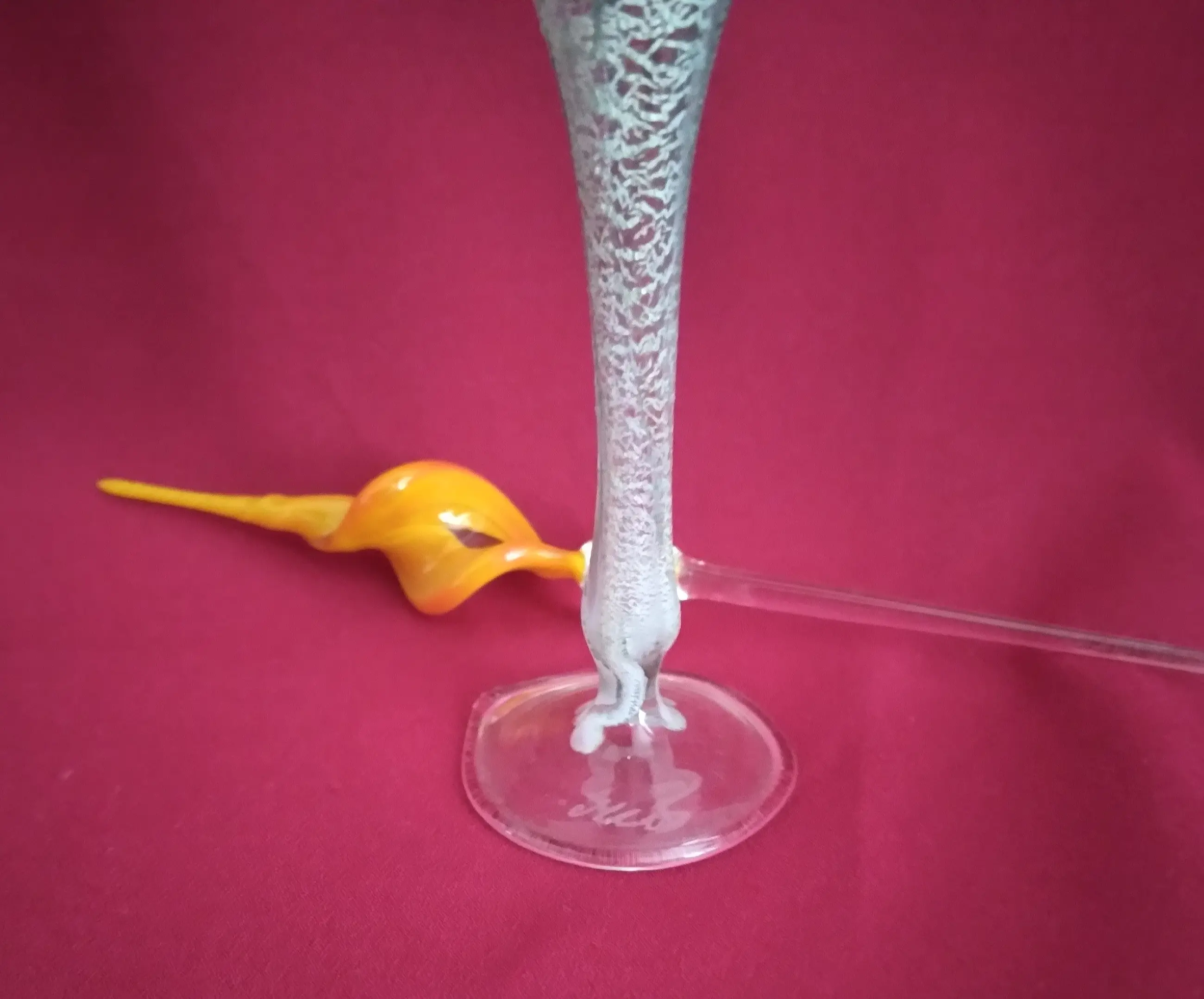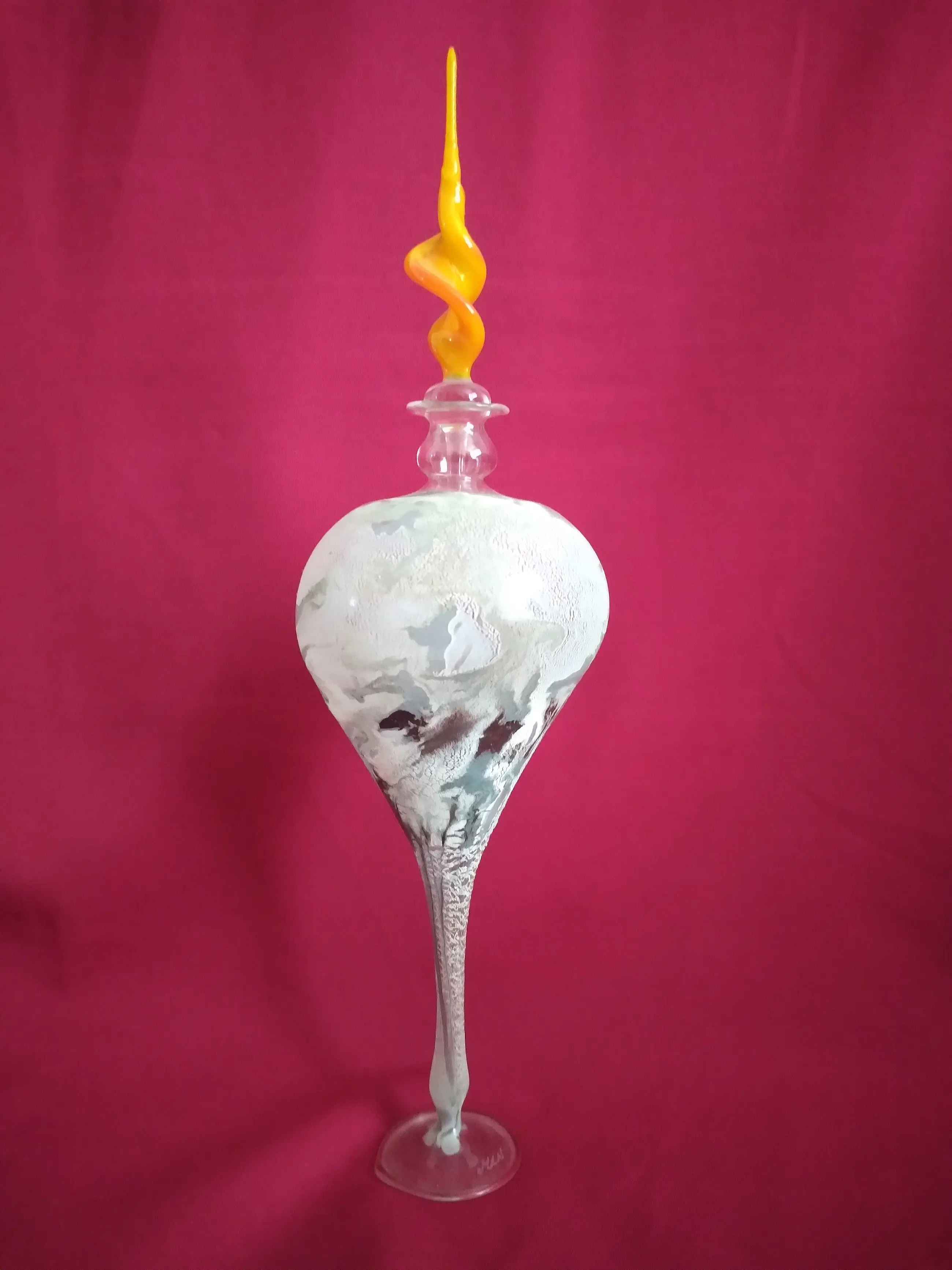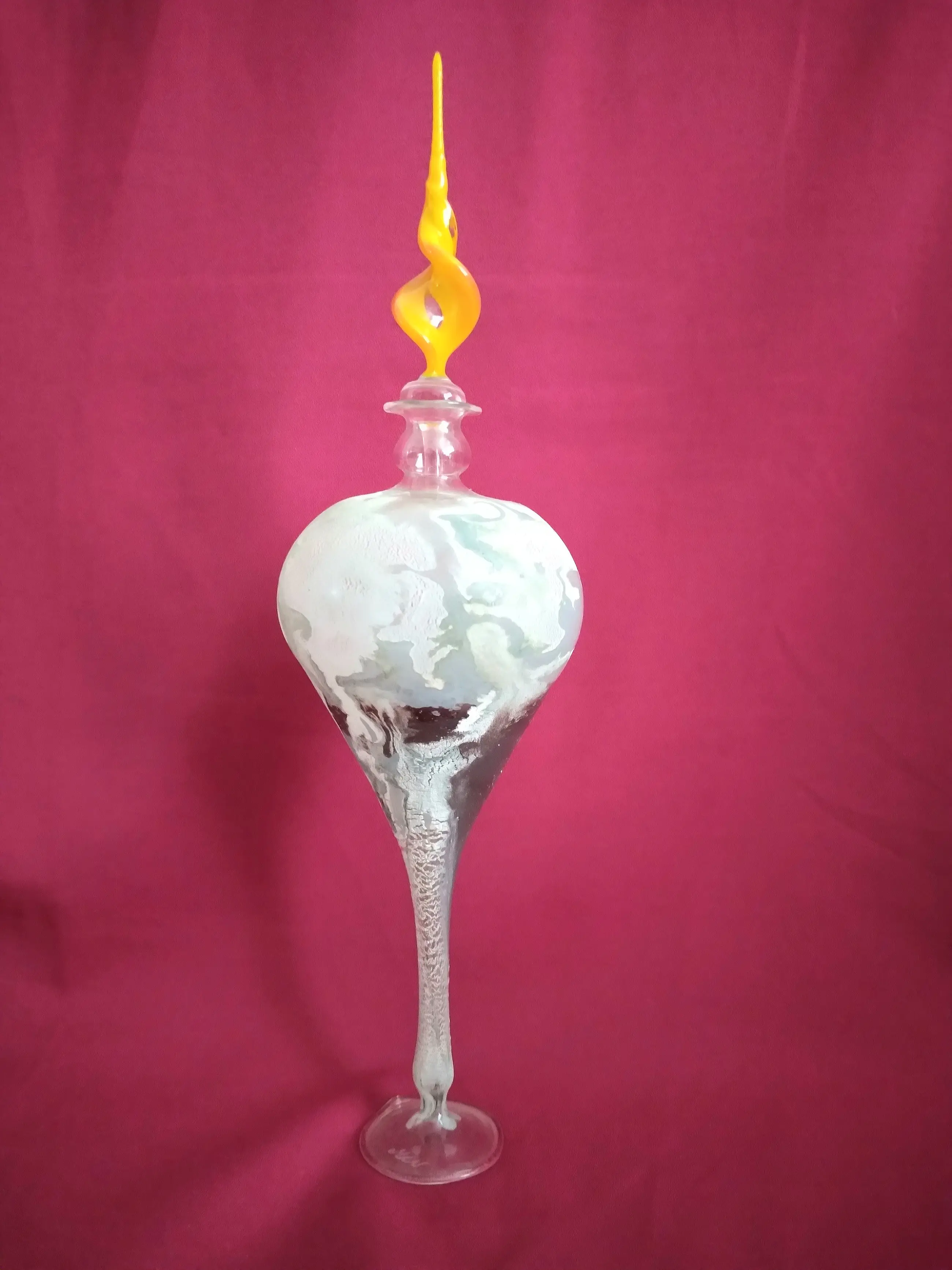 Betoverende vaas/sierobject van flinterdunne vormen in glas. Een uniek sieraad in huis.