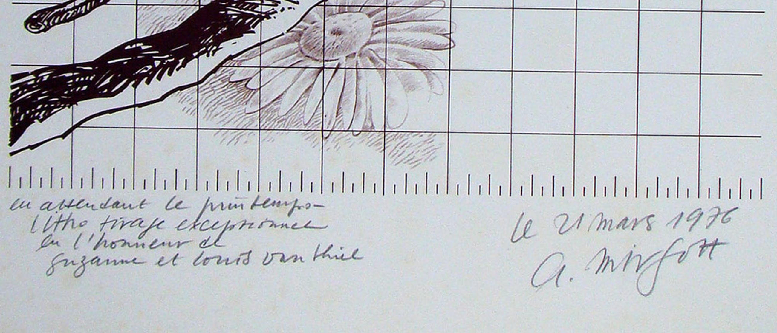 Lithografie van Mirfott. Papierafmetingen ongeveer 50 x 65 cm.